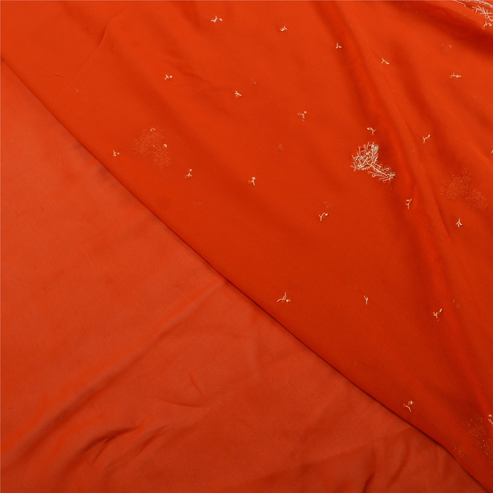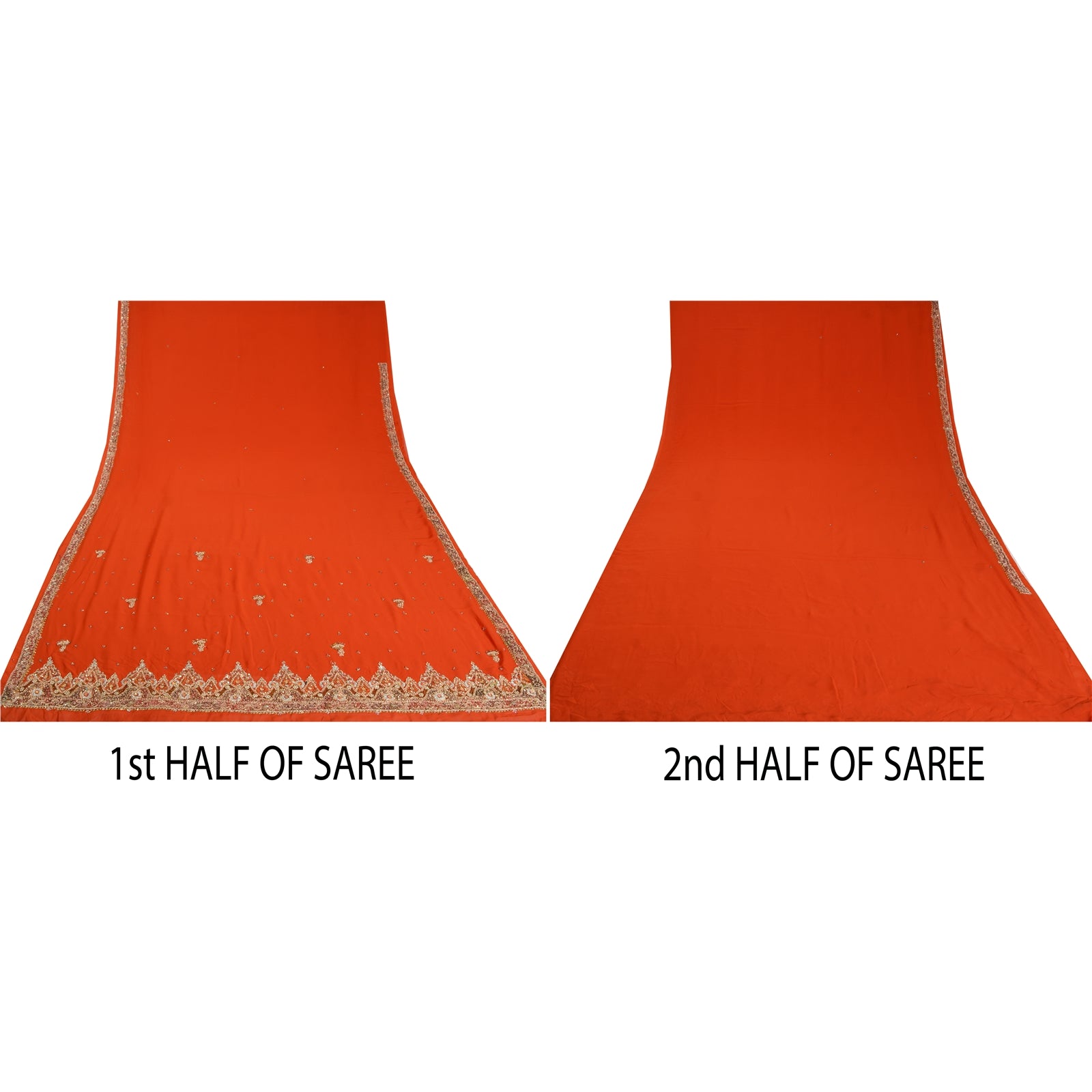 Sanskriti Vintage Orange Heavy Indian Sarees Georgette Hand Beaded Sari Sustainable Fabric