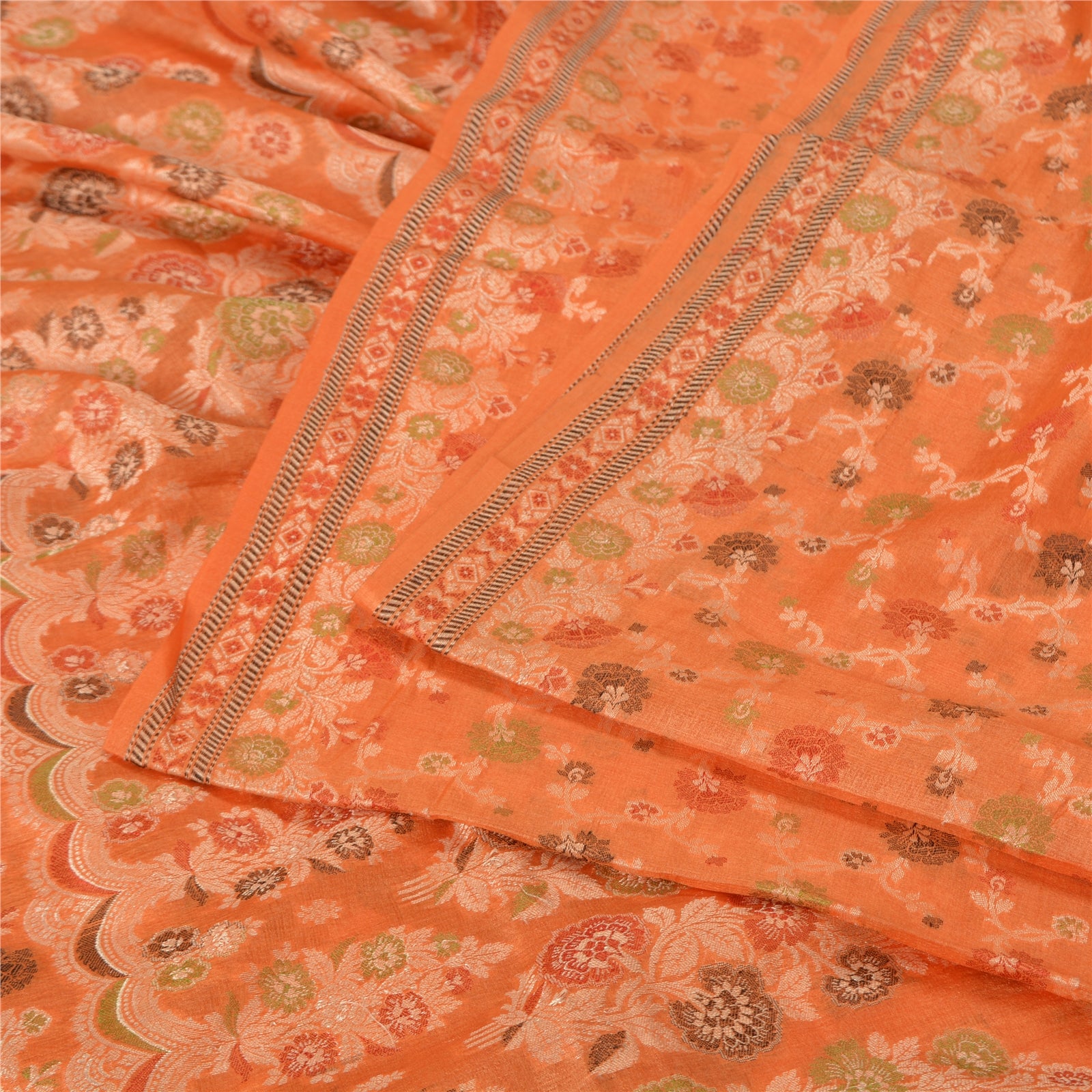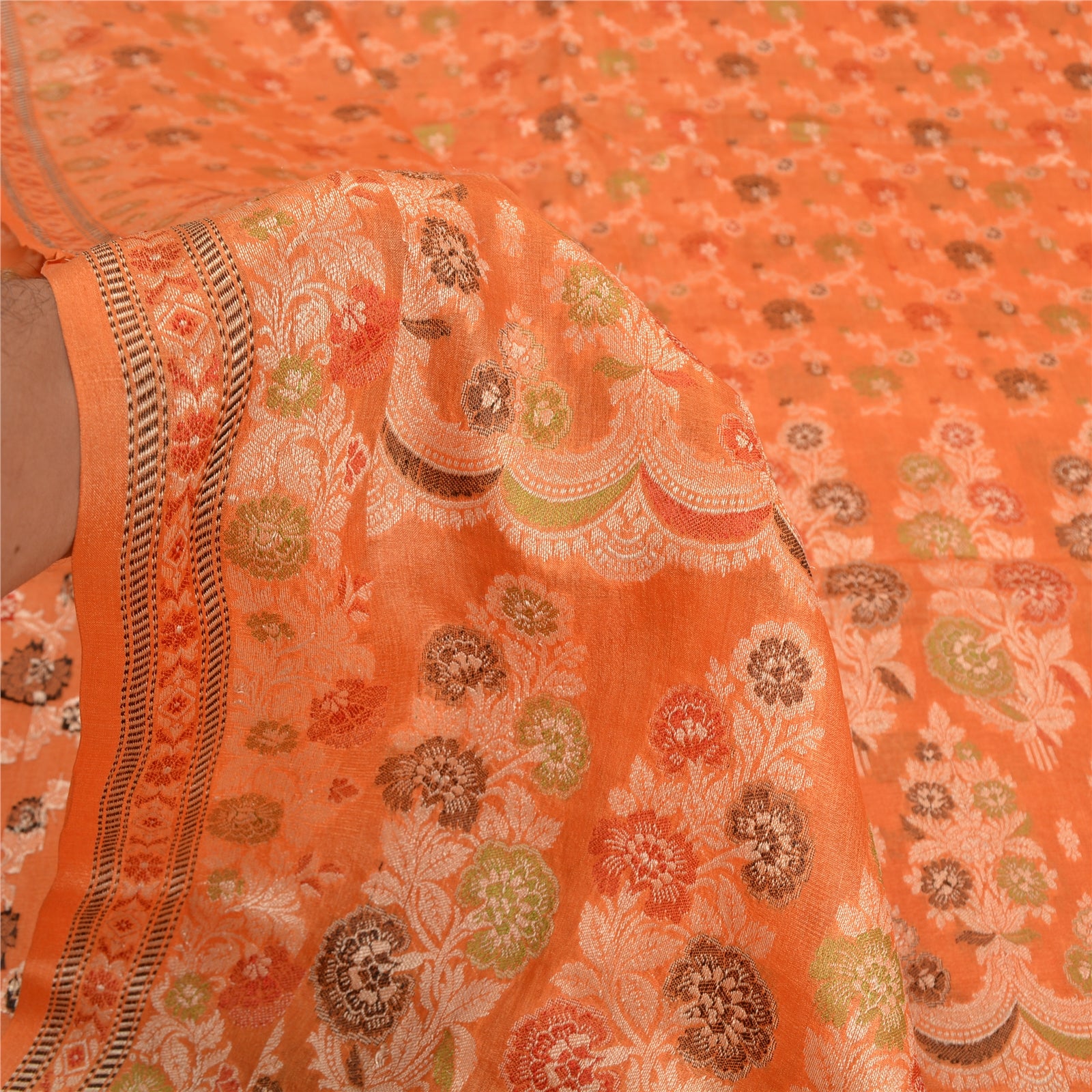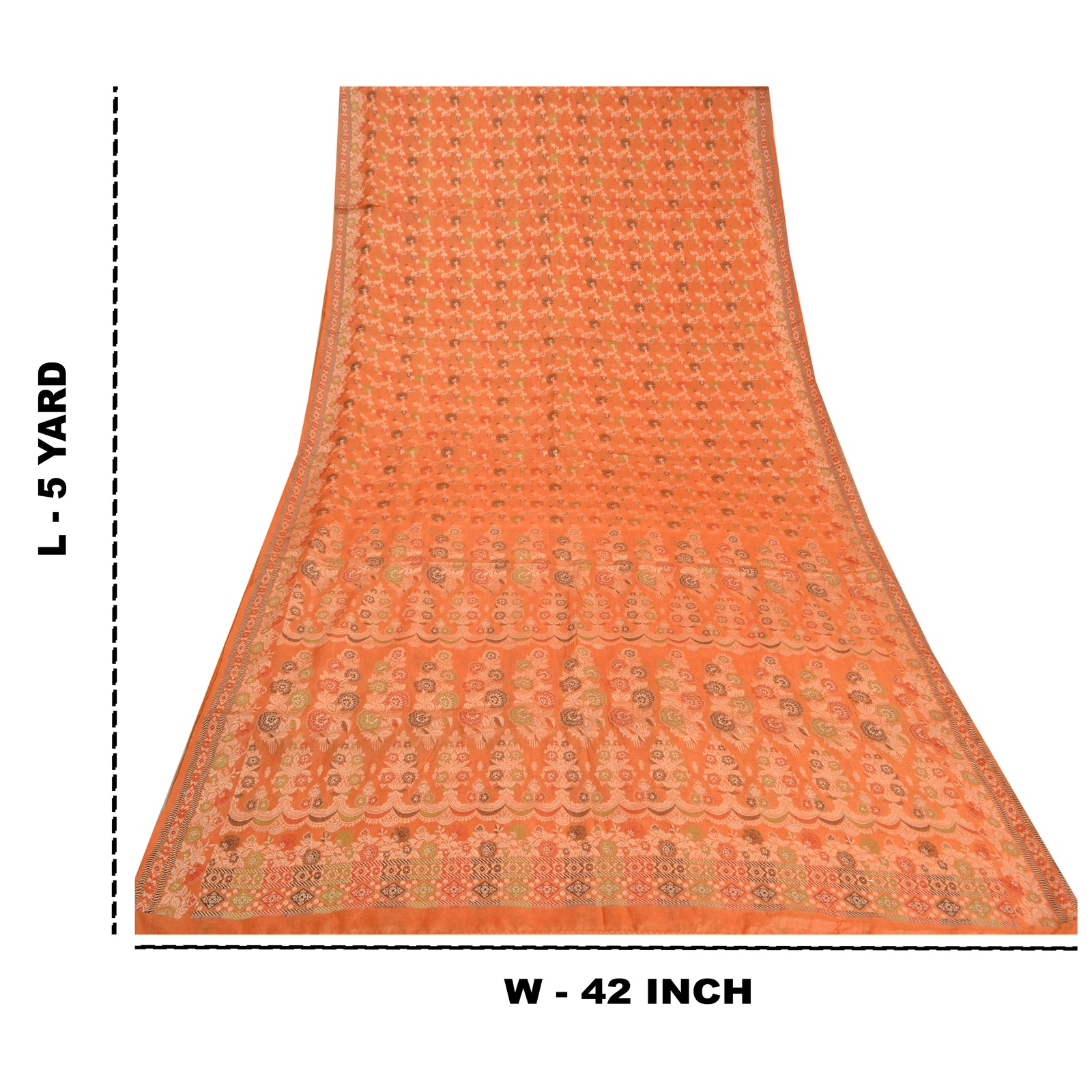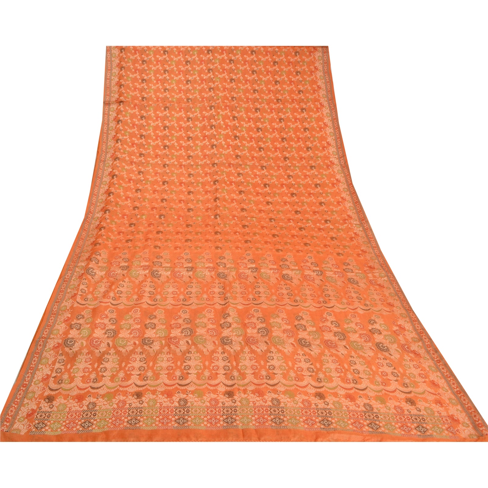 Sanskriti Vintage Orange Indian Sarees 100% Pure Silk Woven Sari 5 YD Sustainable Fabric
