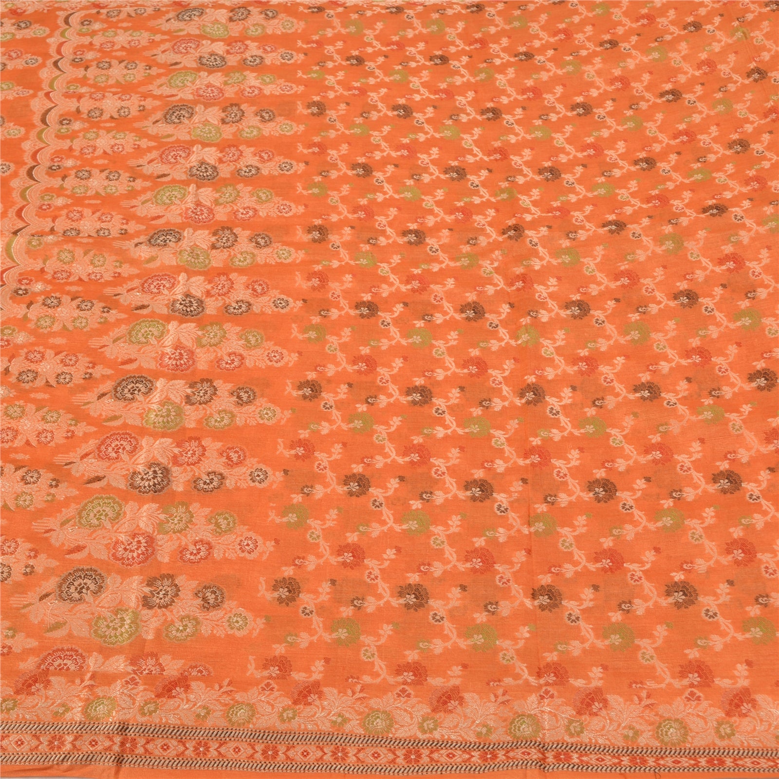 'THE ITEM COLOR OR SHADE MAY BE DARKER OR LIGHTER THAN THE PICTURE.' Beautiful orange colored pure silk woven sari/Sustainable Fabric. Pallu & border features are multi color woven thread work in paisley & floral design. The center of the saree has similar woven floral design. As the item is Vintage, some minor stains and defects are expected. This saree can be used for various crafting ideas too. Use it for dress designing, as a throw, as window dressing, upholstery, table linen and much more. Let your creative juices flow. 'International buyers please note: Import duties, taxes, and charges are not included in the item price or postage cost. These charges are the buyer's responsibility. Please check with your country's customs office to determine what these additional costs will be prior to bidding or buying. Buyer will pay custom duty/tax. It is calculated and charged differently by every country. As a seller I do not have any control over it. VAT or sales tax is calculated by the platform at the time of checkout. Customs charge is payable at the time of delivery.'