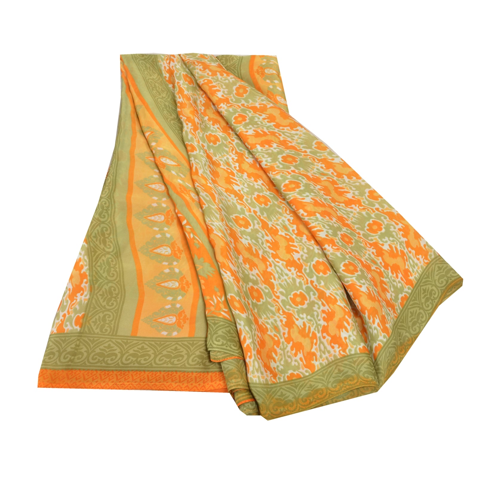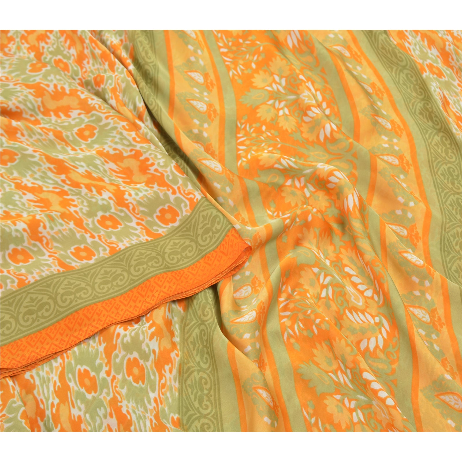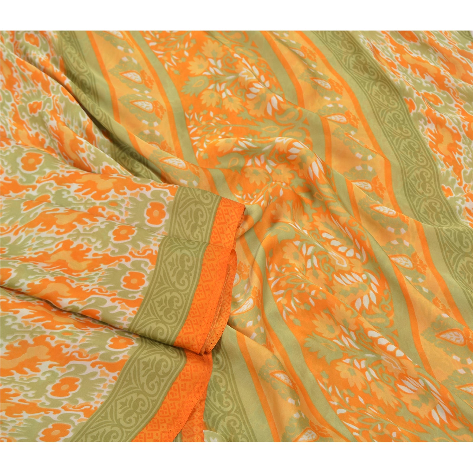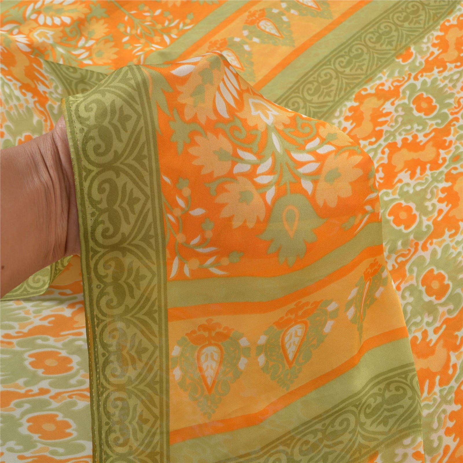 Sanskriti Vintage Orange Indian Sarees Moss Crepe Printed Sari 5YD Craft Sustainable Fabric