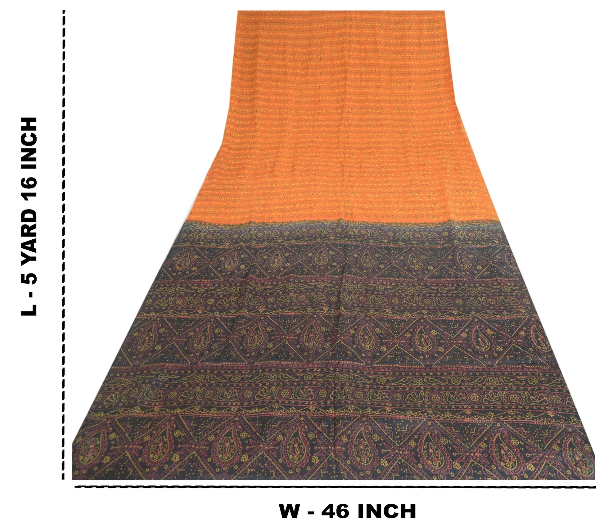 Sanskriti Vintage Orange Pure Silk Sarees Printed Sari Floral 5yd Craft Sustainable Fabric