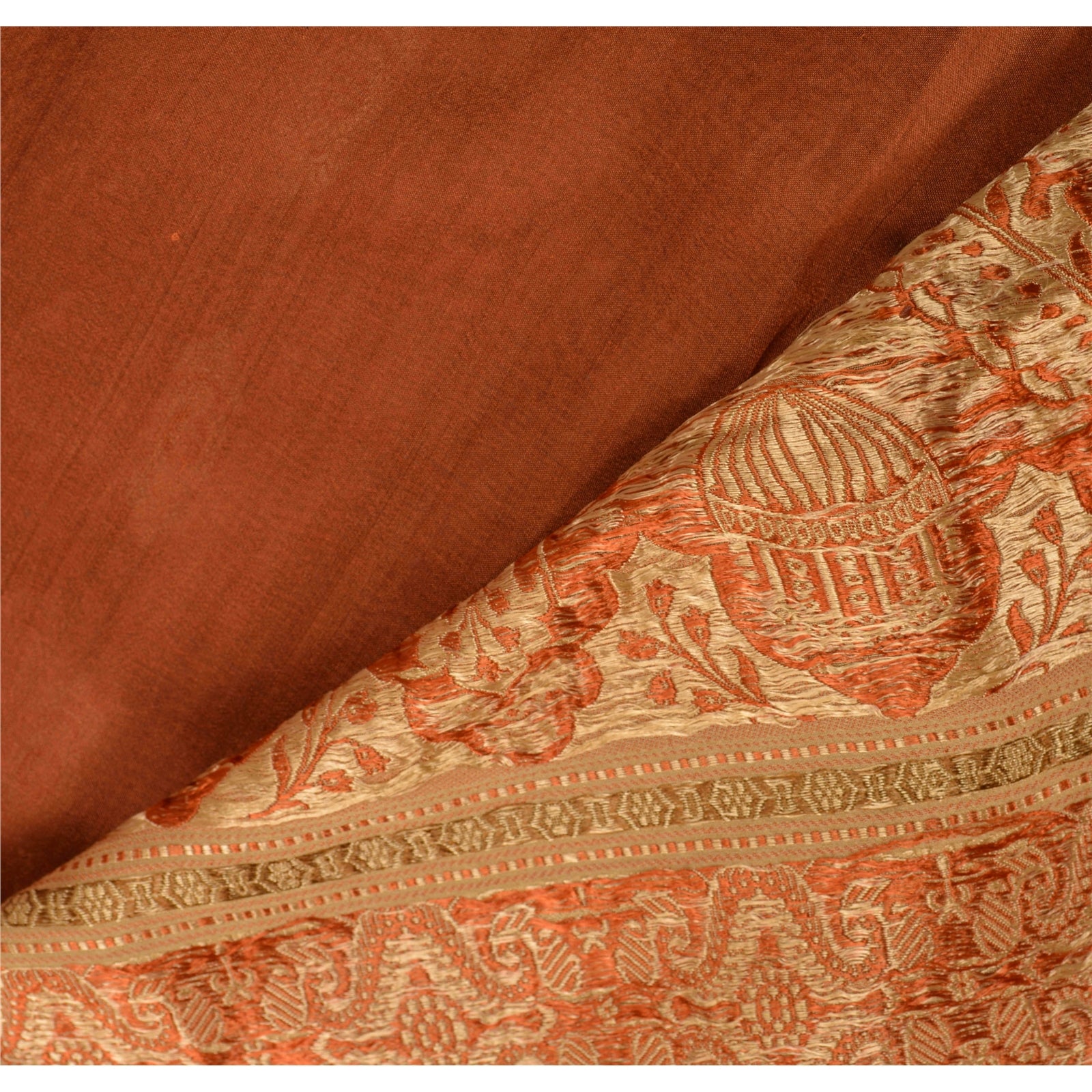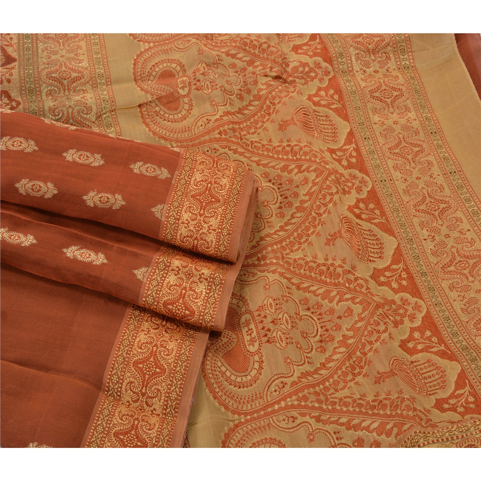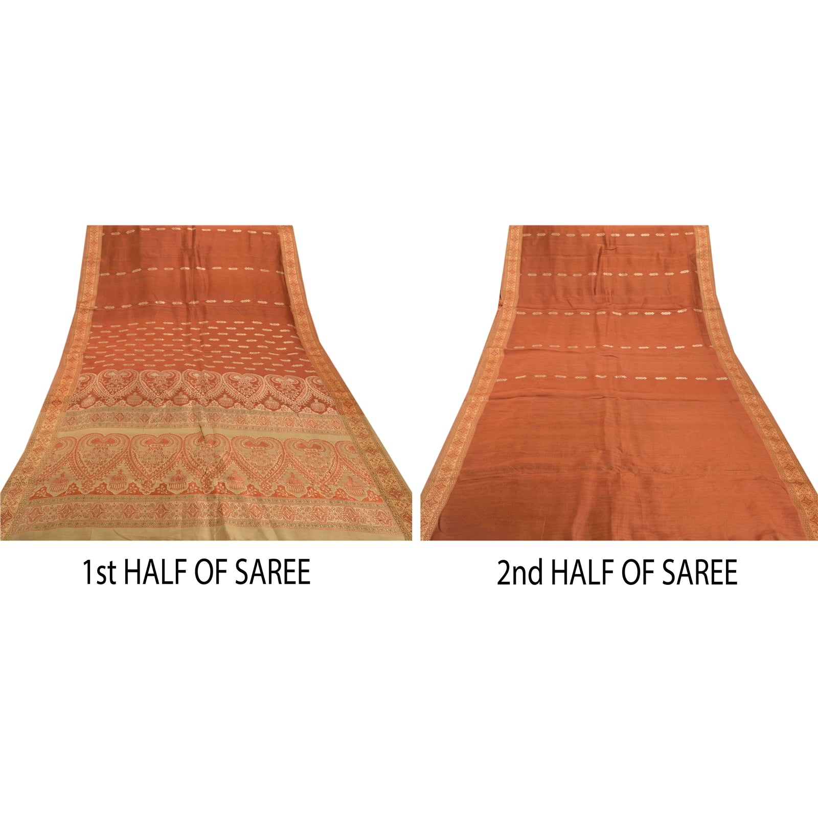 Sanskriti Vintage Orange Sarees Blend Silk Woven Premium Indian Sari Sustainable Fabric