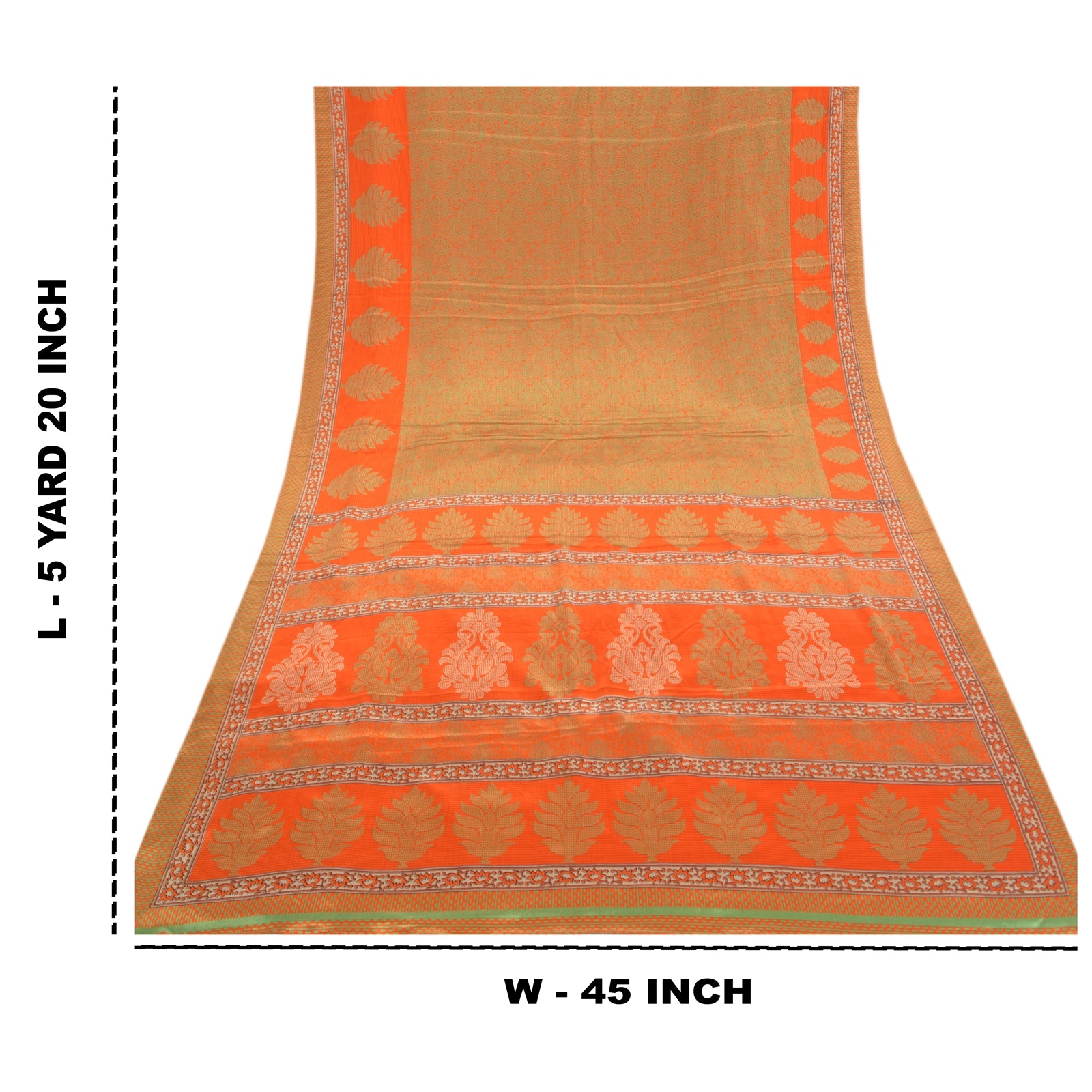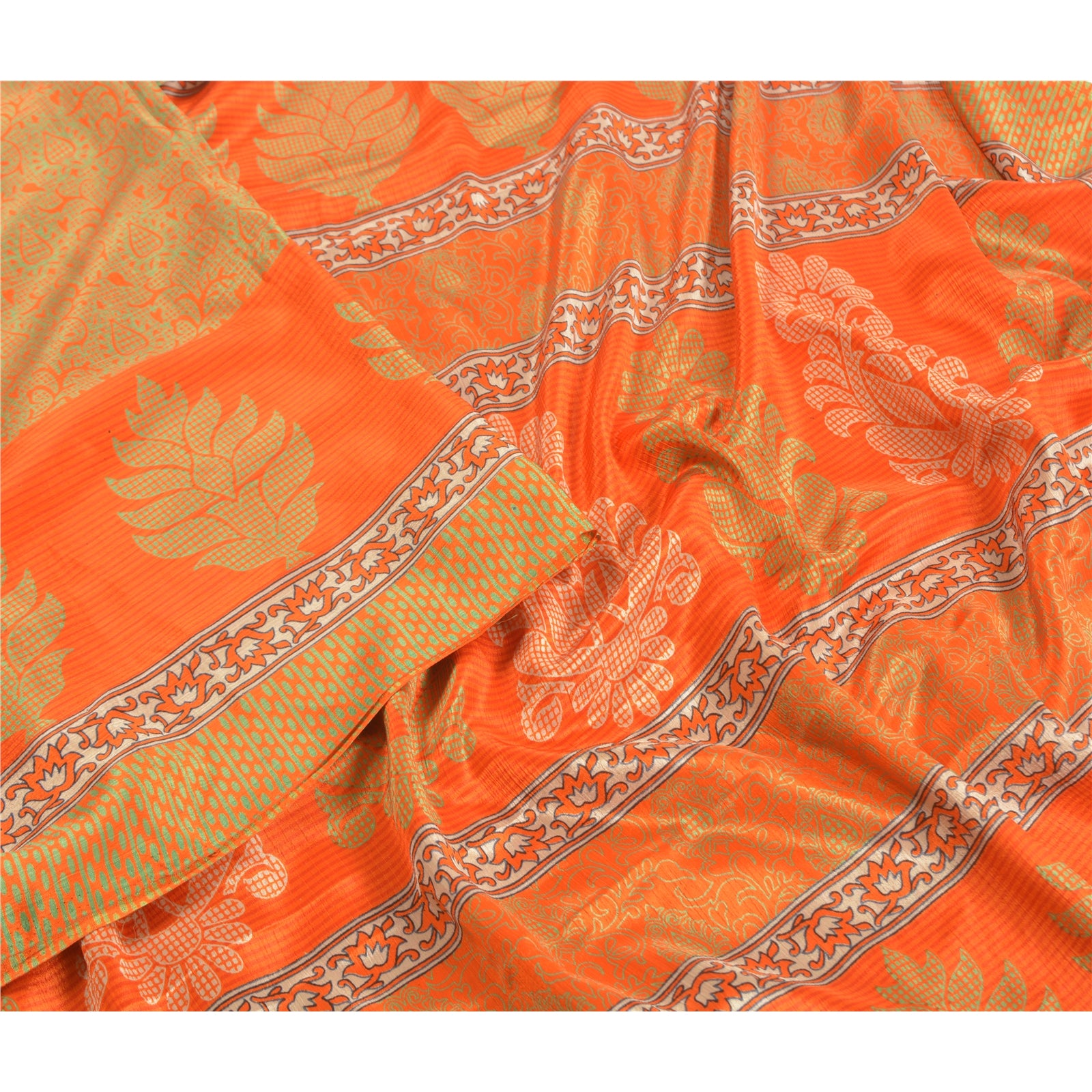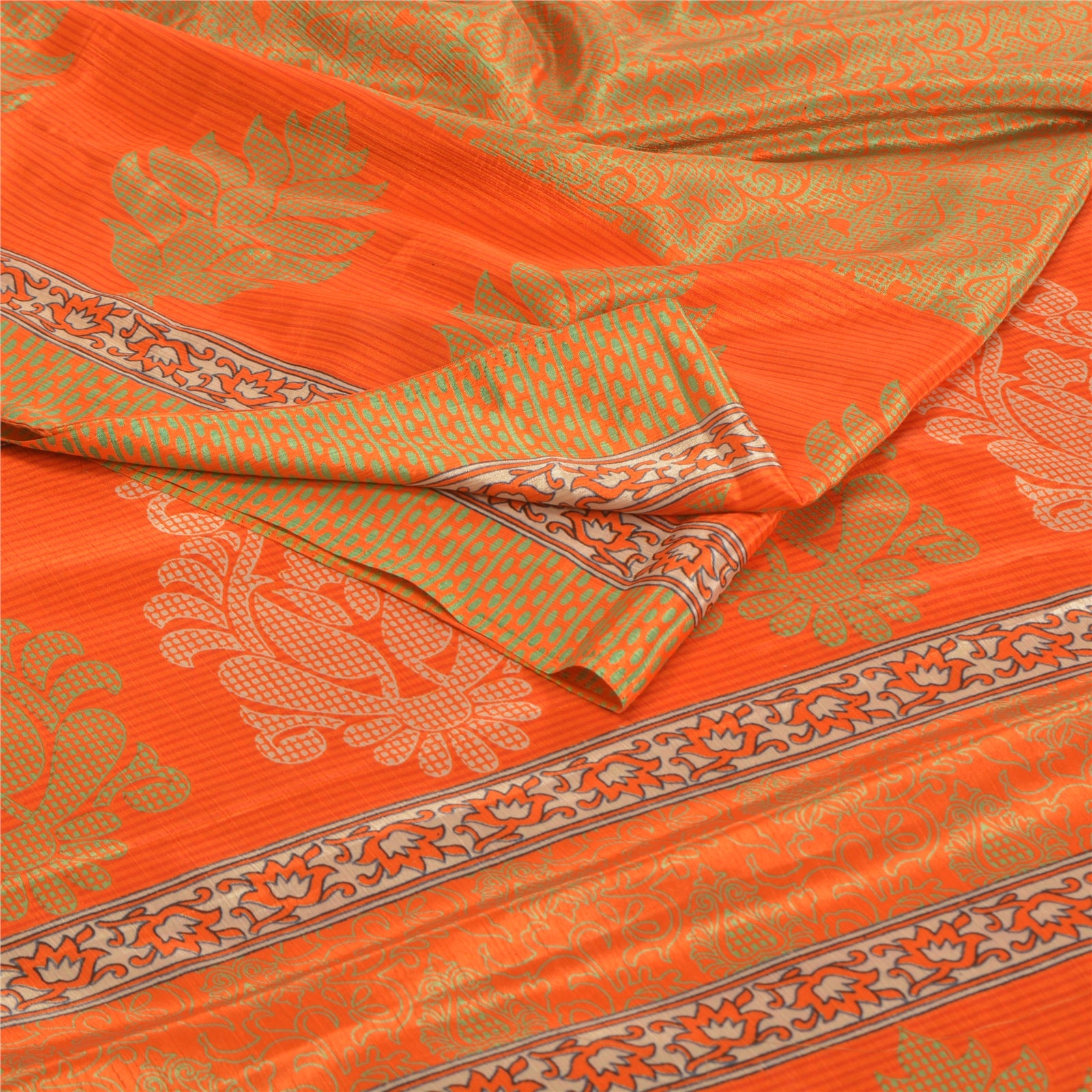 Sanskriti Vintage Orange Sarees Moss Crepe Printed Sari Soft Floral Craft Sustainable Fabric