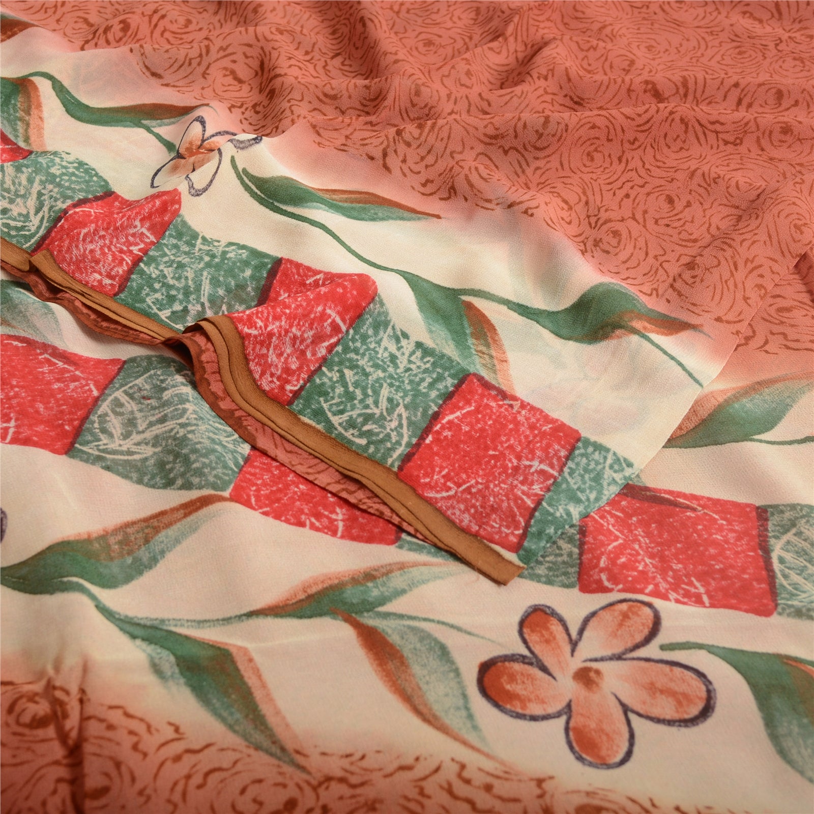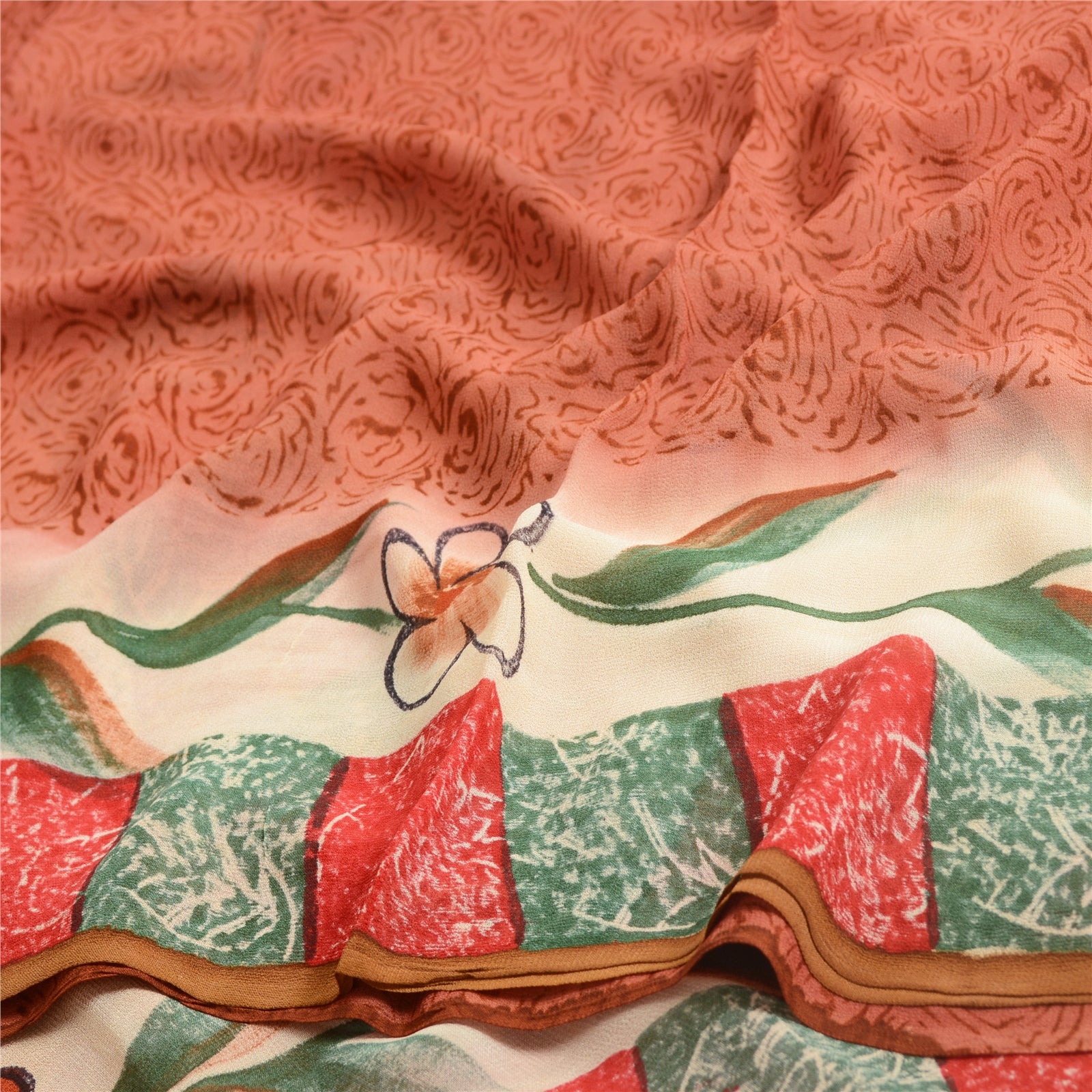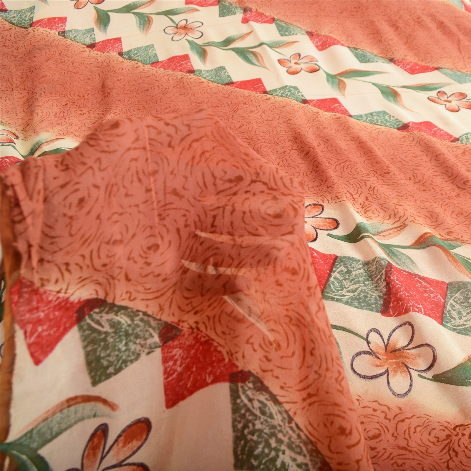 Sanskriti Vintage Orange Sarees Pure Georgette Silk Printed Sari Craft Fabric
