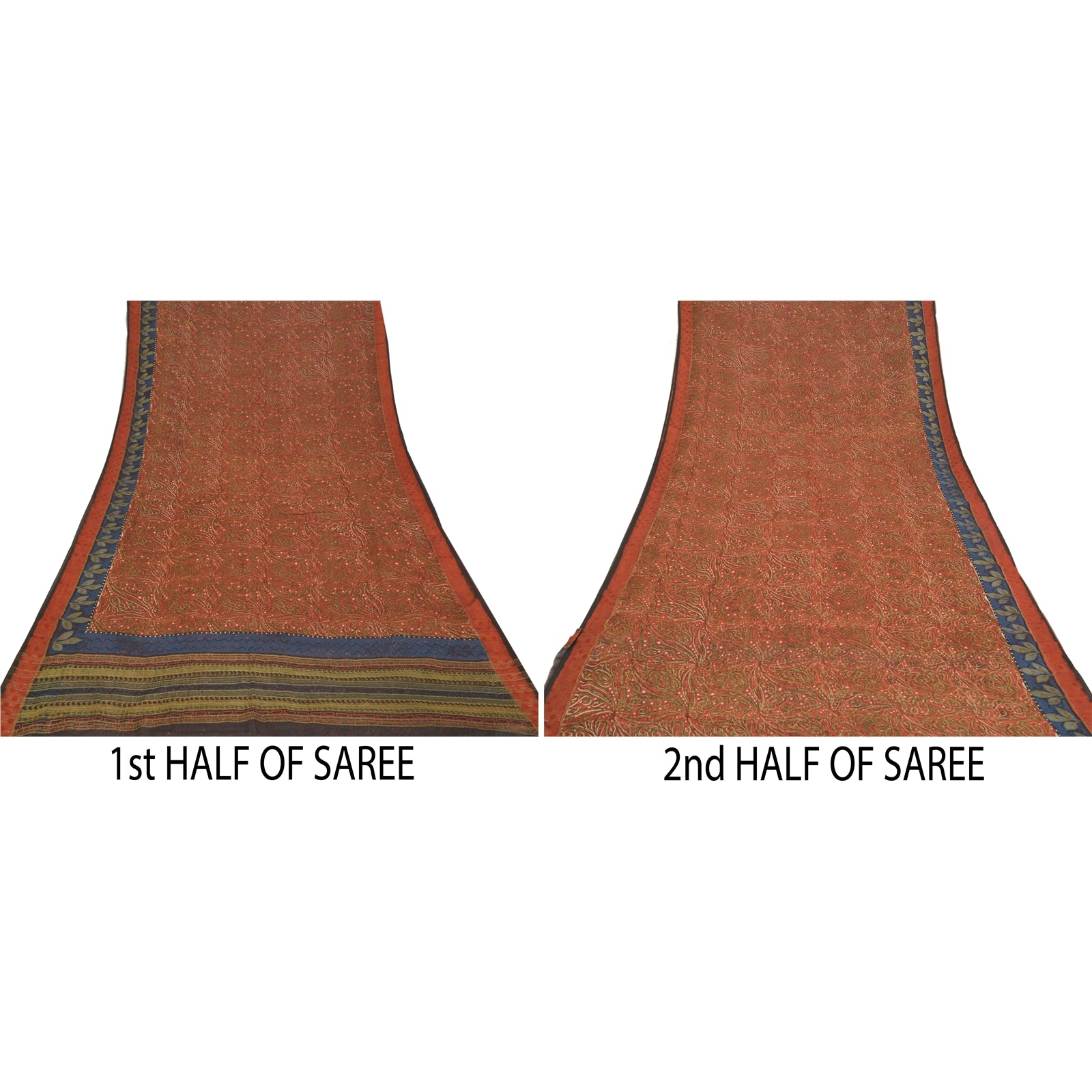 Awesome rusty orange pure georgette silk printed saree. Pallu & border sari has printed design. Floral design in center part of saree. What is special about this saree? Brilliant design on soft Sustainable Fabric is really enhancing the beauty of the saree.This unique vintage saree can be used for various crafting ideas even if you don't want to use it as a sari. Design a dress, use it as a as window dressing, upholstery, sarongs, throw, dress making and table linen much more. Let your creative juices flow and use this decorated Sustainable Fabric in multiple fashion. Please note - Buyers from Australia are required to pay postage. Registered air mail to Australia is temporarily suspended due to the pandemic. Once it goes back to normal we'll revert to free shipping. For now, we are using Aramex and DHL to ship orders. These services are expensive but faster compared to regular mail. Thank you for your support. If you are buying in bulk we will refund whatever excess is left. Contact us after that purchase. For USA buyers - Single item ships via registered air mail, buy 1 more to get FedEx.