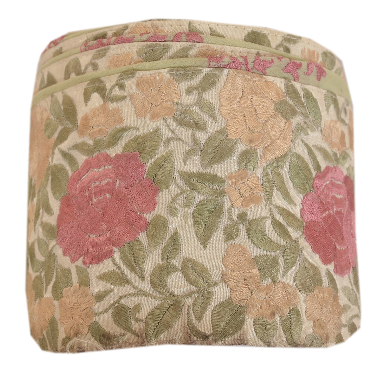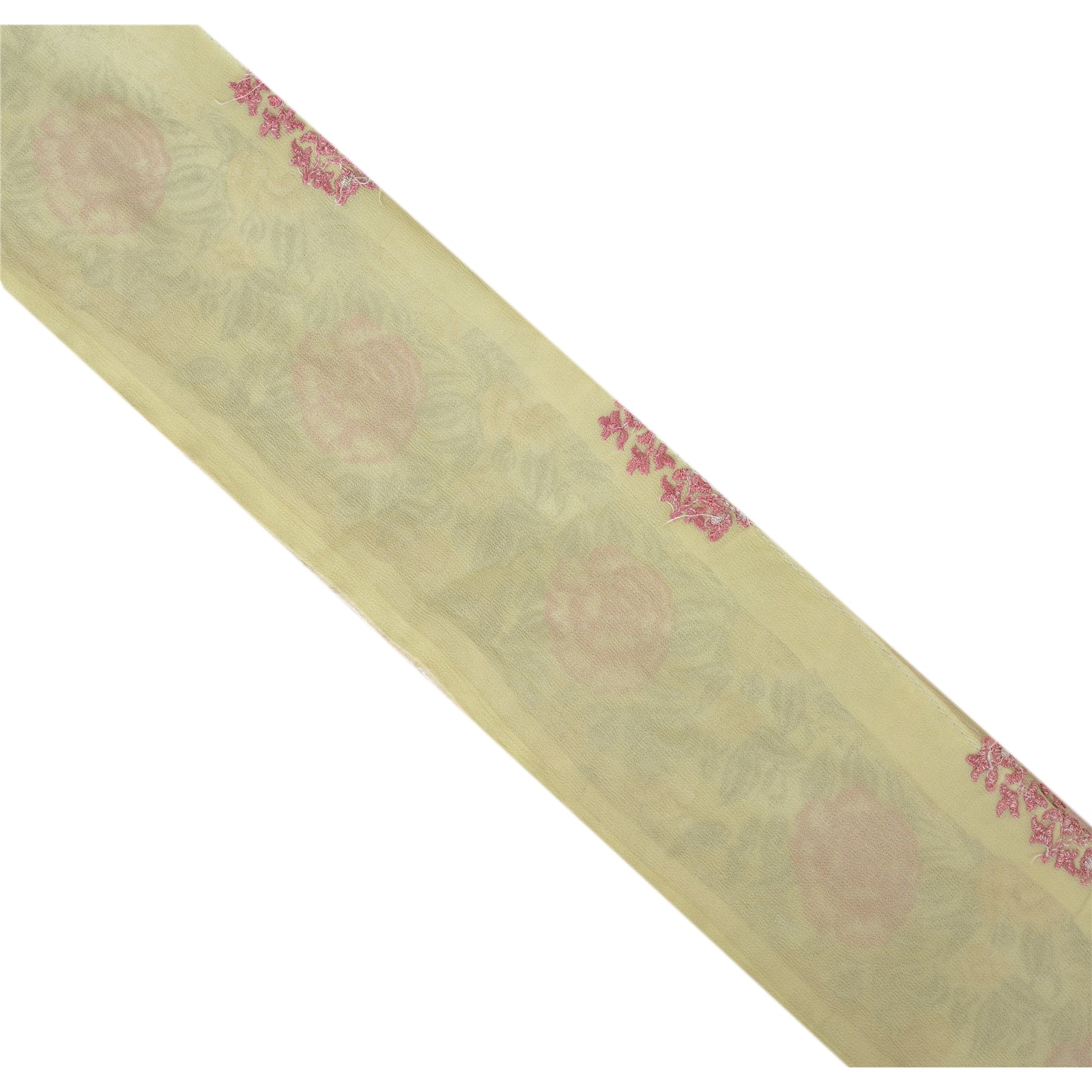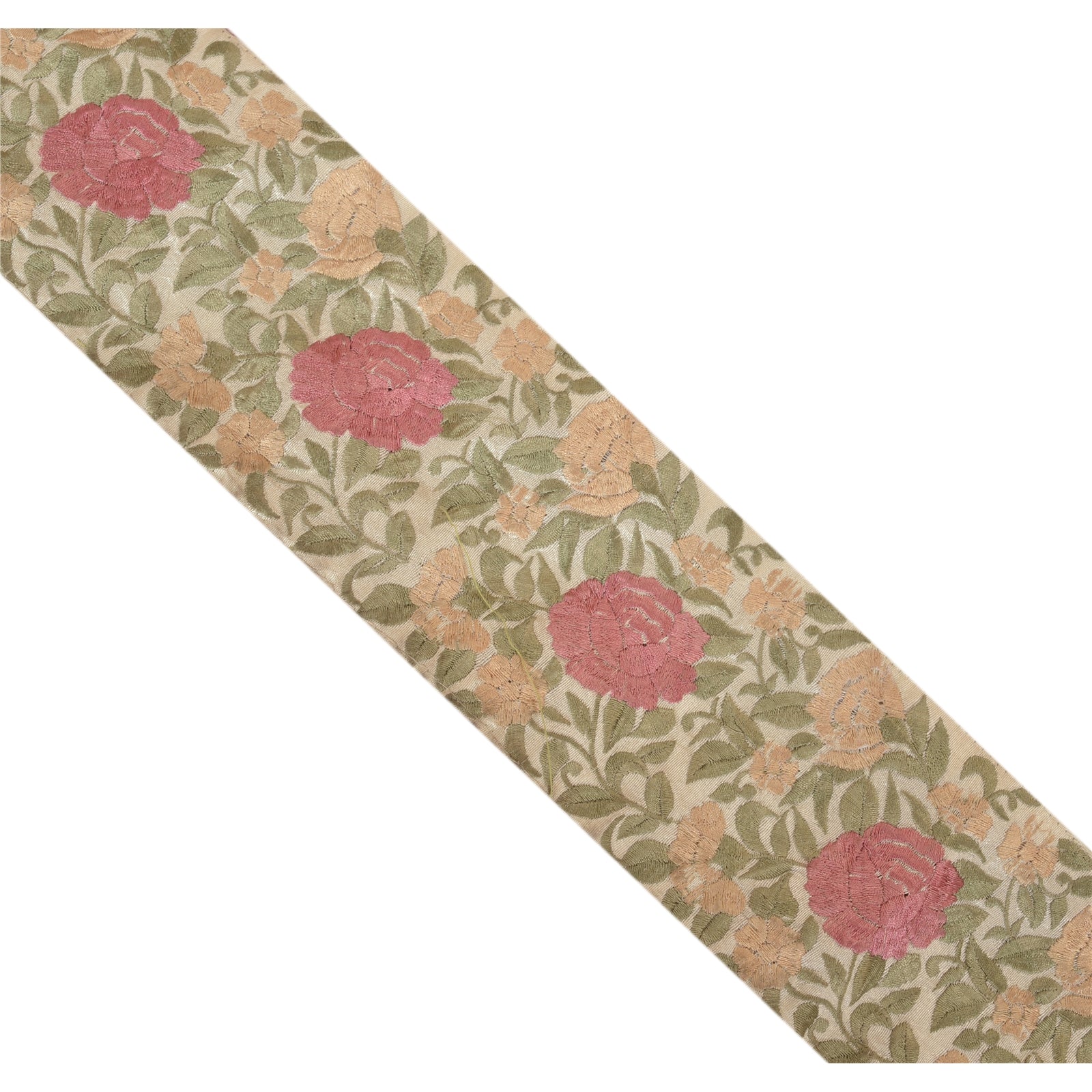 Fabulous georgette embroidered Parsee sari border in cream color highlighting thread work. Border has beautiful floral patterns painstakingly embroidered with pink, green, cream thread work . WOW!! an awesome one of a kind versatile border. 1 Quantity = 1 Yard