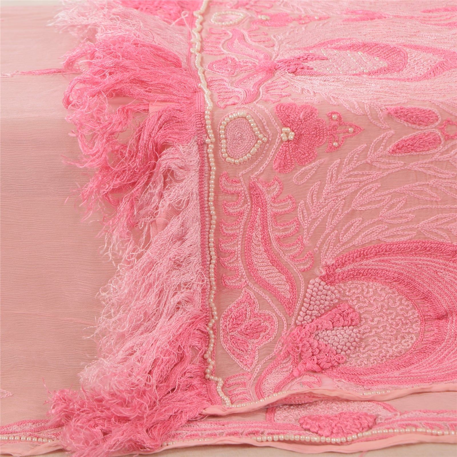 'THE ITEM COLOR OR SHADE MAY BE DARKER OR LIGHTER THAN THE PICTURE.' Beautiful Peach colored pure silk embroidered long scarf/dupatta. Center portion of the dupatta has floral design with thread work. Border has floral design embellished with white pearl beads work & pink color thread work is really enhancing beauty of the dupatta/stole. Dupatta has matching fringes on both ends of borders. This dupatta/stole can be used for various crafting ideas too. Use it for dress designing, as a throw, as window dressing, upholstery, table linen and much more. Let your creative juices flow. Shipping note: International buyers please note: Import duties, taxes, and charges are not included in the item price or postage cost. These charges are the buyer's responsibility. Please check with your country's customs office to determine what these additional costs will be prior to bidding or buying. Buyer will pay custom duty/tax. It is calculated and charged differently by every country. As a seller I do not have any control over it. VAT or sales tax is calculated by the platform at the time of checkout. Customs charge is payable at the time of delivery.' SKU: DC-55216