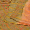 Sanskriti Vintage Peach/Green Saree Pure Silk Hand Embroidered Sustainable Fabric Craft Sari