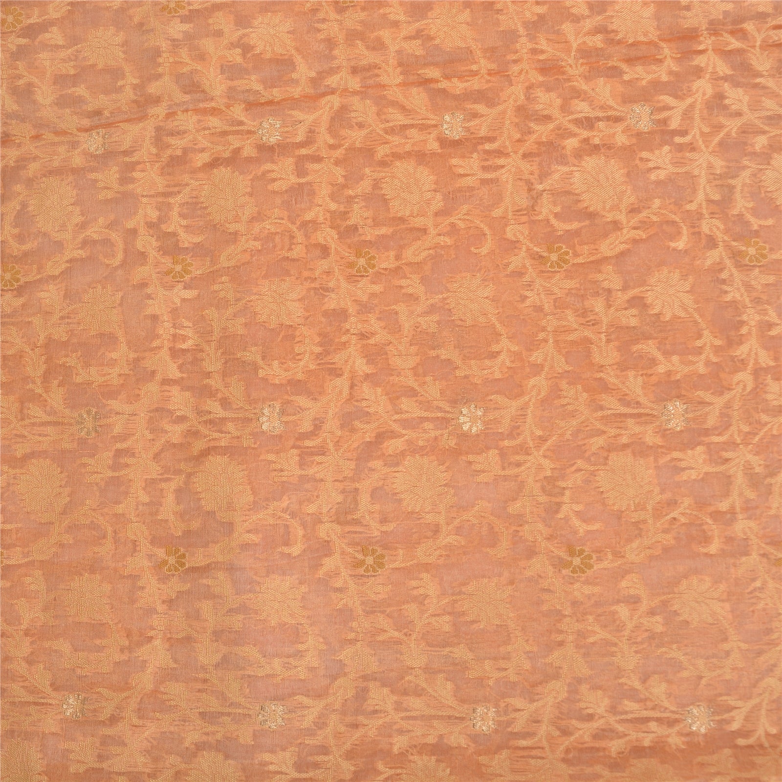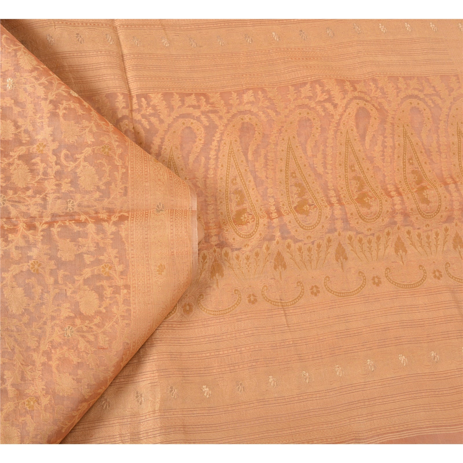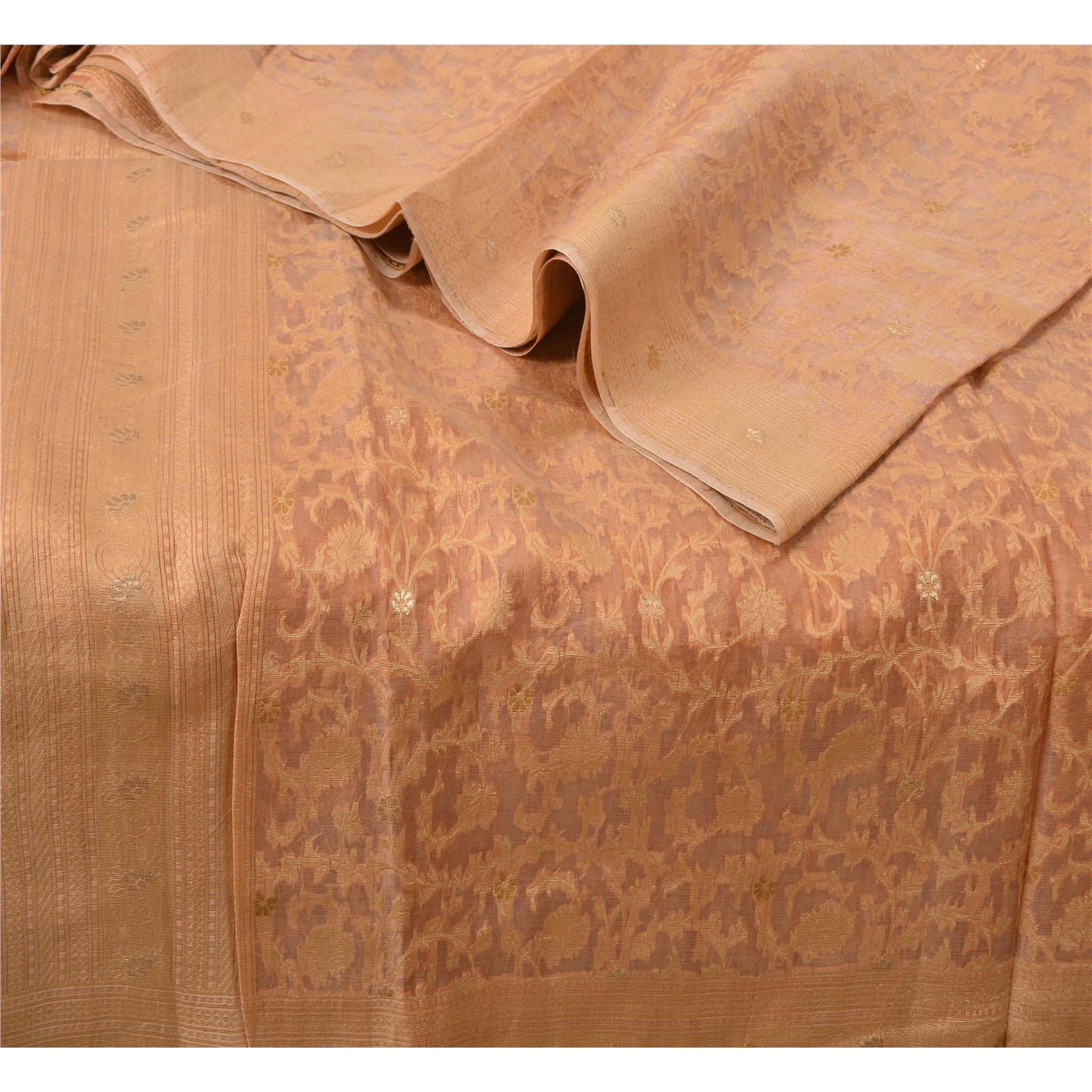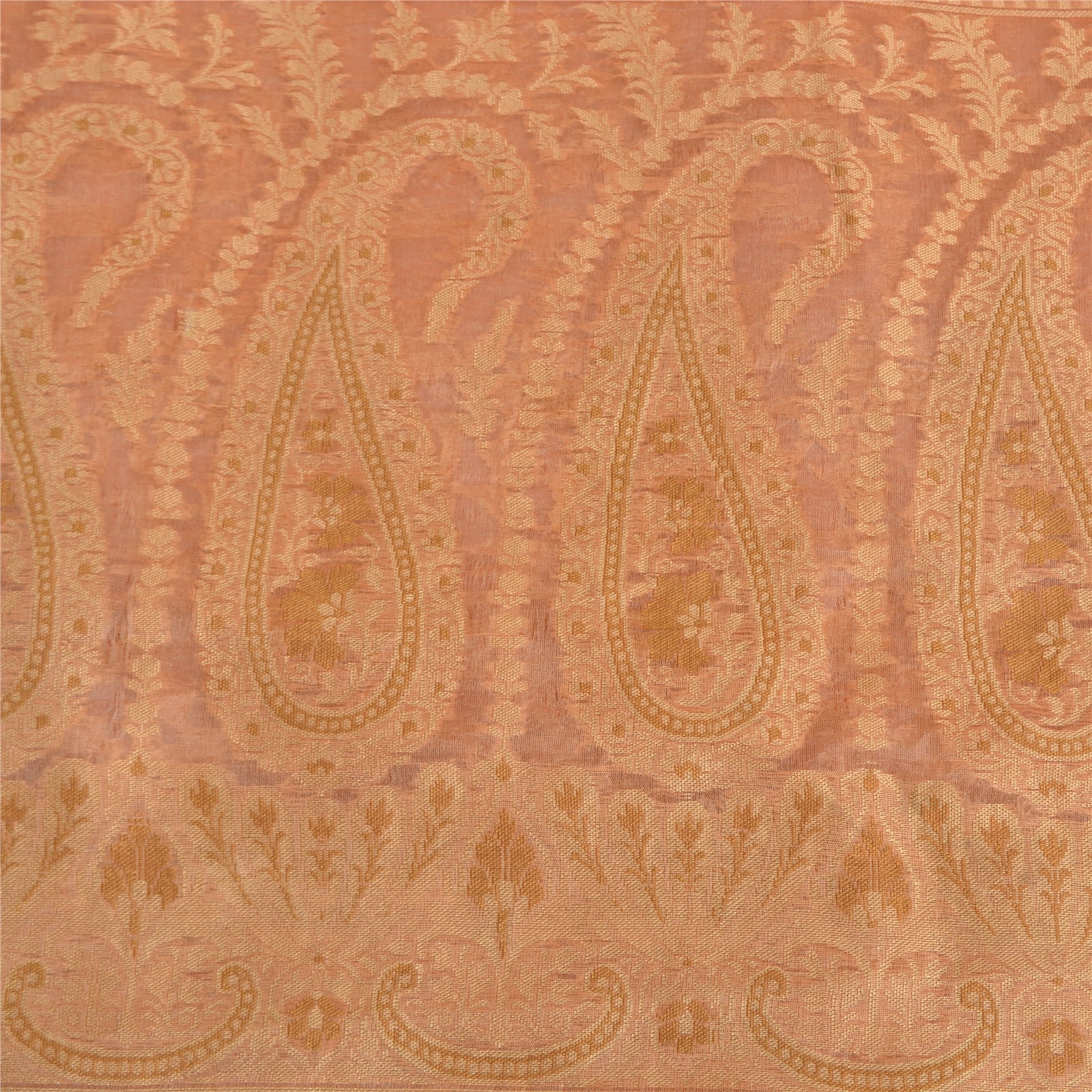 Sanskriti Vintage Peach Indian Sarees 100% Pure Silk Woven Premium Sari Fabric