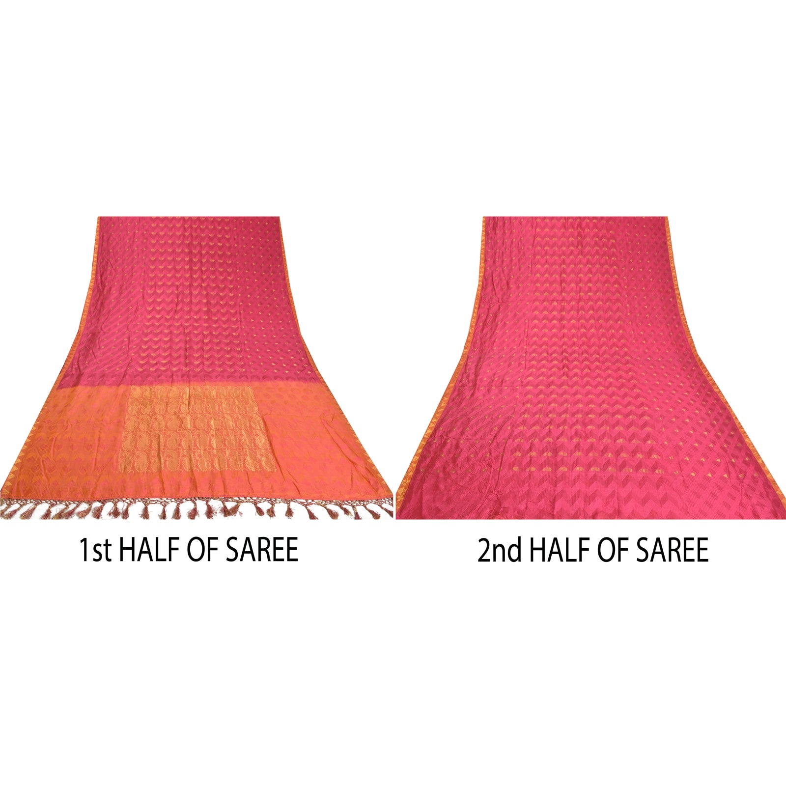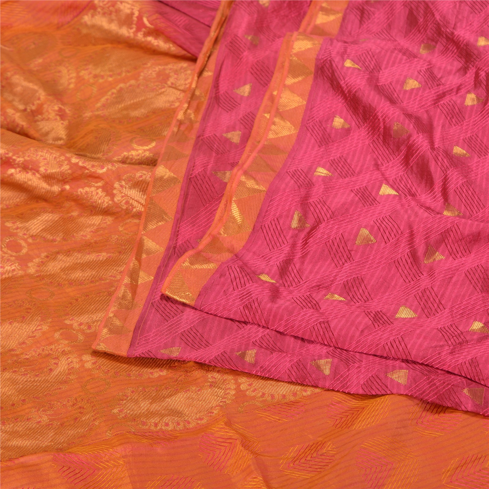 'THE ITEM COLOR OR SHADE MAY BE DARKER OR LIGHTER THAN THE PICTURE.' Beautiful peach & pink colored pure silk woven sari/Sustainable Fabric. Pallu & border has peach/saffron woven thread & golden zari work with floral & paisley design. Also you can see matching fringes on pallu. The center of the saree has woven criss- cross & zari paisley design. This saree can be used for various crafting ideas too. Use it for dress designing, as a throw, as window dressing, upholstery, table linen and much more. Let your creative juices flow. 'International buyers please note: Import duties, taxes, and charges are not included in the item price or postage cost. These charges are the buyer's responsibility. Please check with your country's customs office to determine what these additional costs will be prior to bidding or buying. Buyer will pay custom duty/tax. It is calculated and charged differently by every country. As a seller I do not have any control over it. VAT or sales tax is calculated by the platform at the time of checkout. Customs charge is payable at the time of delivery.'