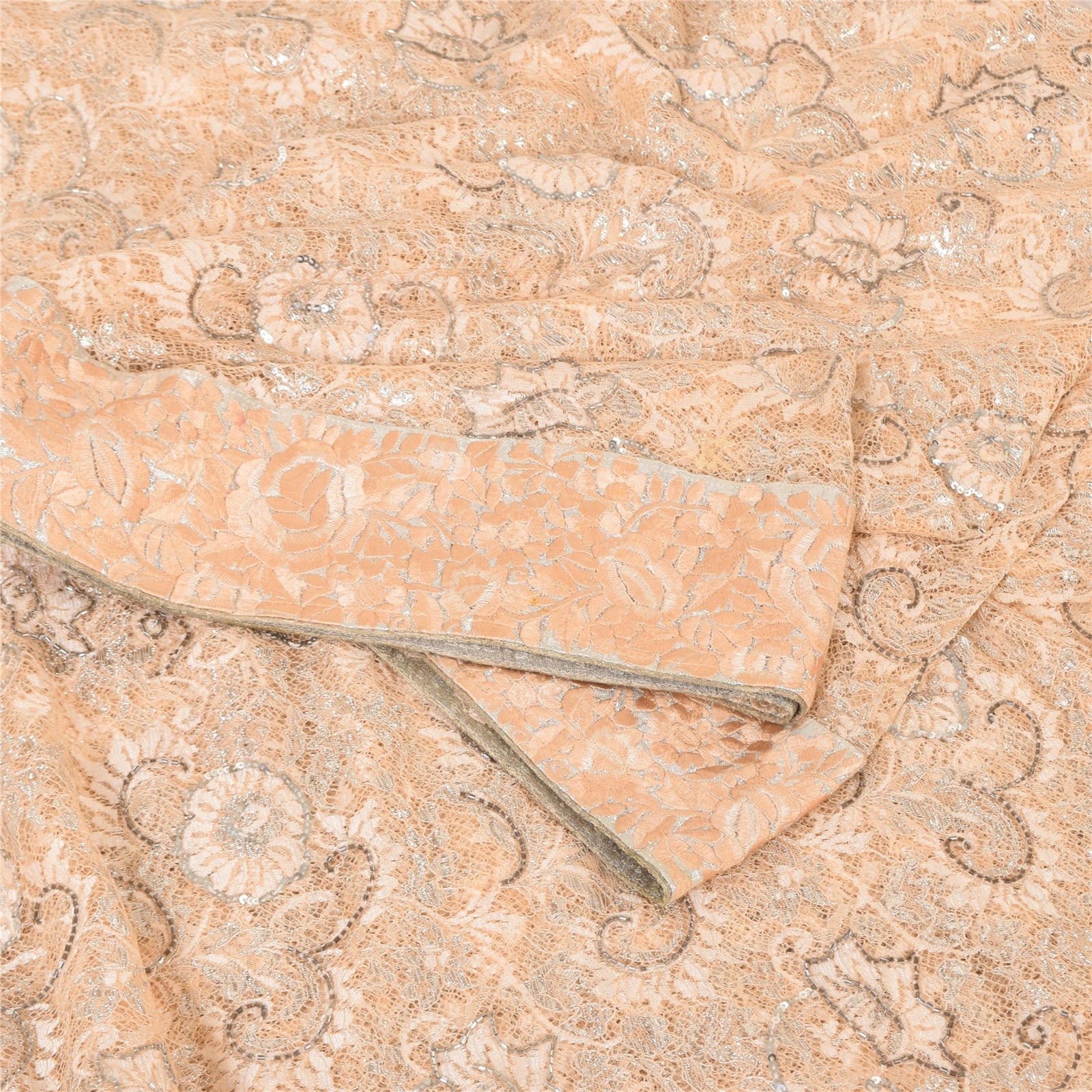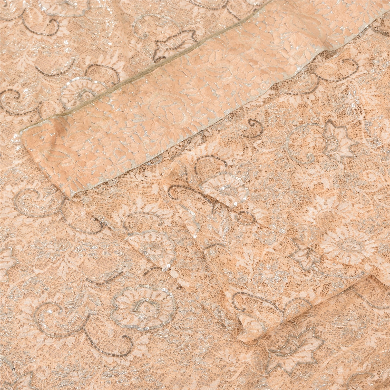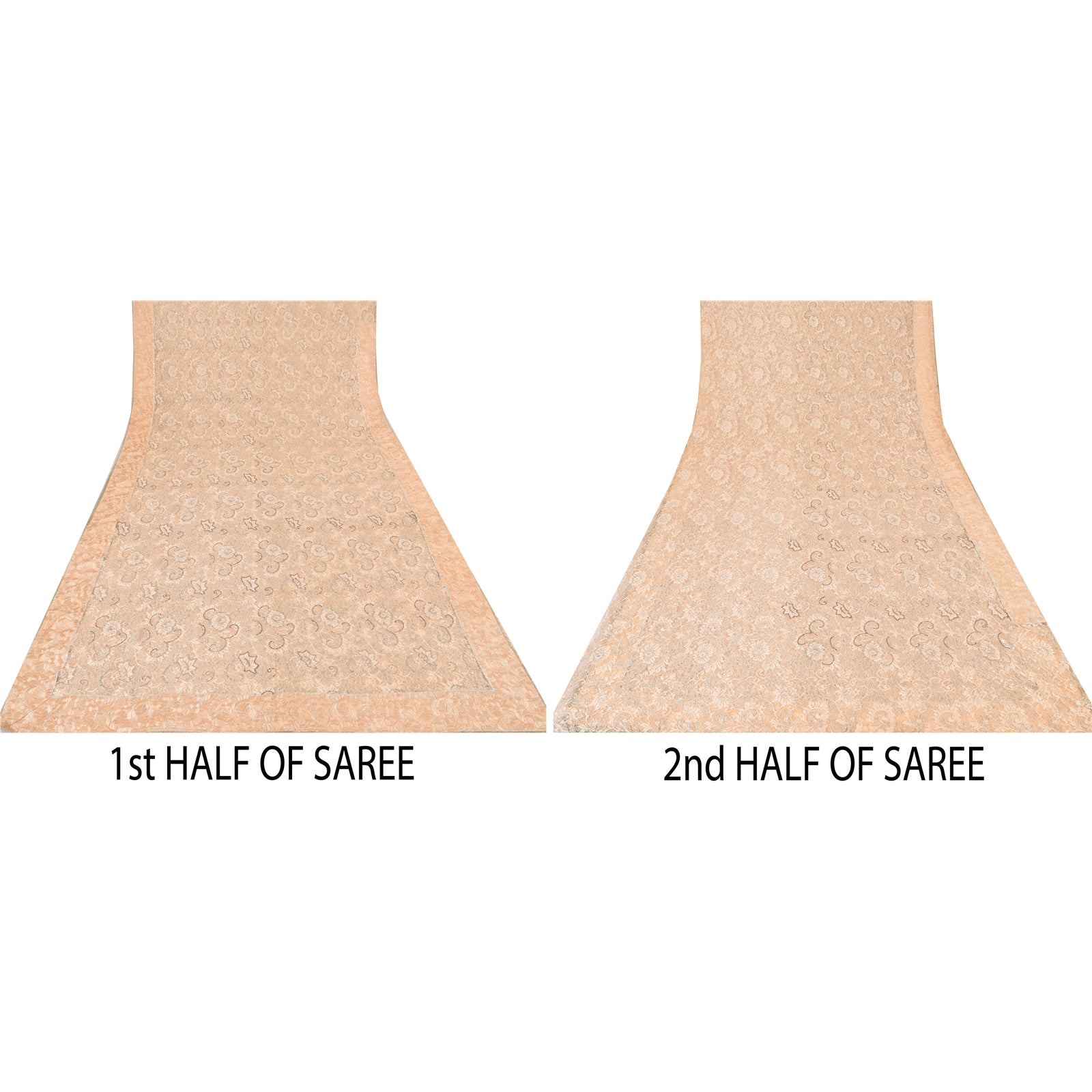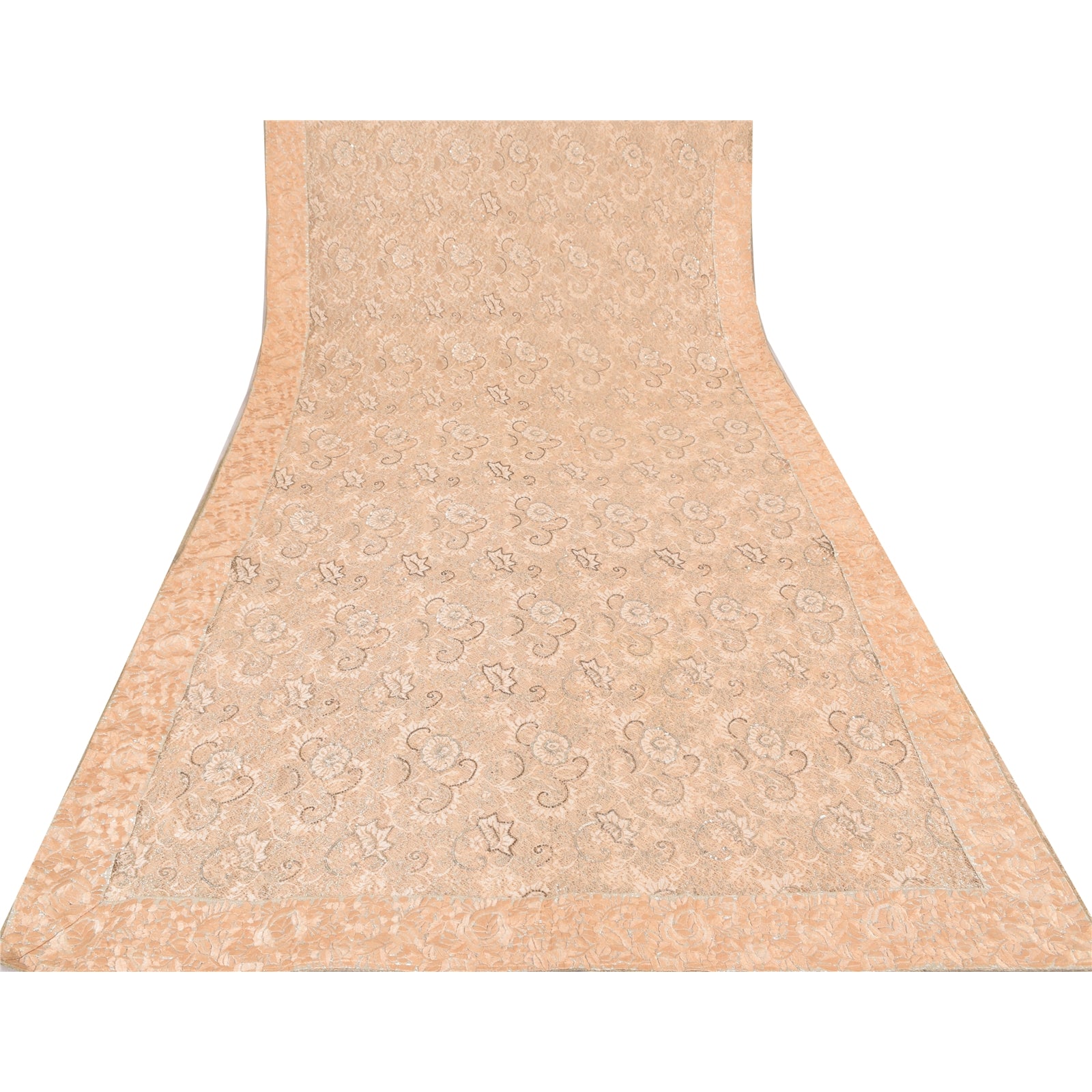 Sanskriti Vintage Peach Sarees Art Silk Hand Beaded Bollywood Sari Craft Sustainable Fabric