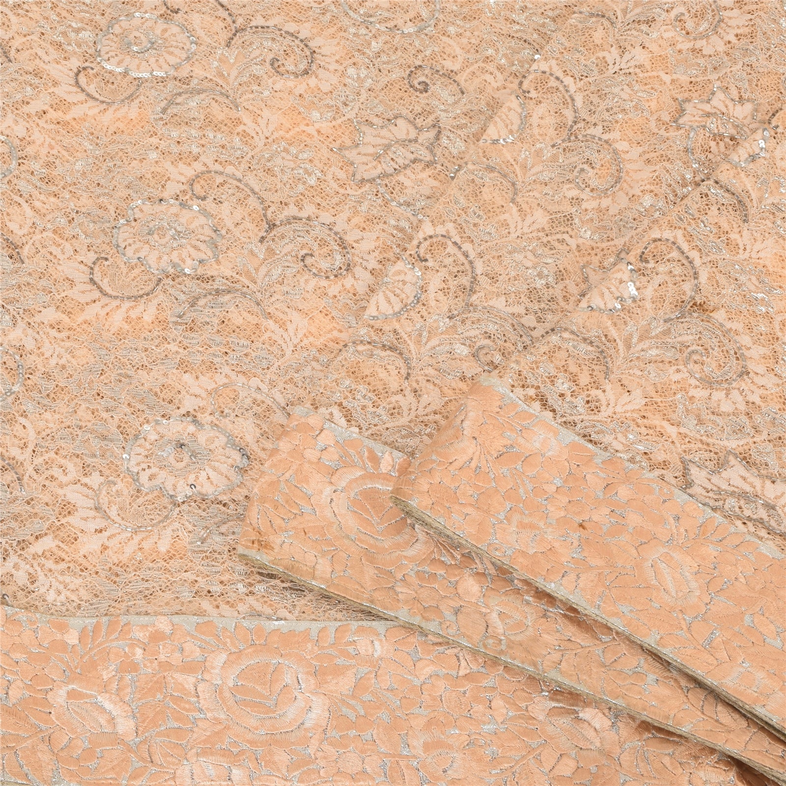 THE ITEM COLOR OR SHADE MAY BE DARKER OR LIGHTER THAN THE PICTURE.' • Beautiful Peach colored Hand beaded Art silk saree . • Pallu & Border has floral design embellished with silver Sustainable Fabric patch work, silver sequins work, silver glass beads work & silver gota pati work. The center part of sari boasts similar floral design with similar work. A truly awesome saree. A one of a Kind. This unique vintage saree can be used for various crafting ideas even if you don't want to use it as a sari. Design a dress, use it as a as window dressing, upholstery, sarongs, throw, dress making and table linen much more. Let your creative juices flow and use this decorated Sustainable Fabric in multiple fashion. Shipping note: International buyers please note: Import duties, taxes, and charges are not included in the item price or postage cost. These charges are the buyer's responsibility. Please check with your country's customs office to determine what these additional costs will be prior to bidding or buying. Buyer will pay custom duty/tax. It is calculated and charged differently by every country. As a seller I do not have any control over it. VAT or sales tax is calculated by the platform at the time of checkout. Customs charge is payable at the time of delivery. SKU: HS-7133