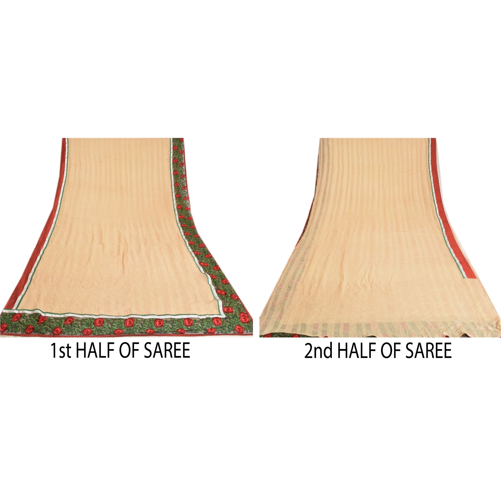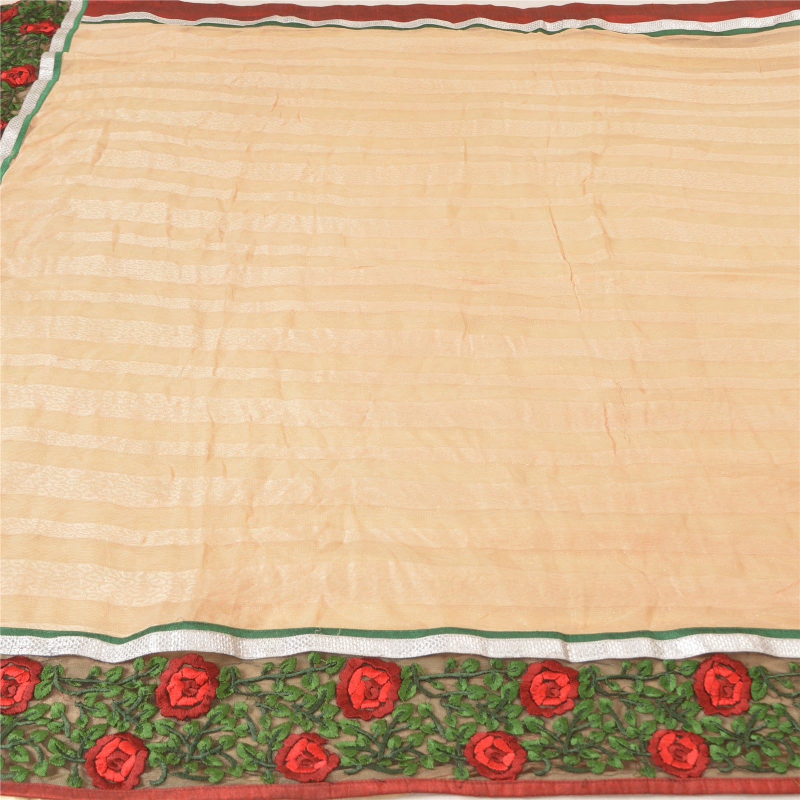 Sanskriti Vintage Peach Sarees Blend Georgette Embroidered Parsee Sari Sustainable Fabric
