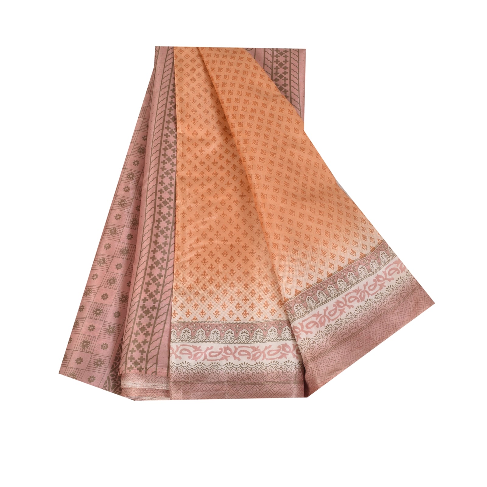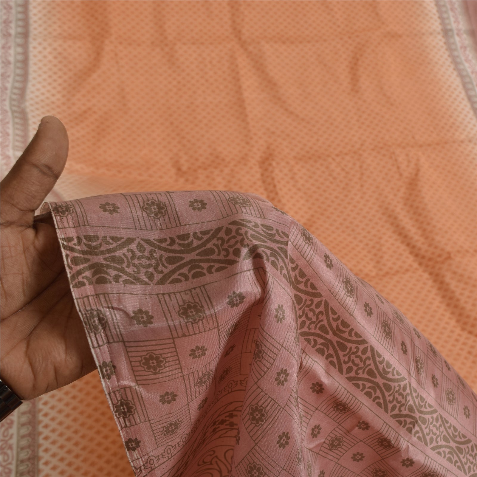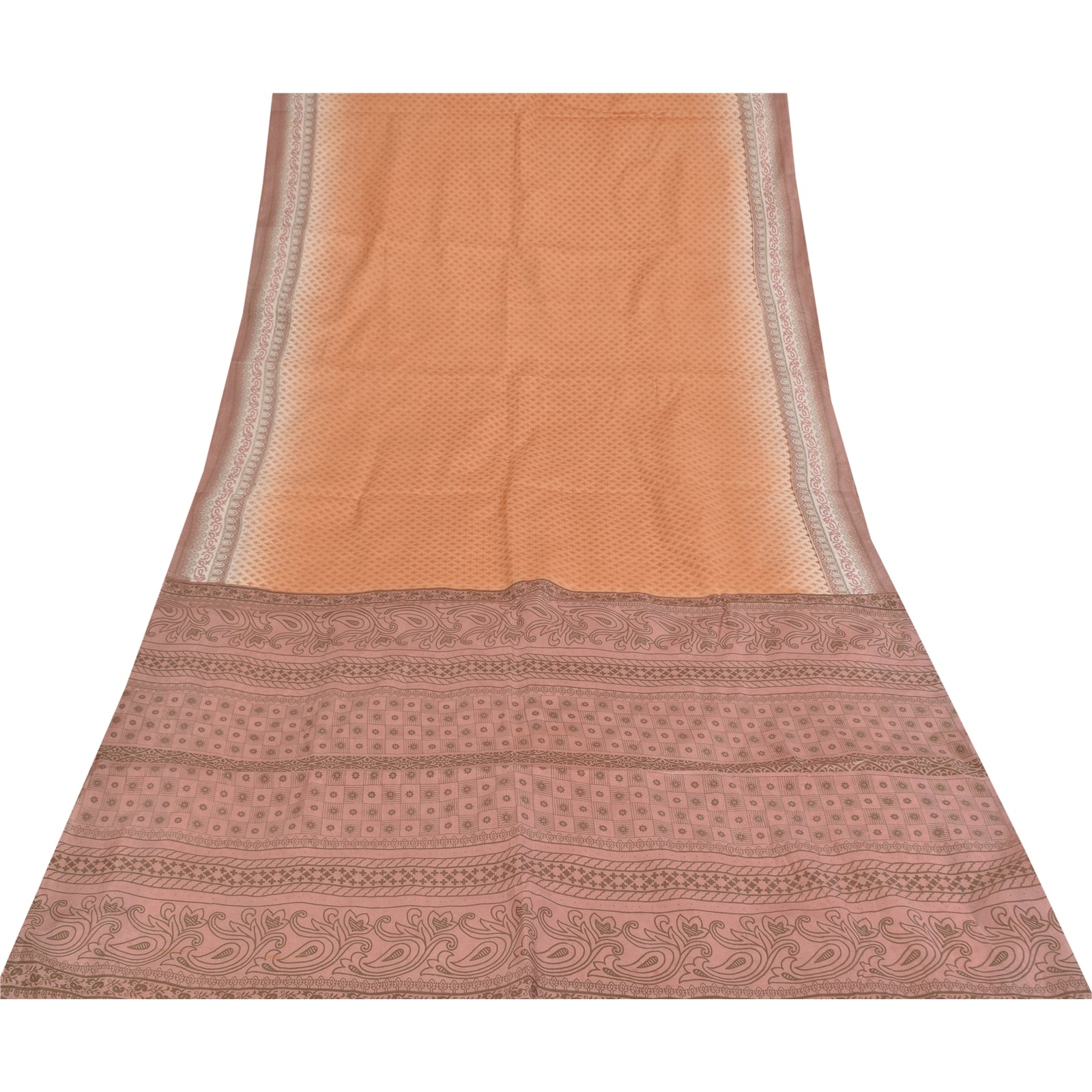 Sanskriti Vintage Peach Sari Art Silk Printed Sarees 5 yard Paisley Craft Fabric
