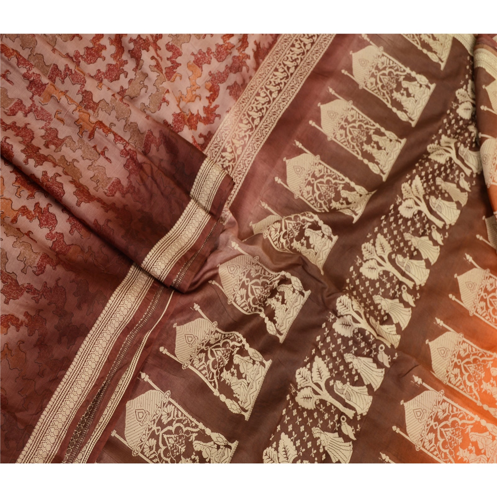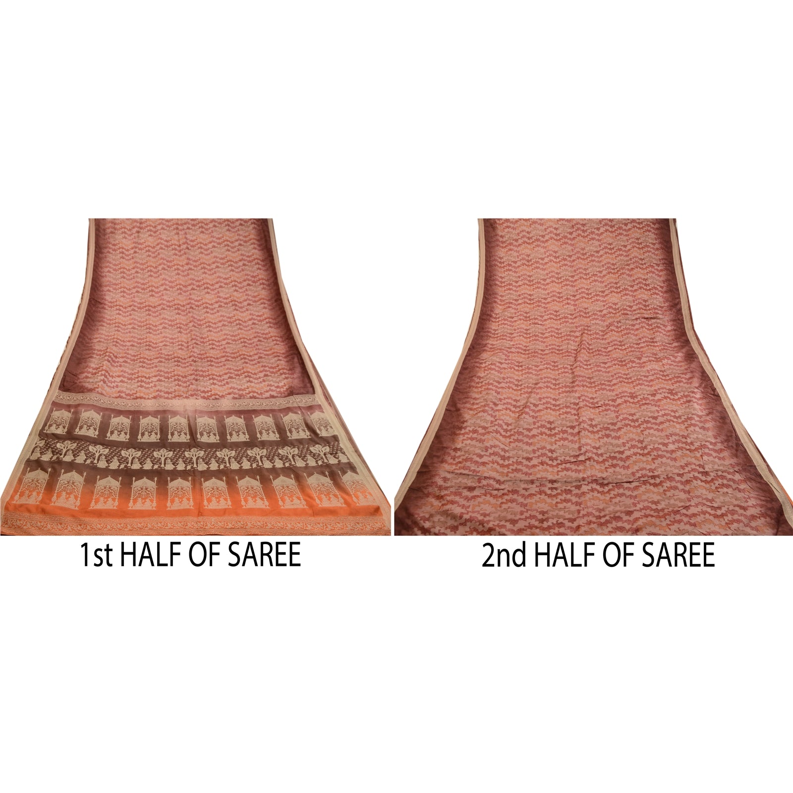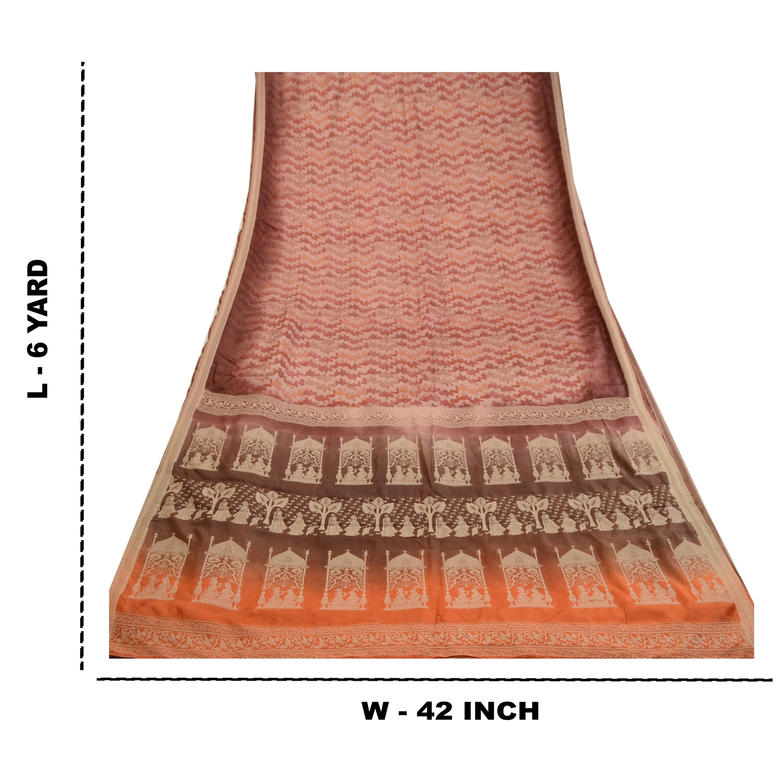 Beautiful dusty pink & red colored pure silk baluchari woven & printed saree. Pallu & Border has floral & human design with woven work. Printed abstract design in center part of saree. What is special about this saree? Fabulous design is really enhancing the beauty of the saree.This unique vintage saree can be used for various crafting ideas even if you don't want to use it as a sari. Design a dress, use it as window,dressing, upholstery, sarongs, throw, dress making and table linen much more. Let your creative juices flow and use this decorated Sustainable Fabric in multiple fashion.