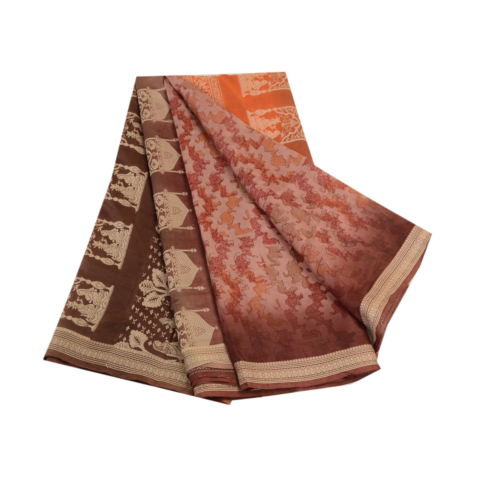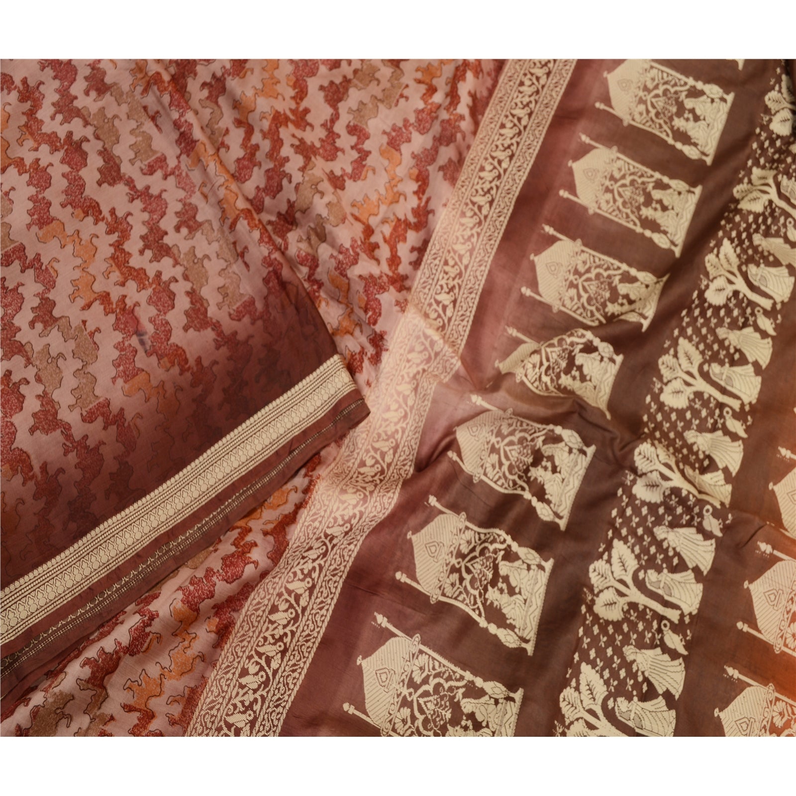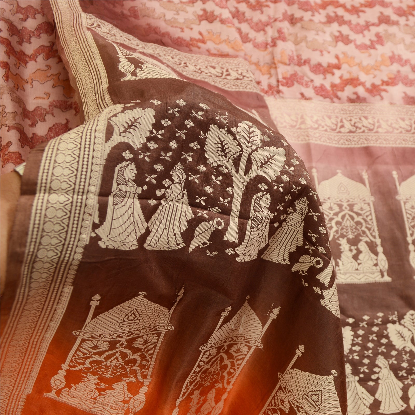 Sanskriti Vintage Pink Baluchari Mythological Sarees Pure Silk Print Sari Sustainable Fabric