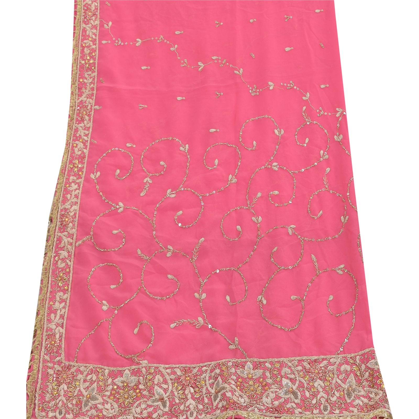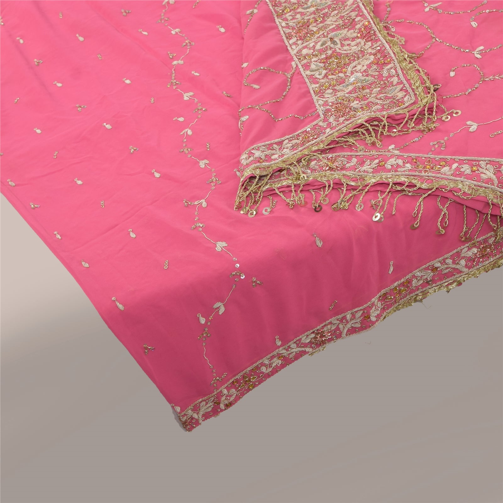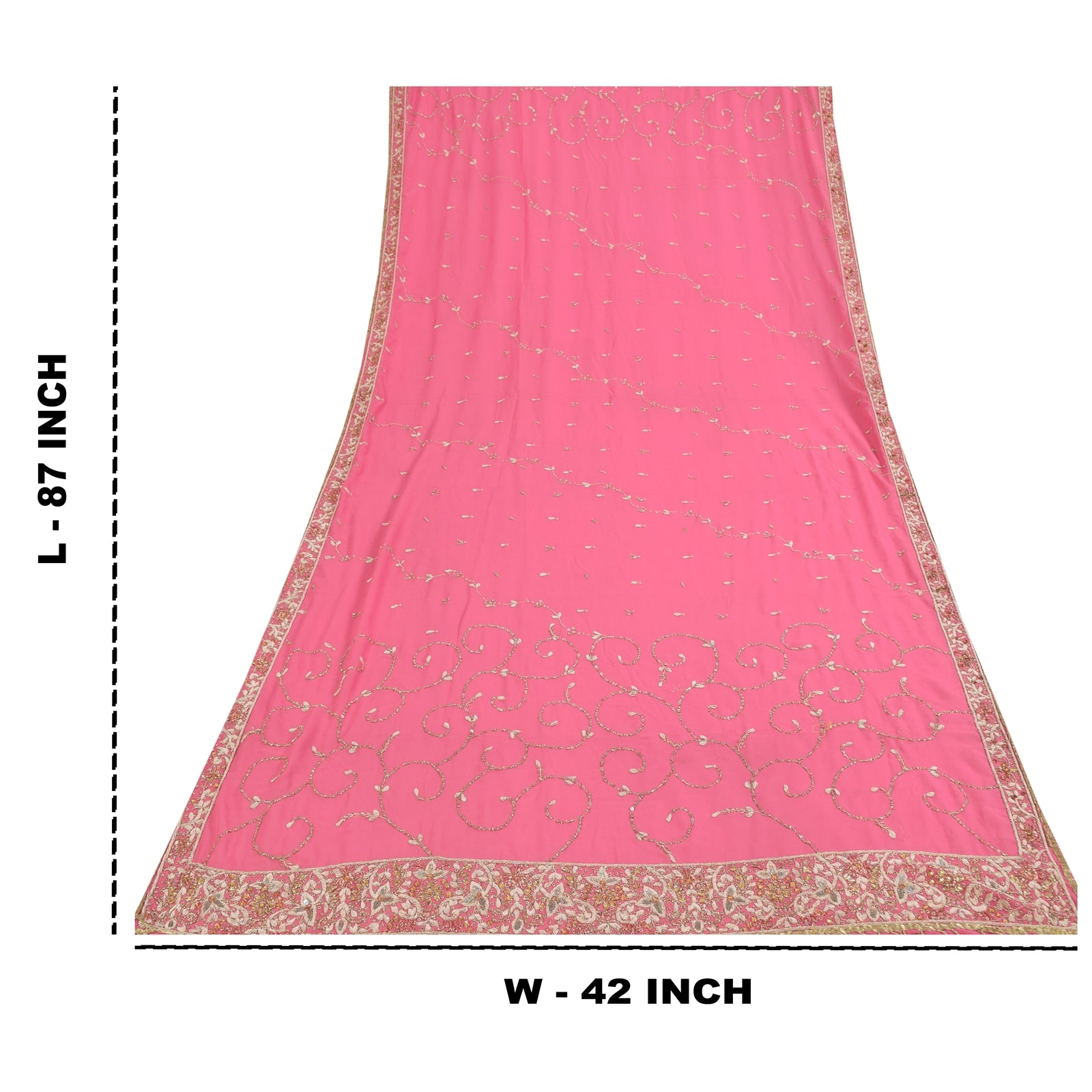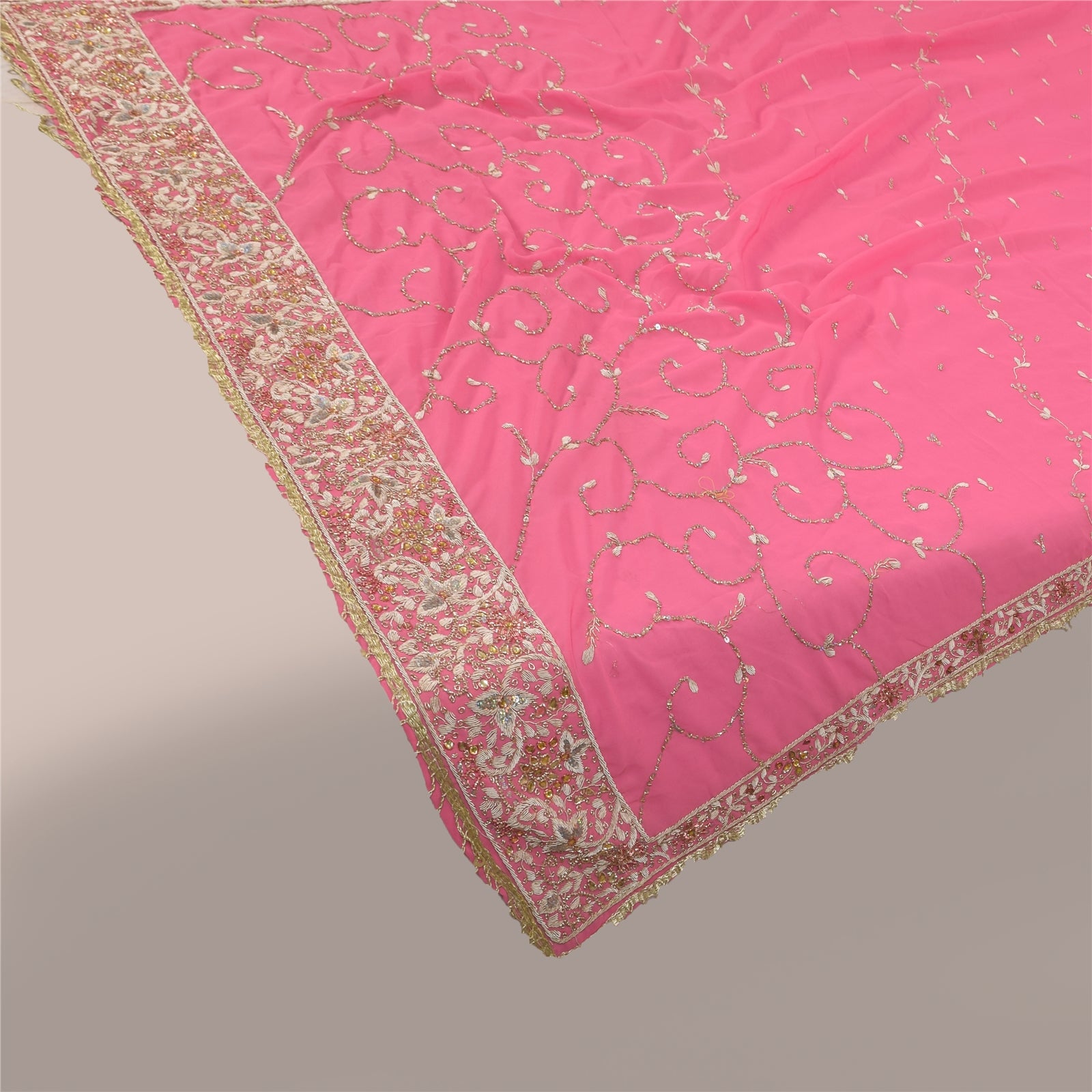 Sanskriti Vintage Pink Dupatta Long Stole Georgette Hand Beaded Premium Scarves