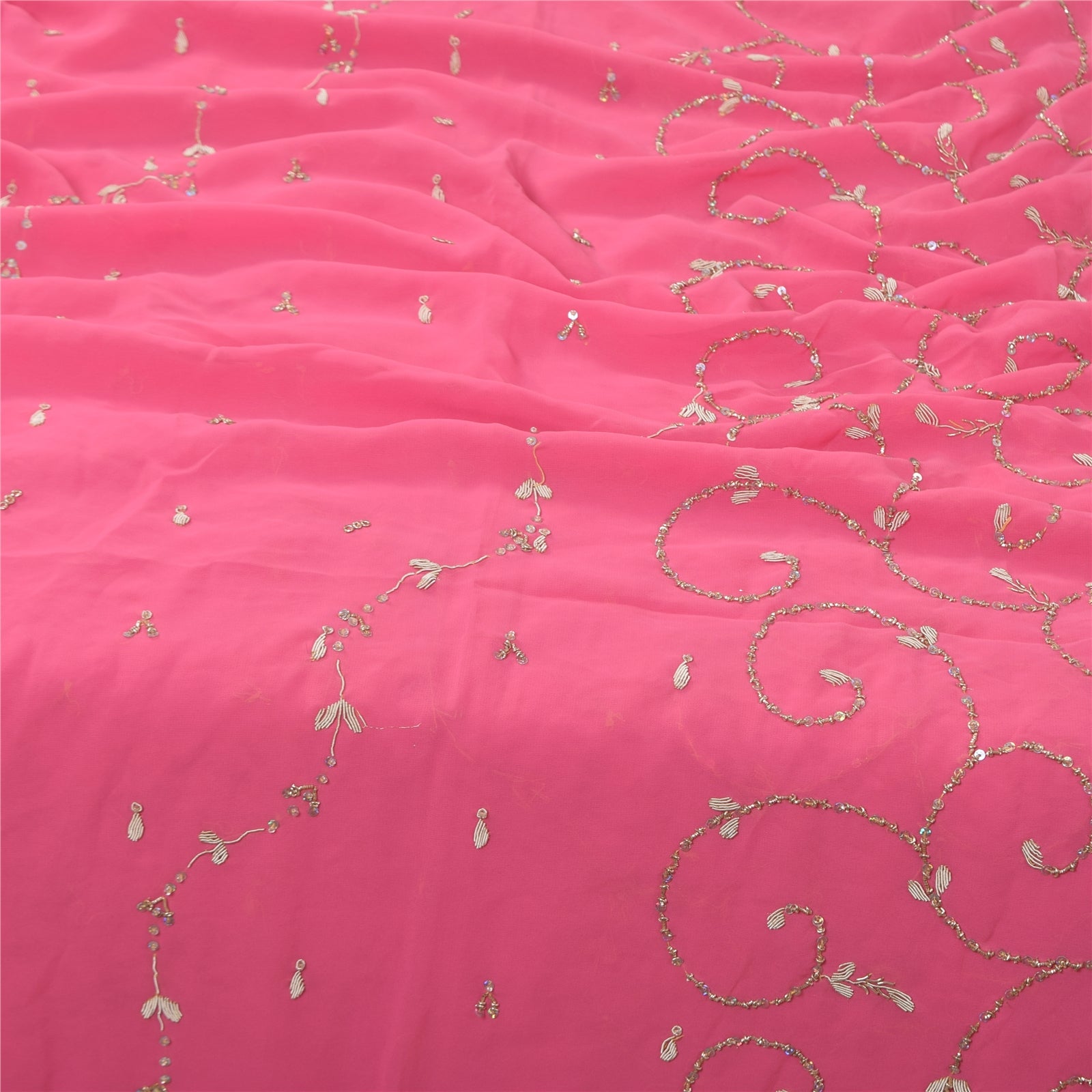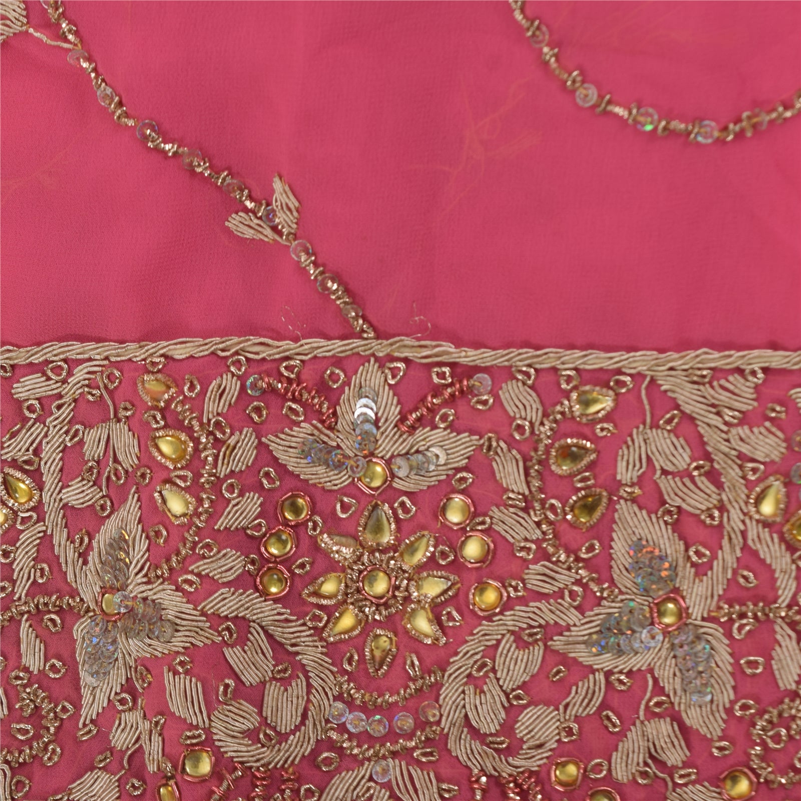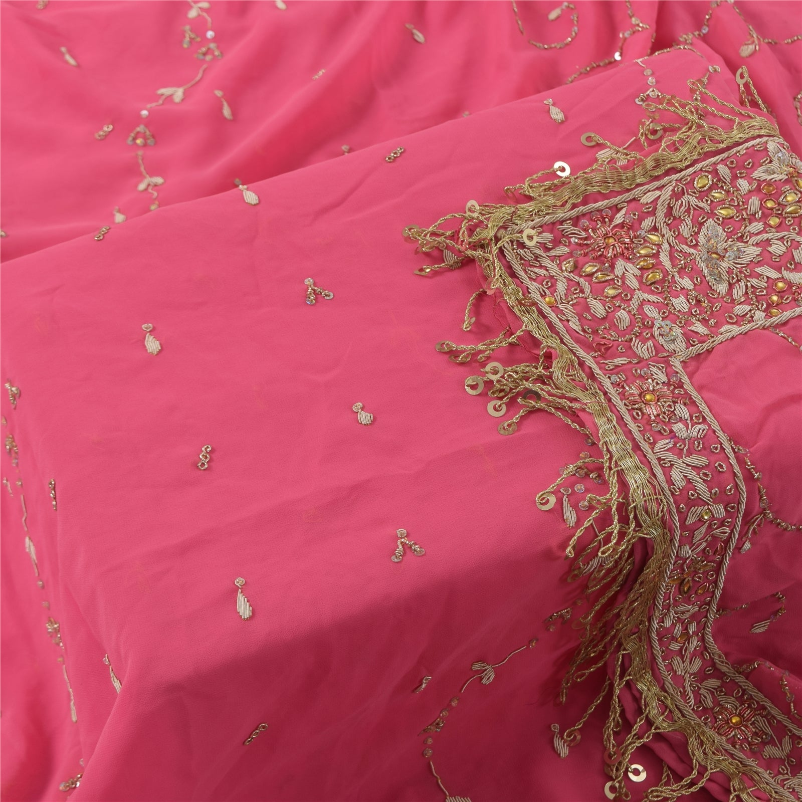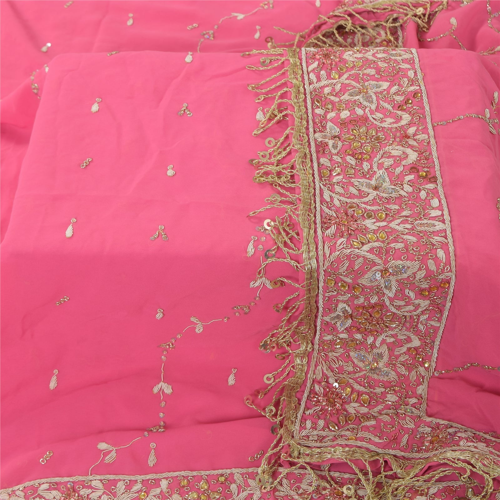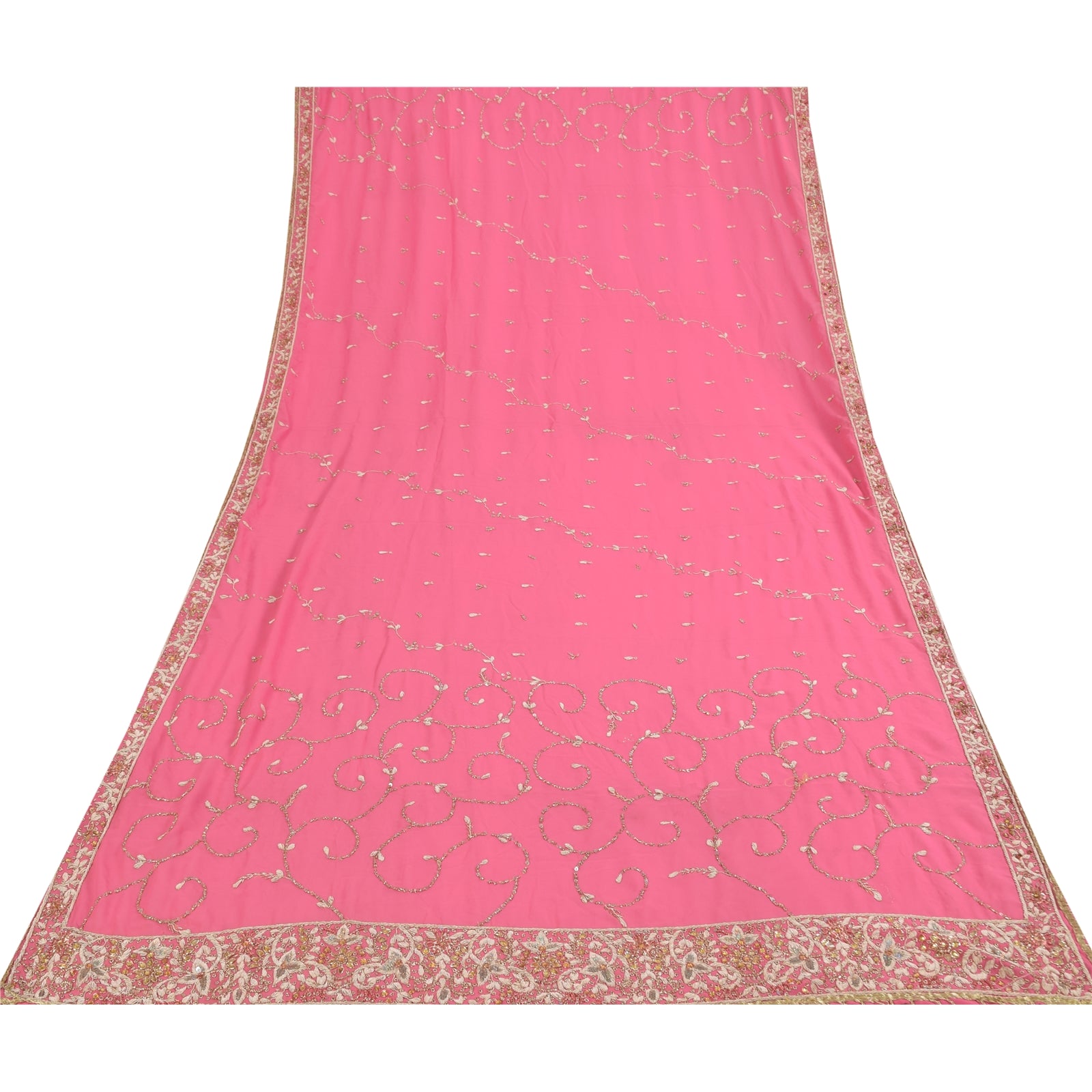 Sanskriti Vintage Pink Dupatta Long Stole Georgette Hand Beaded Premium Scarves
