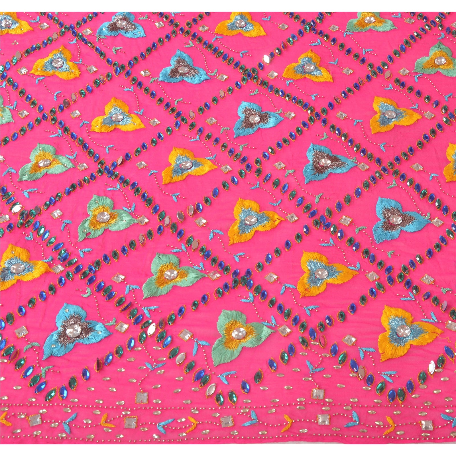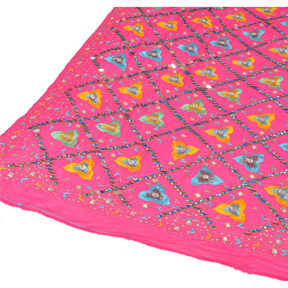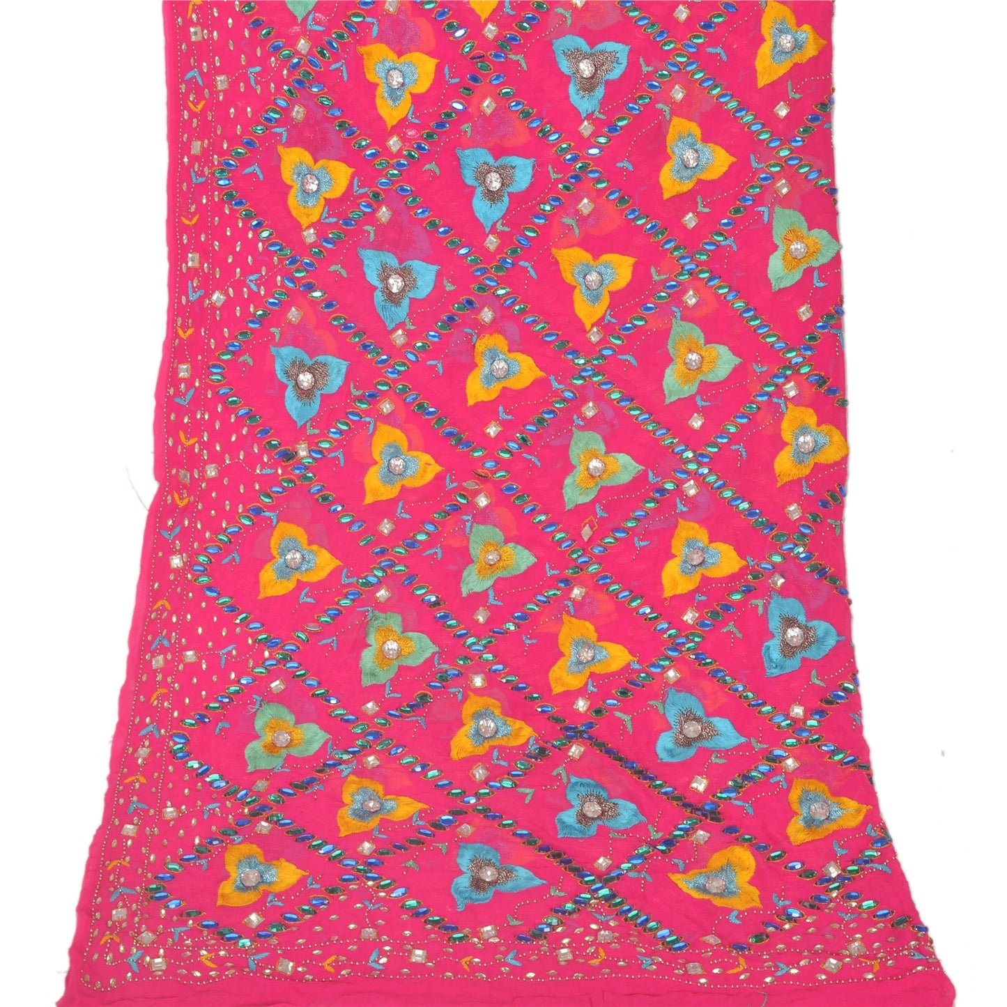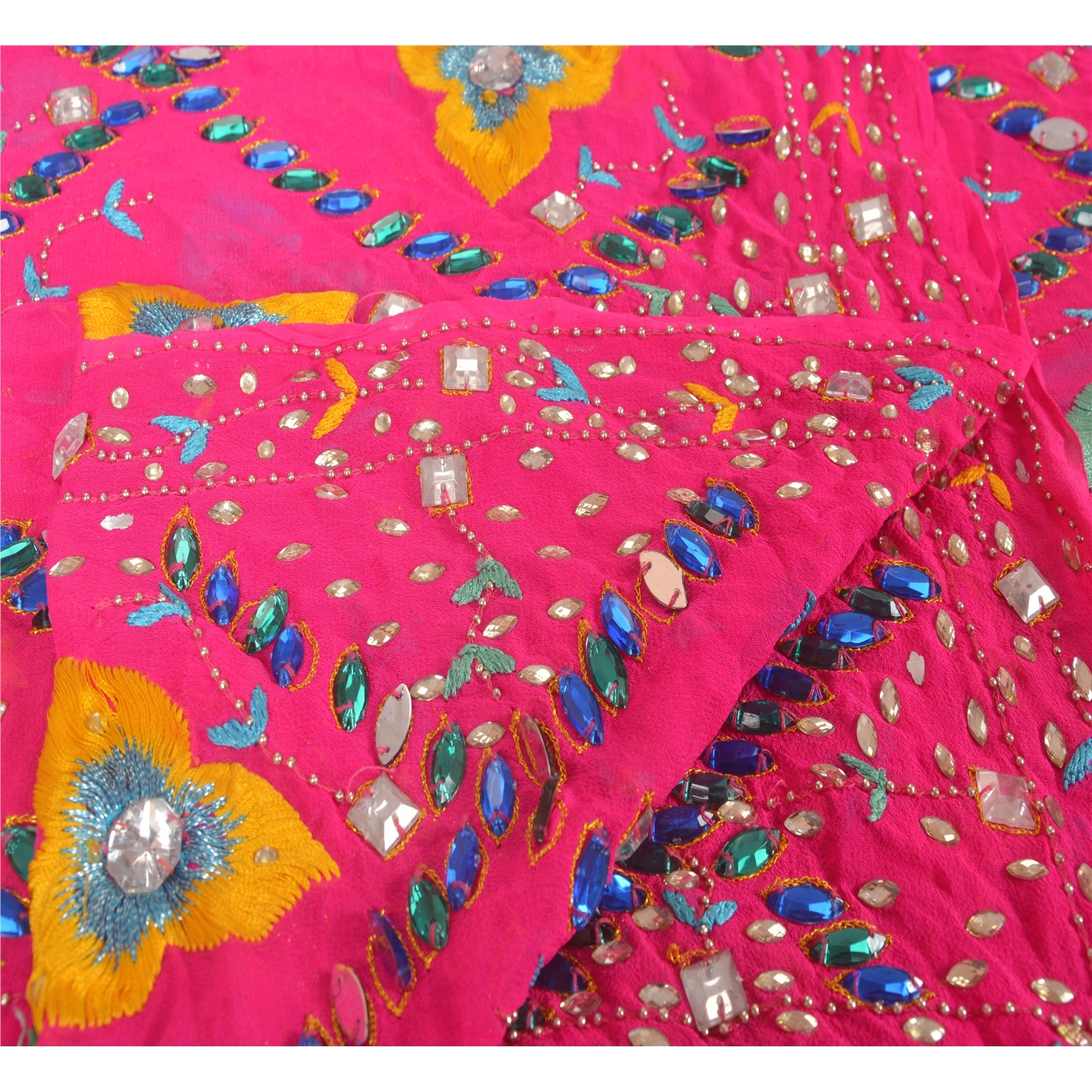 Sanskriti Vintage Pink Dupatta Long Stole Pure Georgette Silk Hand Beaded Veil