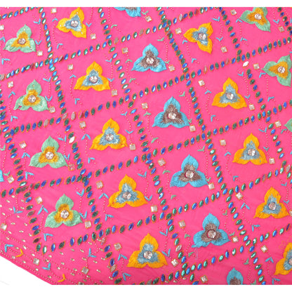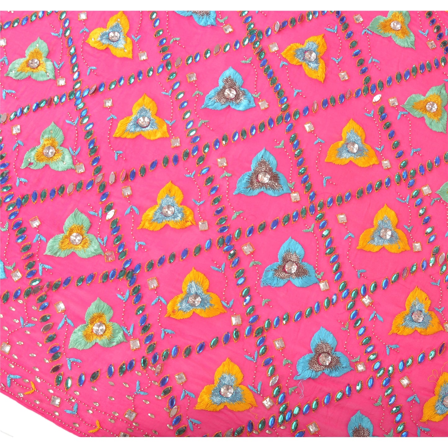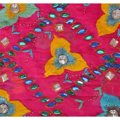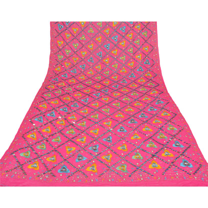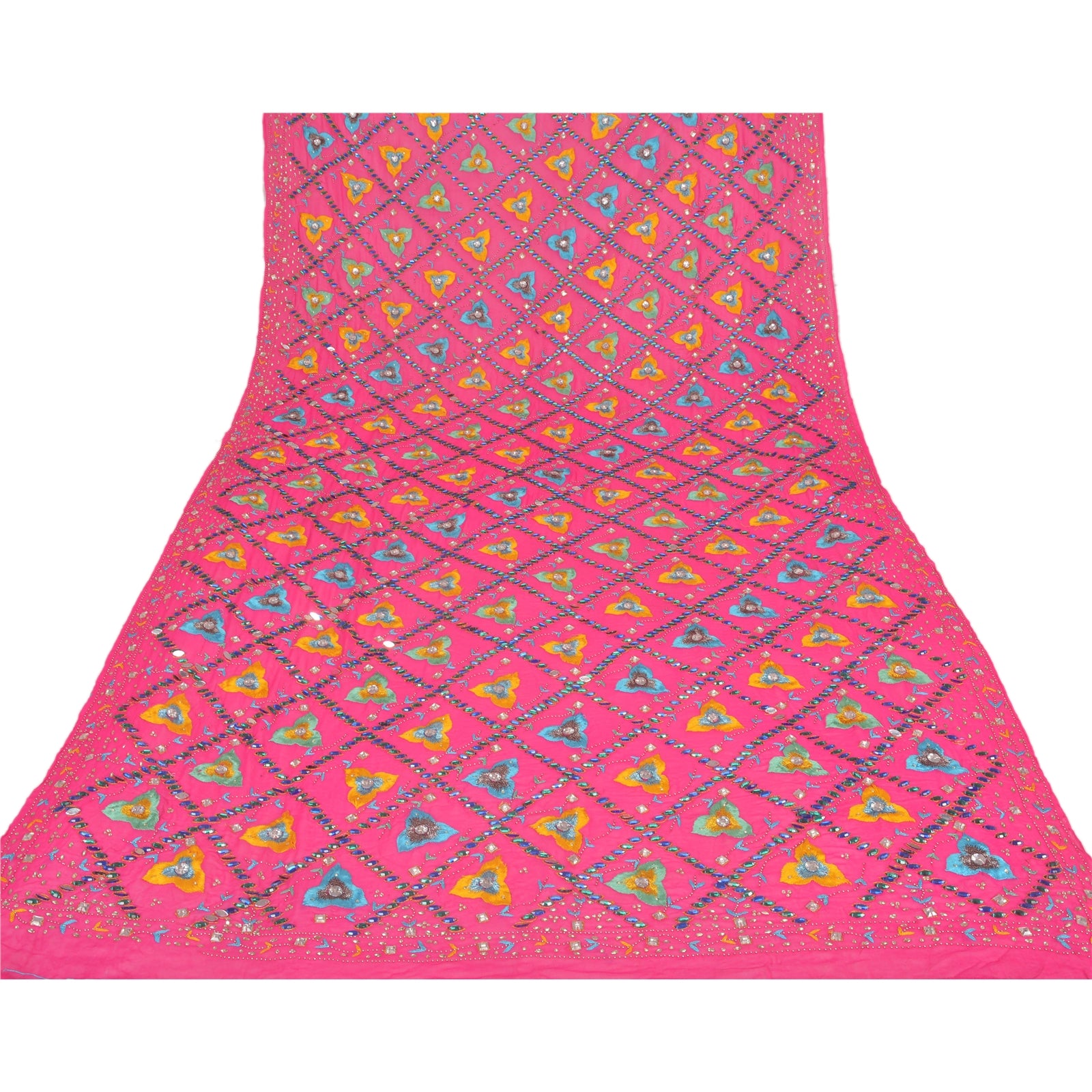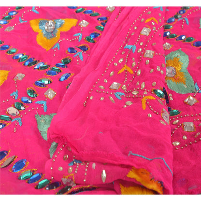 Sanskriti Vintage Pink Dupatta Long Stole Pure Georgette Silk Hand Beaded Veil