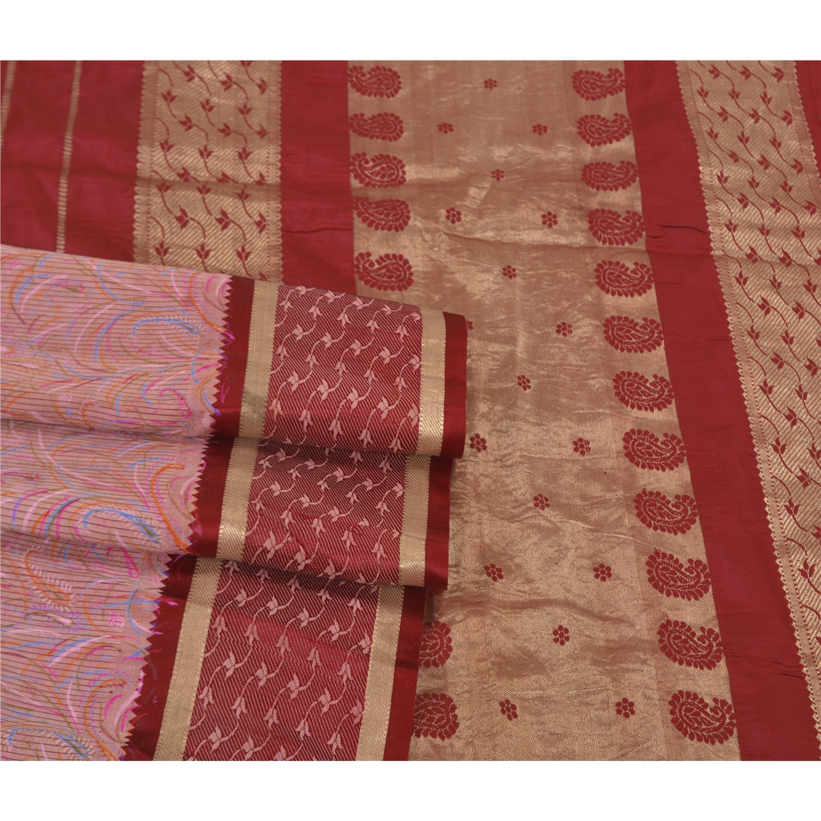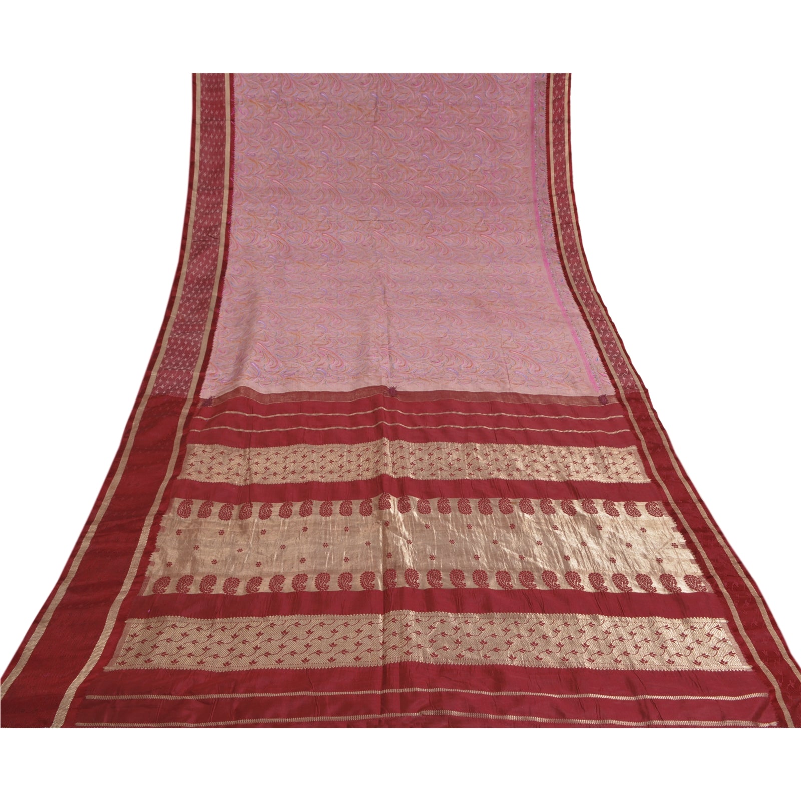 Sanskriti Vintage Pink Heavy Wedding Sarees Pure Silk Woven Brocade Sari Sustainable Fabric