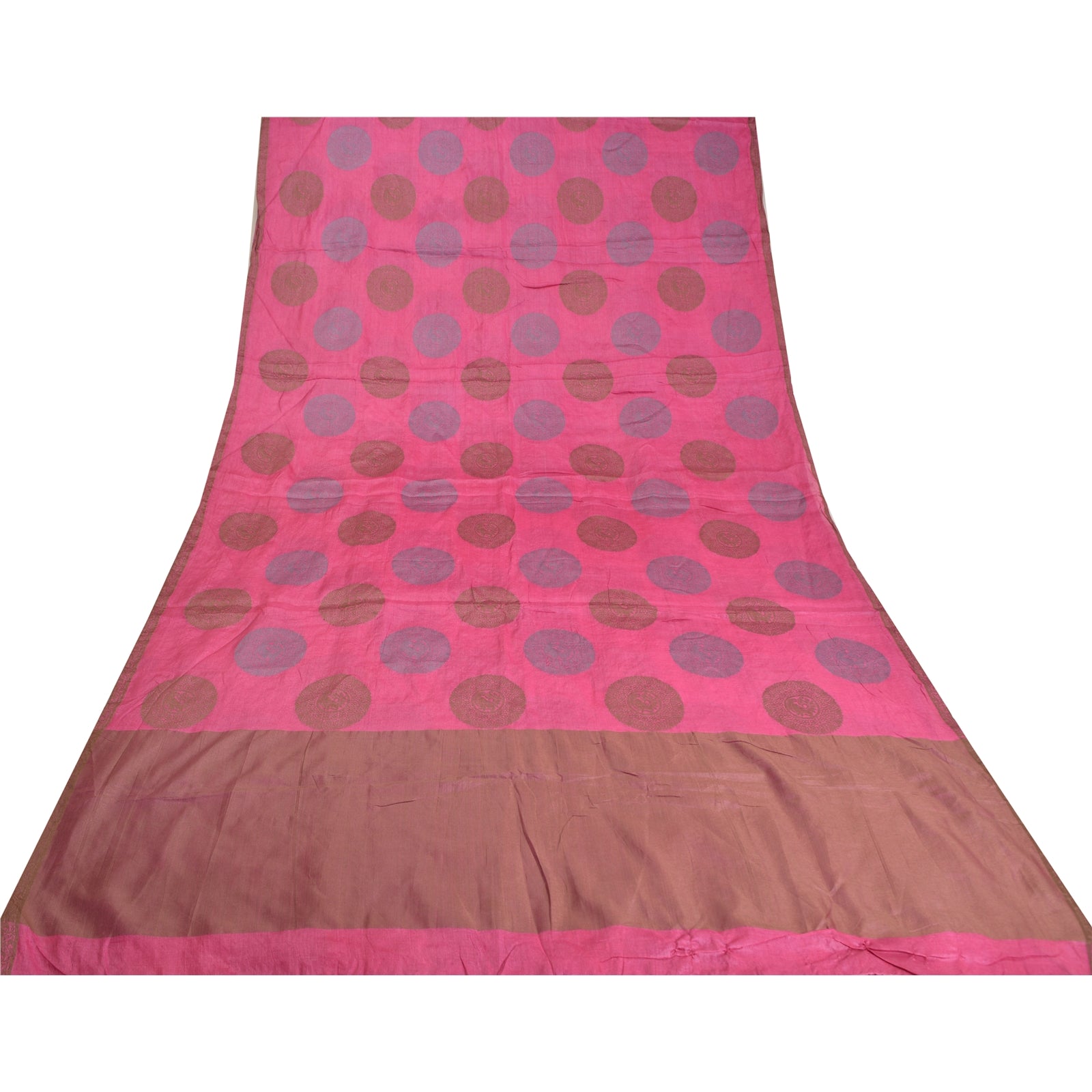 Sanskriti Vintage Pink Indian Sarees 100% Pure Silk Woven Sari Craft Sustainable Fabric