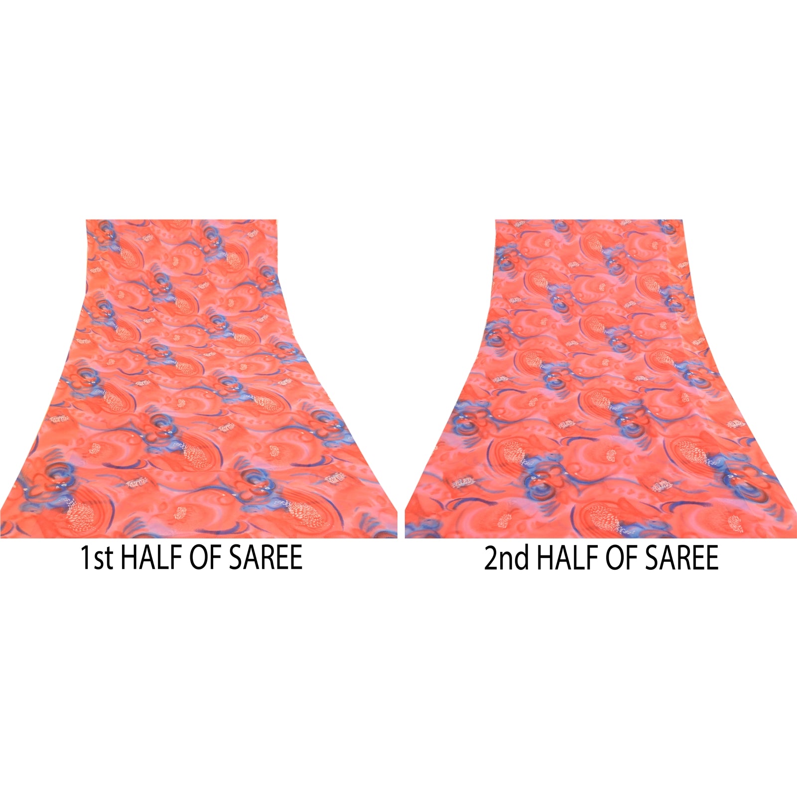 Sanskriti Vintage Pink Indian Sarees Georgette Printed Sari Craft 5 Yard Sustainable Fabric