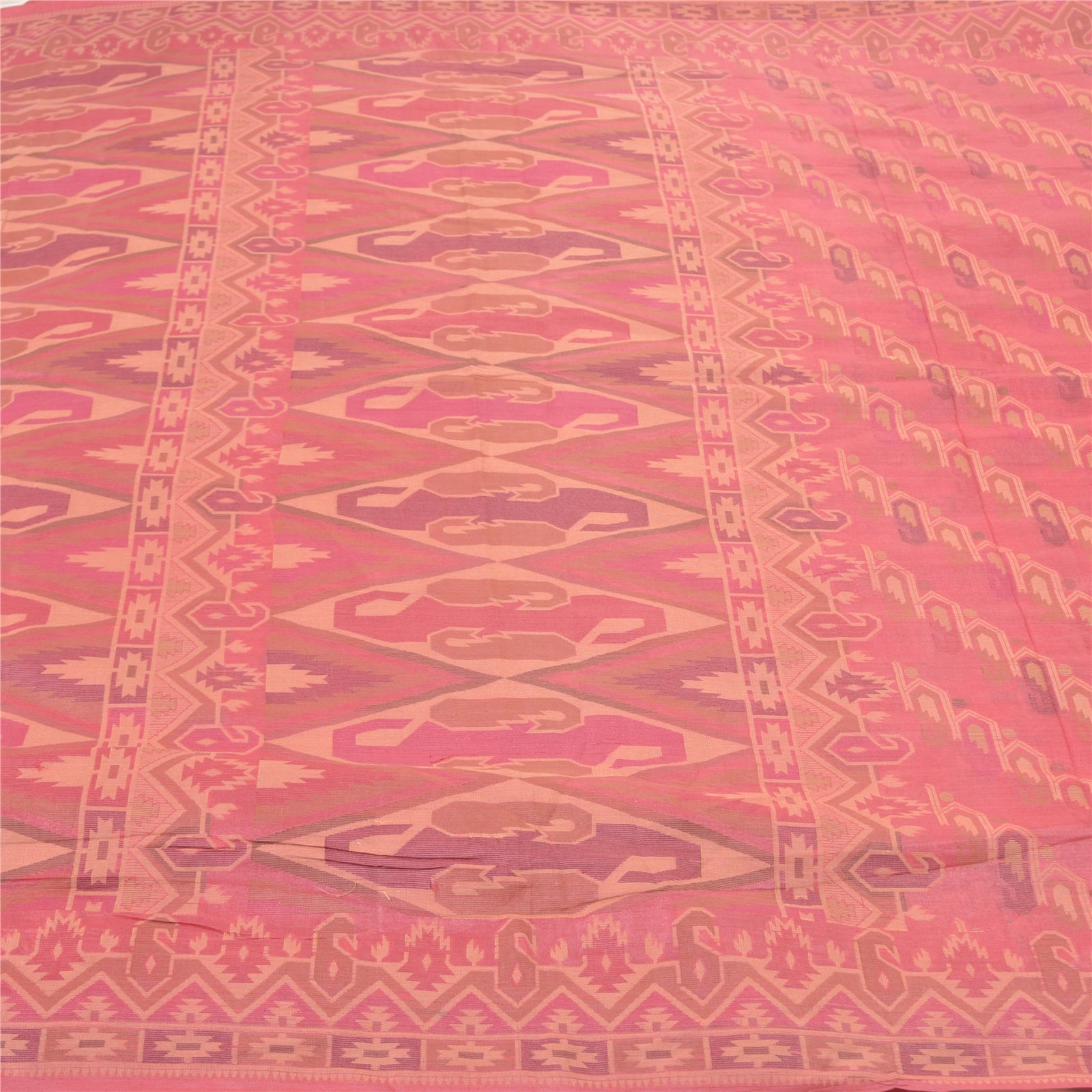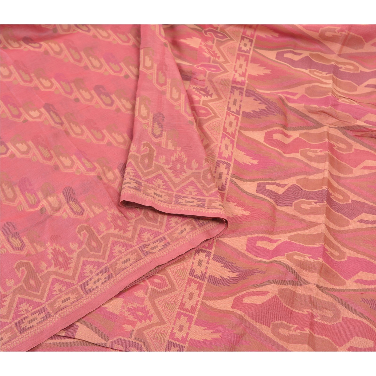 Beautiful Shade Of Pink Colored 100% Pure Silk Hand-Woven Sari. Pallu & Border features eye- catching hand-woven woven work with floral, zig- zag & paisley design. You can see similar woven work with floral & paisley design in center portion of saree. This saree can be used for various crafting ideas too. Use it for dress designing, as a throw, as window dressing, upholstery, table linen and much more. Let your creative juices flow.