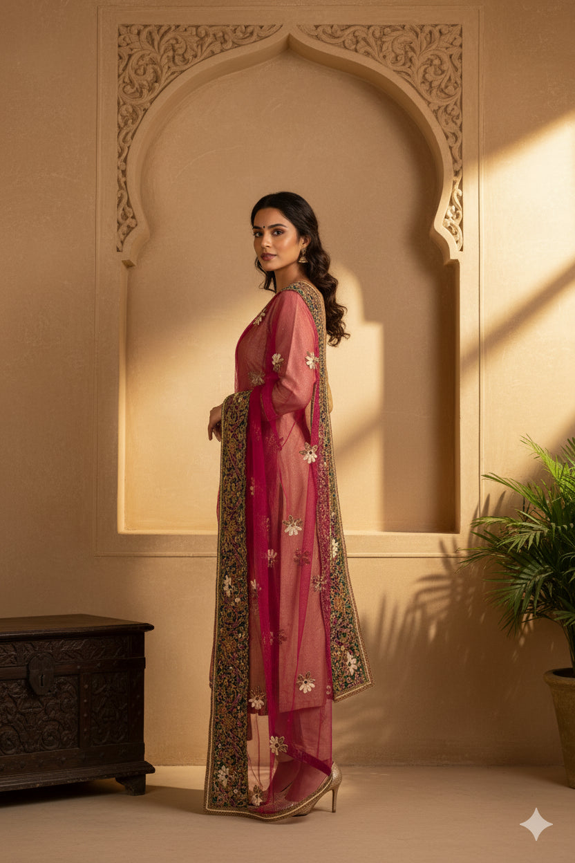 • Brand: • Product Type: Dupatta / Stole / Scarf / Veil • Fabric: Net Mesh • Color: Pink • Work: Hand Beaded Embroidery With Copper Zardozi, Dabka, Sequins Beads, Thread Work. • Design: All-Over Floral Vie Embroidery With Decorative Borders • Texture: Lightweight, Flowy Drape • Length: Long Dupatta / Stole (Approx. Standard Length) • Condition: Vintage / Pre-Owned • Usage: Neck Scarf, Head Veil, Bridal Styling, Festive Wear, Layering Piece • Occasion: Wedding, Party, Ethnic Wear, Special Occasions • Craft Use: Ideal For Upcycling, Fashion Design, Or Decor Projects • Origin: India The Item Color Or Shade May Be Darker Or Lighter Than The Picture.' International Buyers Please Note: Import Duties, Taxes, And Charges Are Not Included In The Item Price Or Postage Cost. Buyer Will Pay Custom Duty/Tax,Vat, And Any Applicable Charges At The Time Of Delivery. Hd-7836