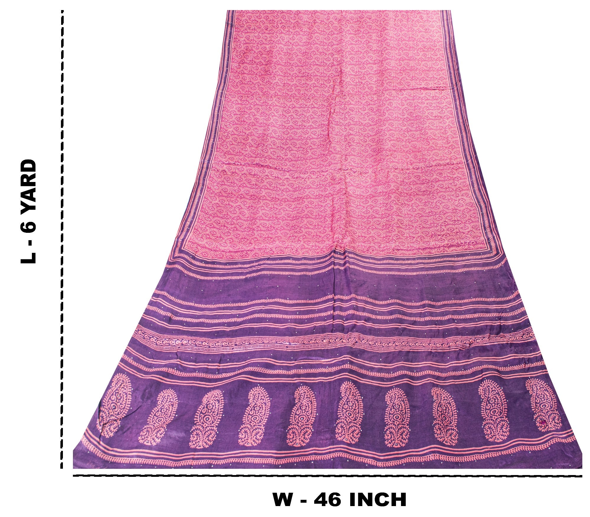 • Brand: • Product Type: Saree/Sarees/Sari Craft Fabric • Fabric: Pure Bamboo Silk • Color: Pink & Purple (As Shown In Images • Length: Approx. 6 Yards • Width: Approx. 1+ Yards • Work: Hand Block Print With Floral Design & Mukesh Work Pallu, Borders & Center Part Of Saree .• Texture: Lightweight, Soft, Flowy With Elegant Drape• Condition: Vintage / Pre-Owned • Uses: • Designer Saree Draping • Bridal & Festive Outfits • Lehenga, Gown, Dupatta Making • Craft Projects, Upcycling, Ethnic Décor • Note: Color May Vary Slightly Due To Lighting & Screen Settings• Ideal For Fashion Designers, Collectors & Fabric Lovers .The Item Color Or Shade May Be Darker Or Lighter Than The Picture. 'International Buyers Please Note: Import Duties, Taxes, And Charges Are Not Included In The Item Price Or Postage Cost. Buyer Will Pay Custom Duty/Tax,Vat, And Any Applicable Charges At The Time Of Delivery. Hs-7394