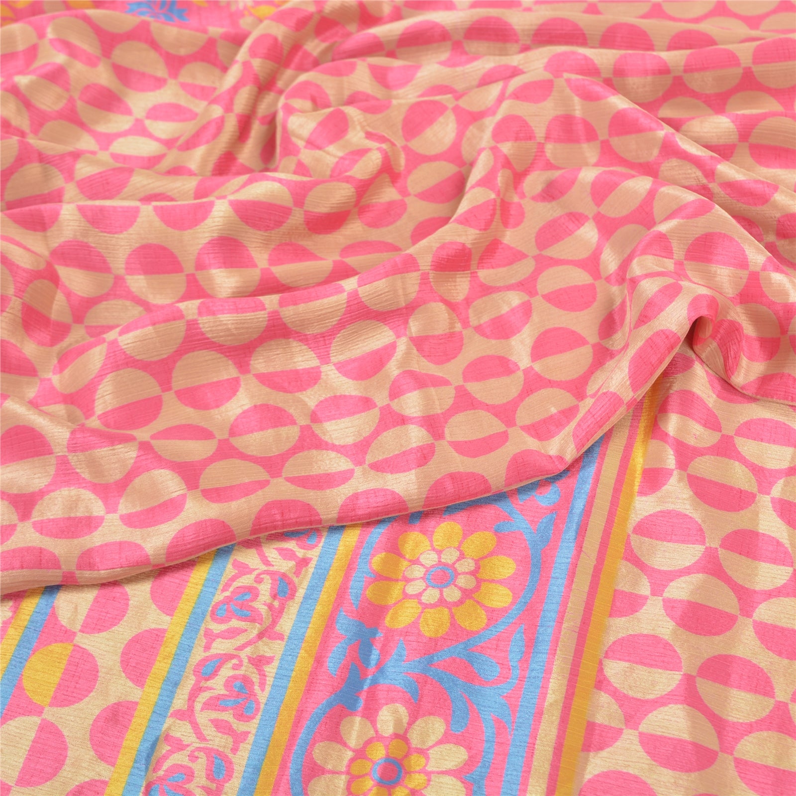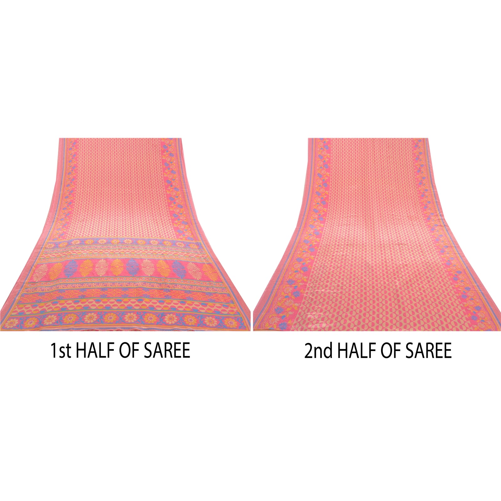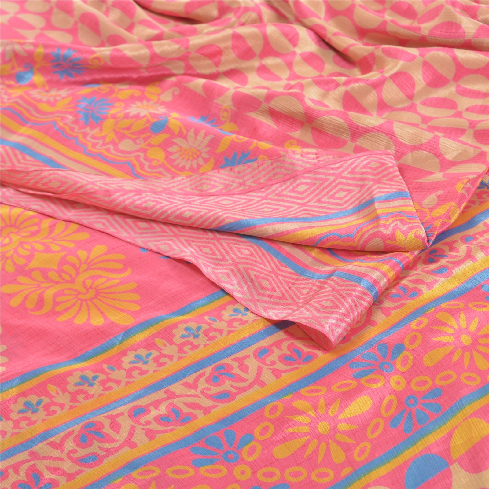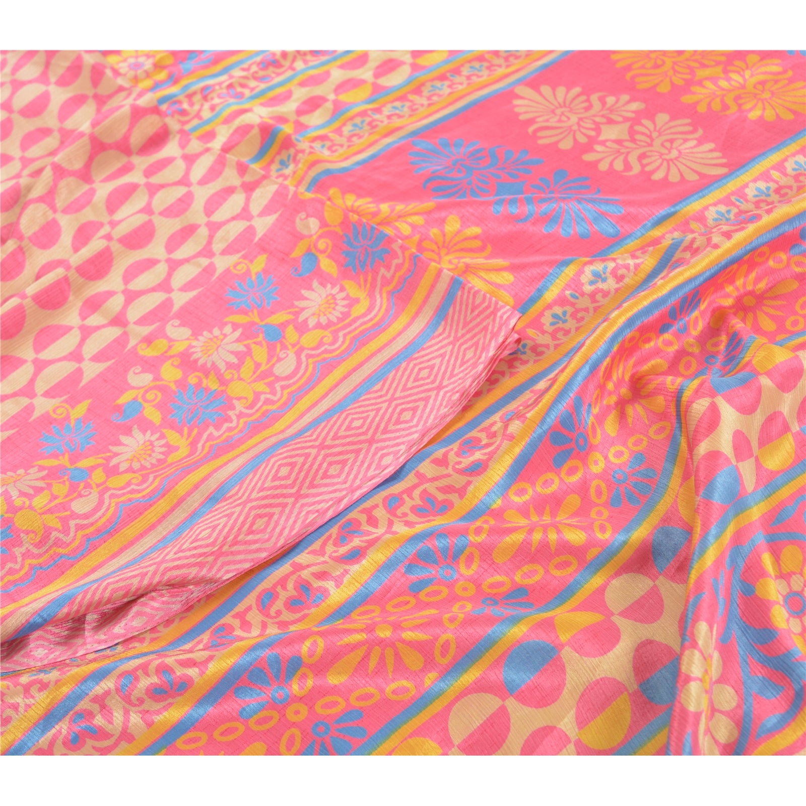 Sanskriti Vintage Pink Sarees Moss Crepe Floral Printed Craft Sustainable Fabric Sari