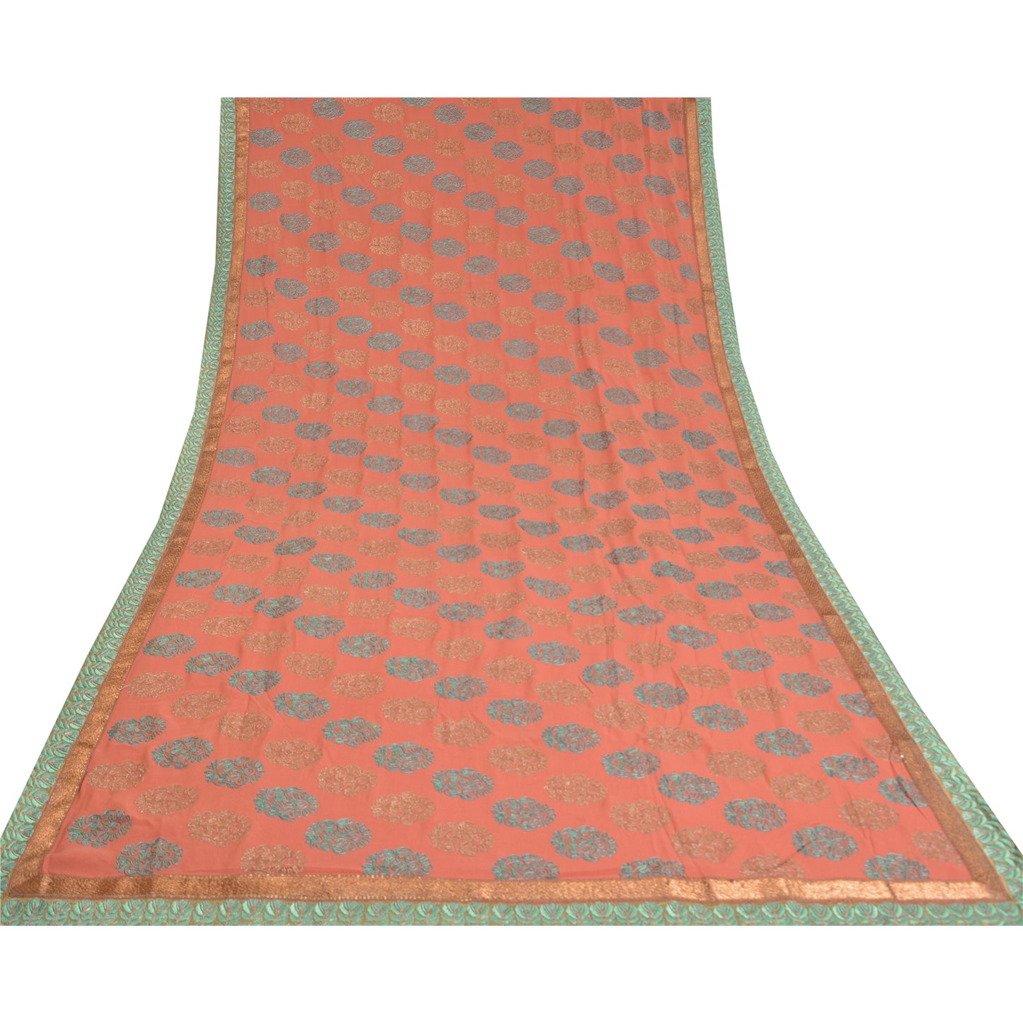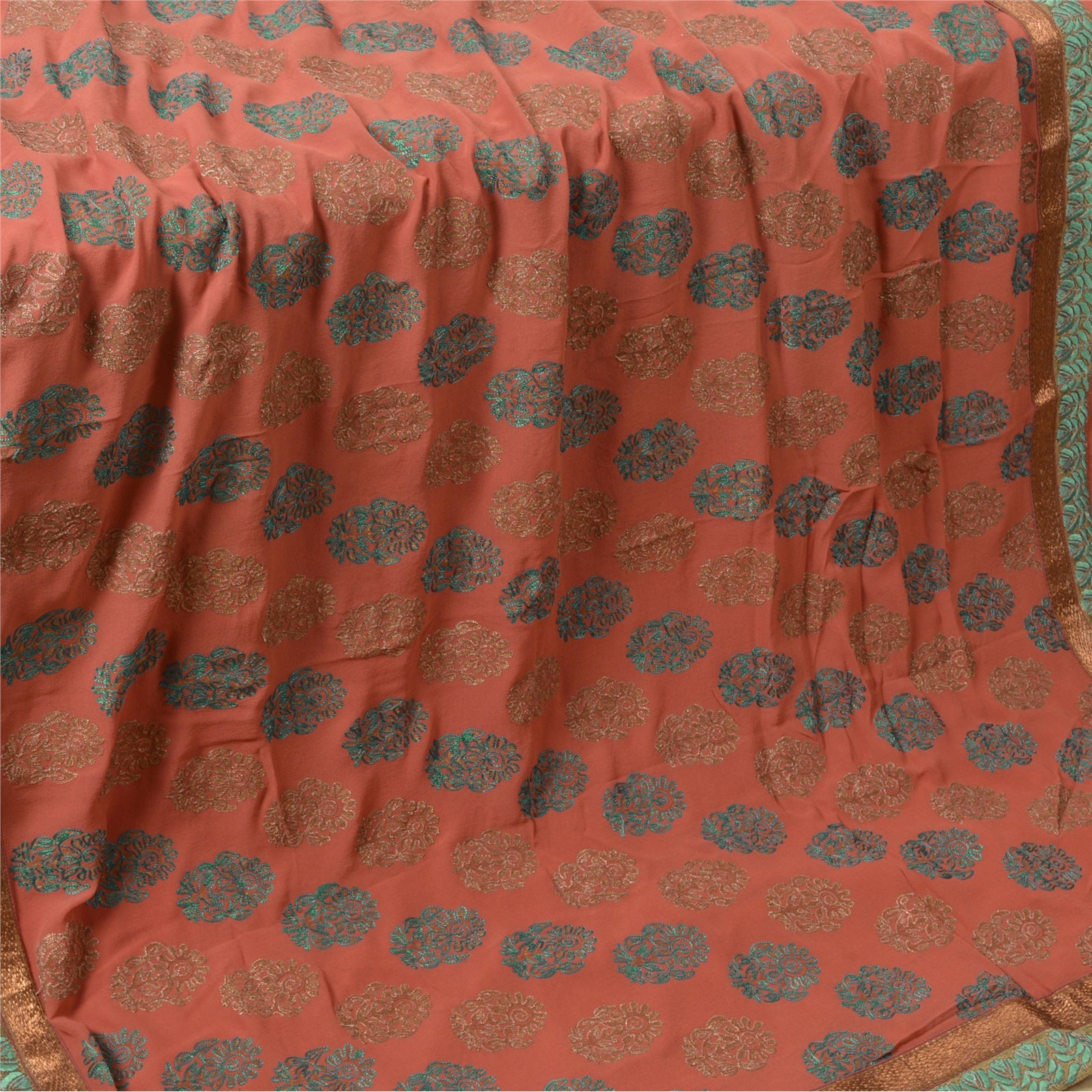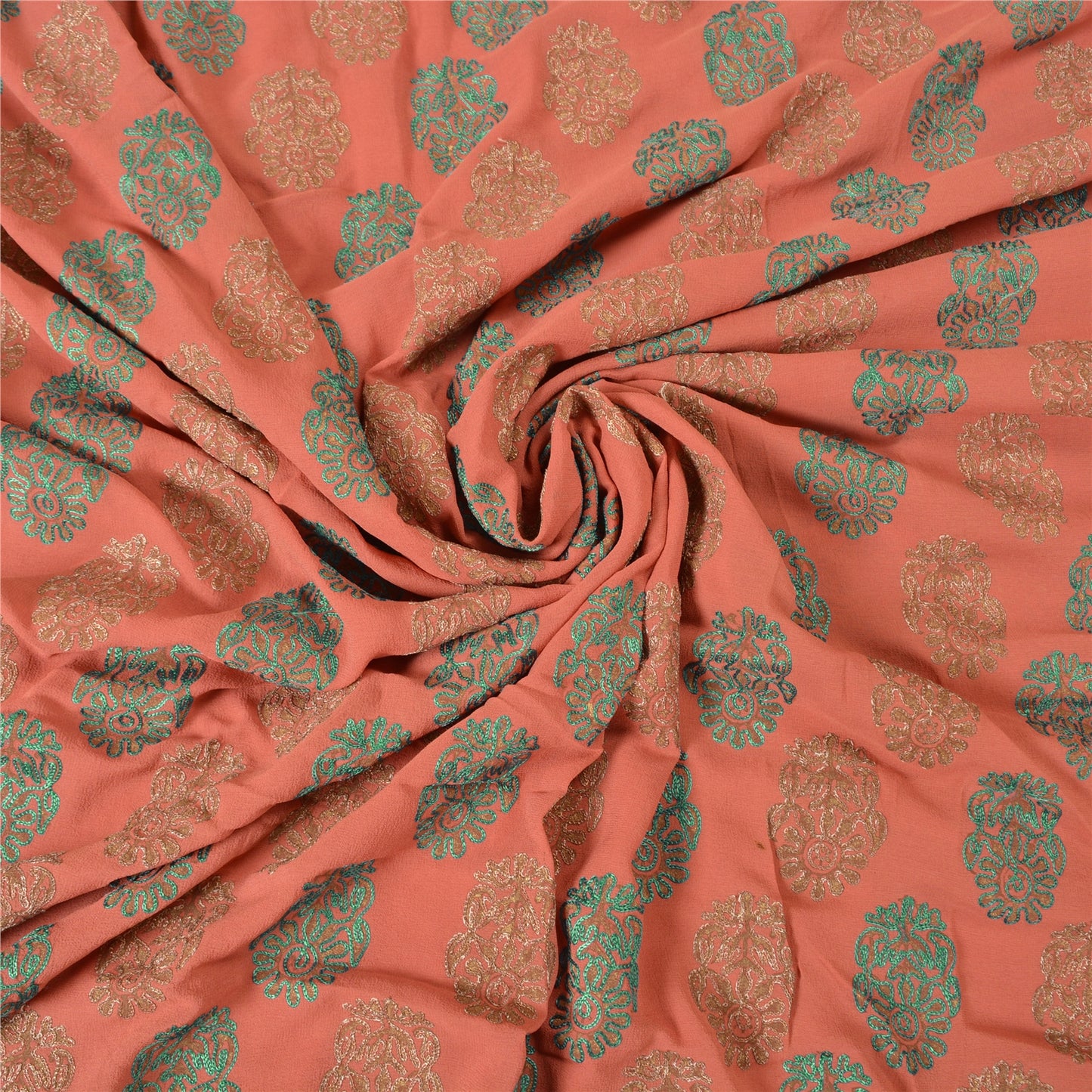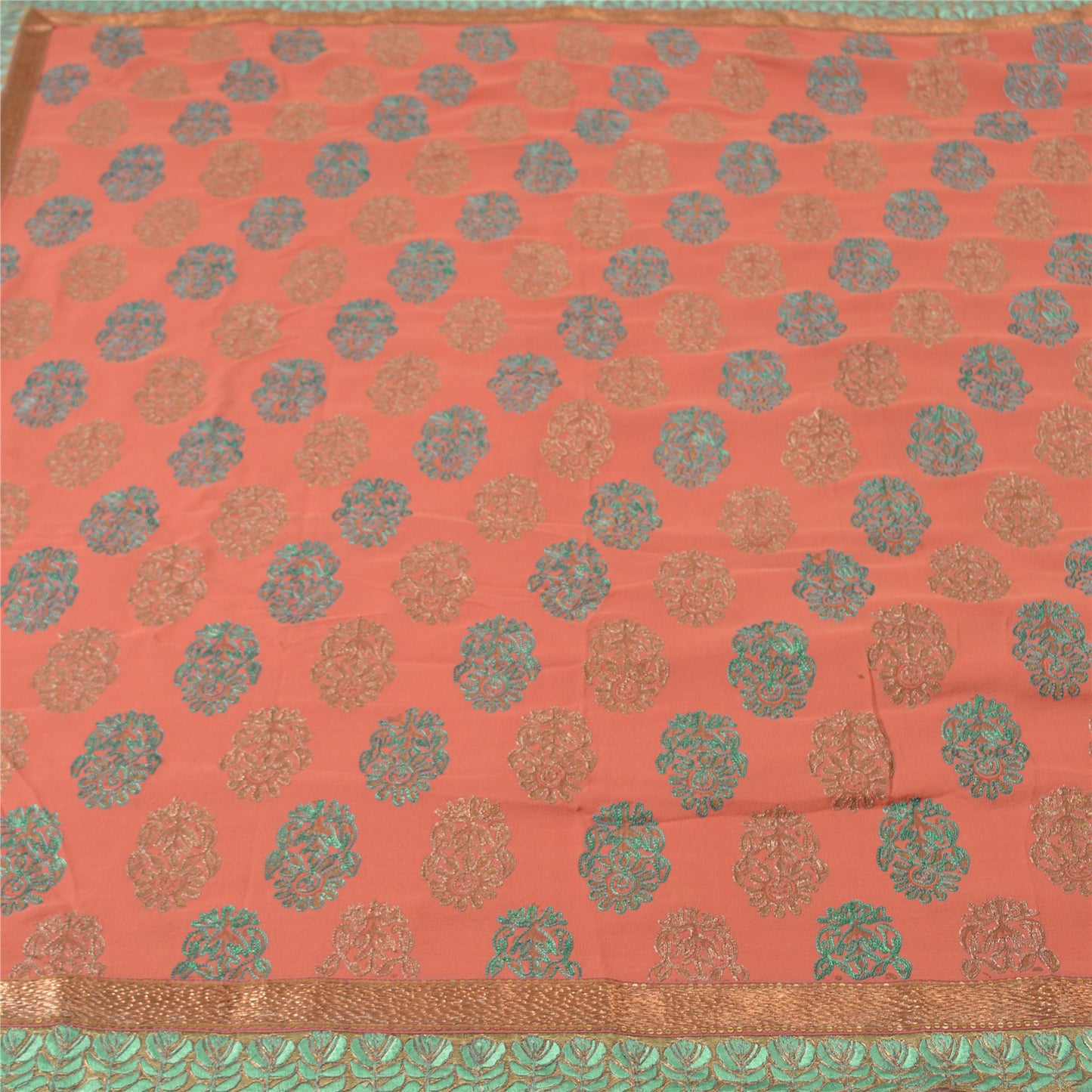 'THE ITEM COLOR OR SHADE MAY BE DARKER OR LIGHTER THAN THE PICTURE.' What a wonderful saree in pink in pure georgette Sustainable Fabric. Base Sustainable Fabric with floral design adorned with green and brown thread work, copper zari work is adding grace to the saree. You can see the gorgeous border work in green threadwork and golden sequins all around. WOW !! a great saree. 'International buyers please note: Import duties, taxes, and charges are not included in the item price or postage cost. These charges are the buyer's responsibility. Please check with your country's customs office to determine what these additional costs will be prior to bidding or buying. Buyer will pay custom duty/tax. It is calculated and charged differently by every country. As a seller I do not have any control over it. VAT or sales tax is calculated by the platform at the time of checkout. Customs charge is payable at the time of delivery.