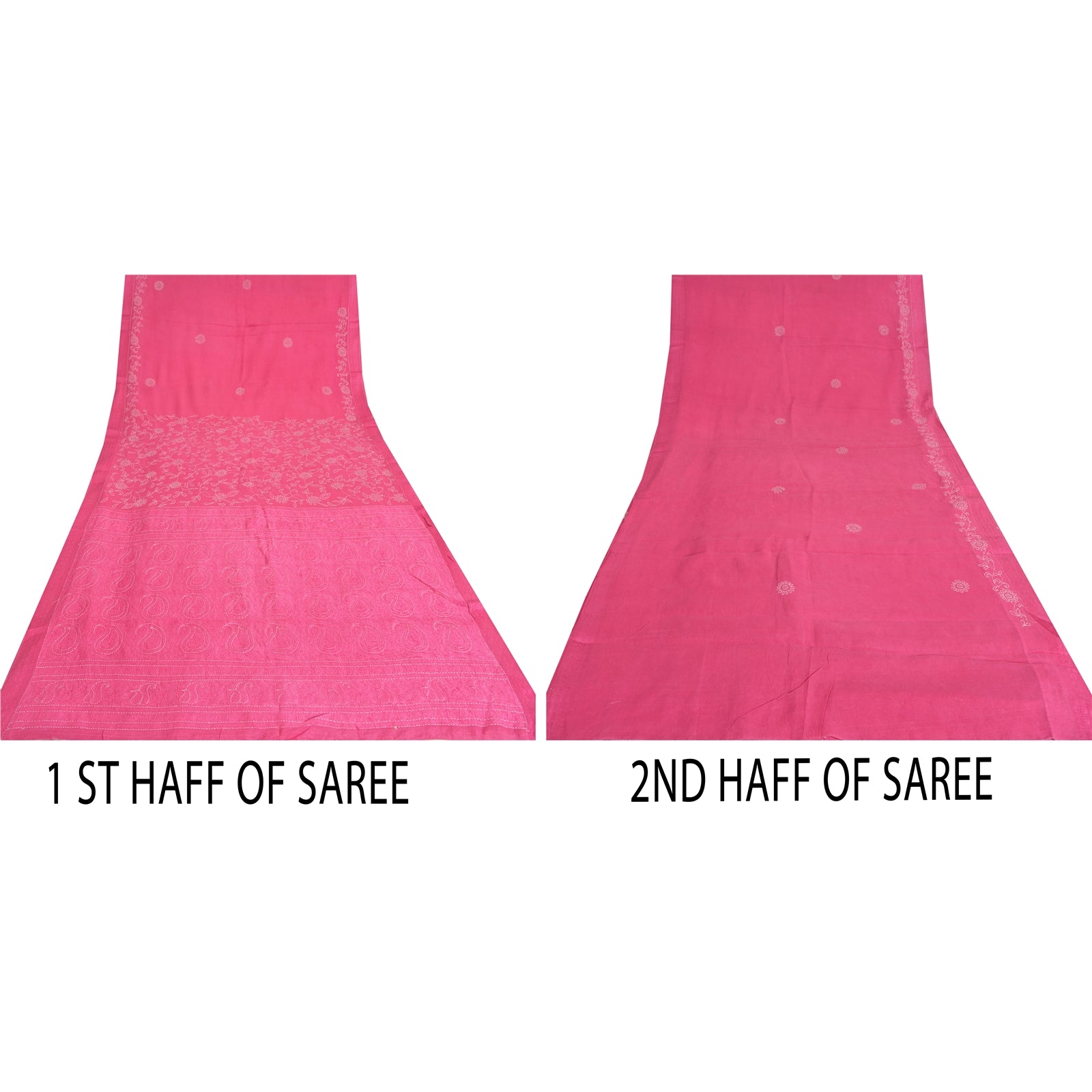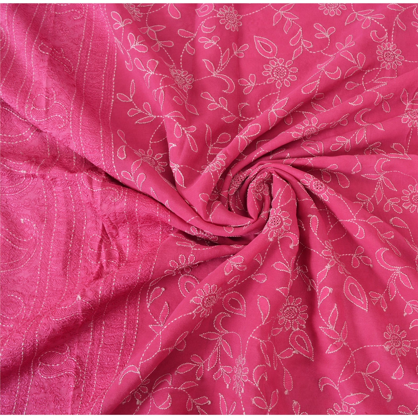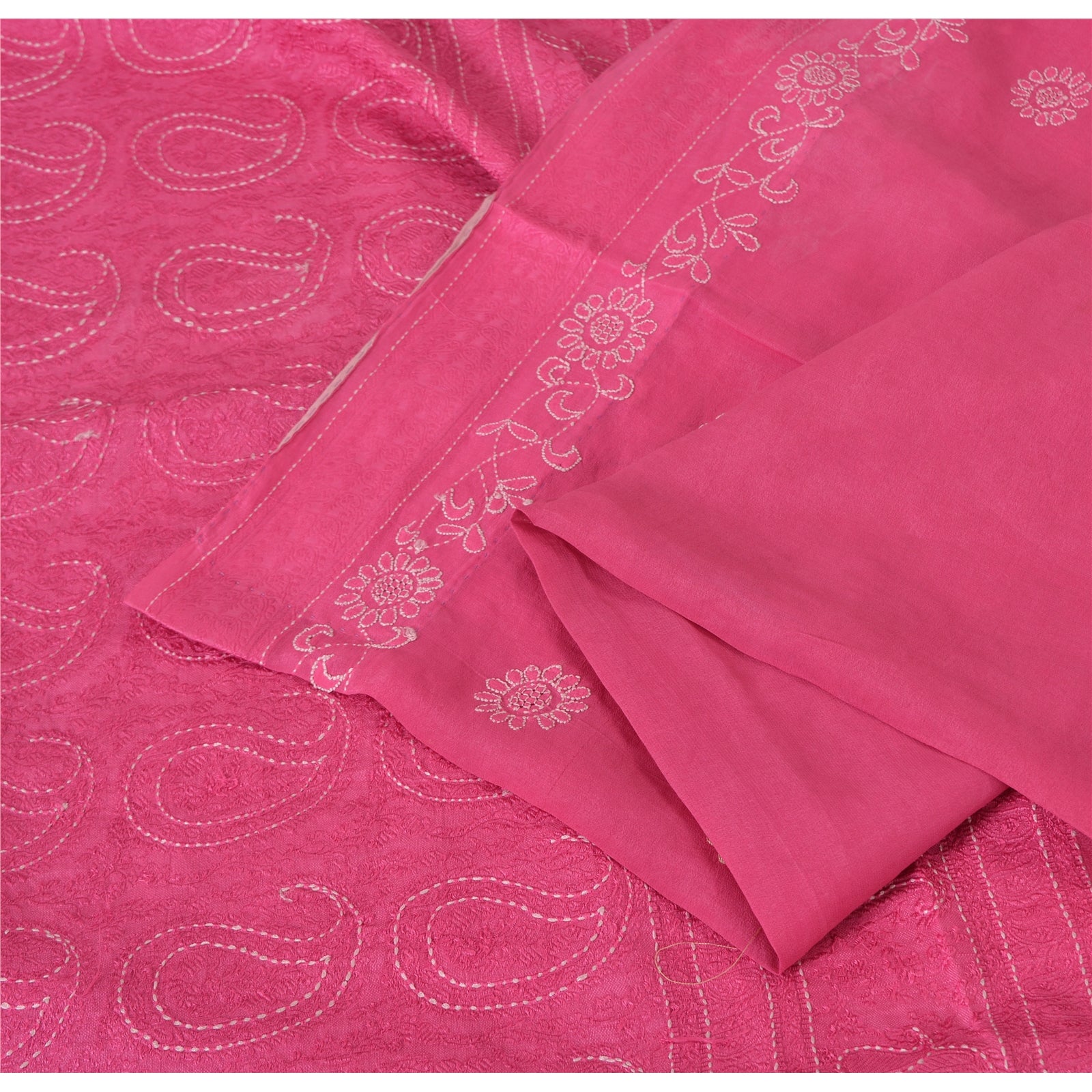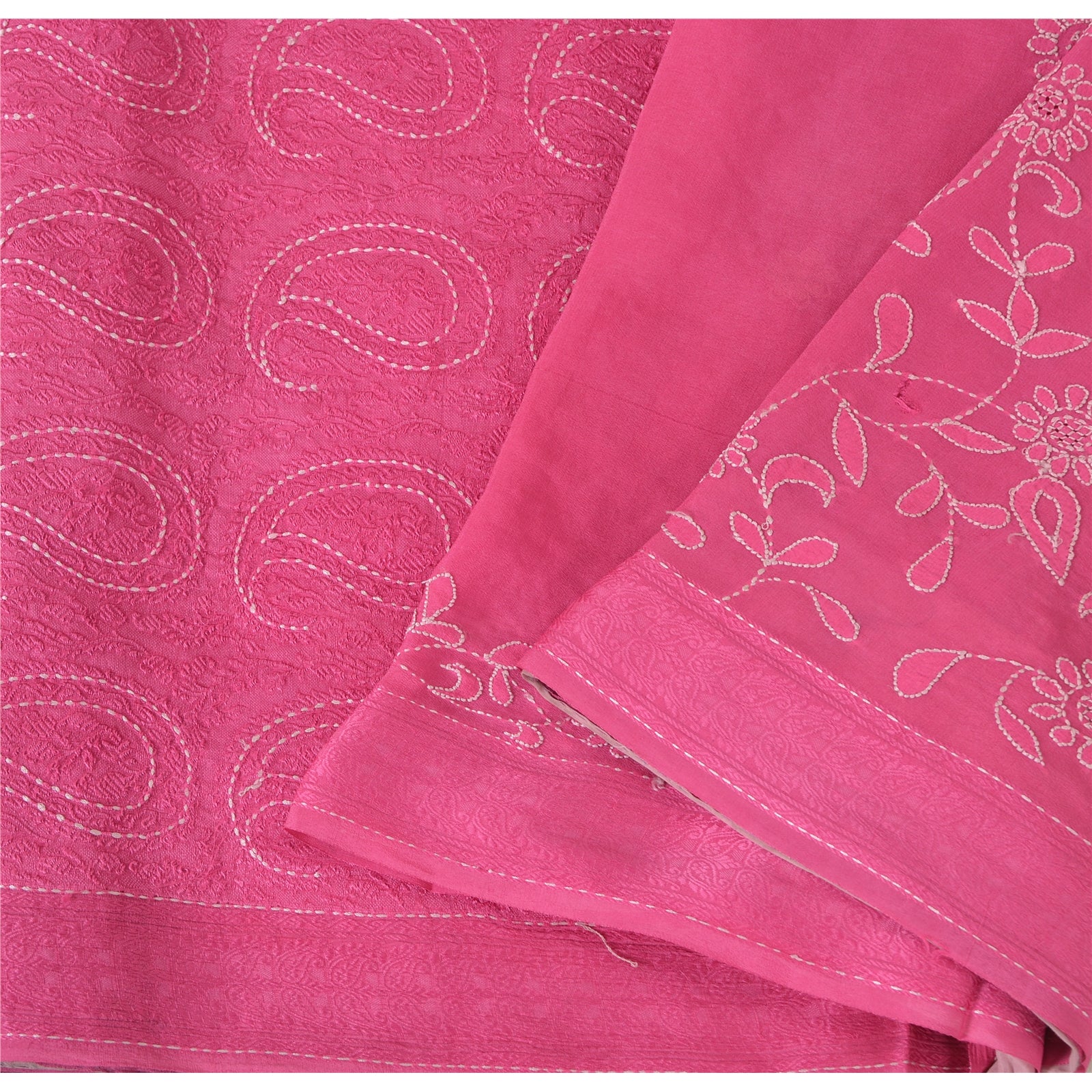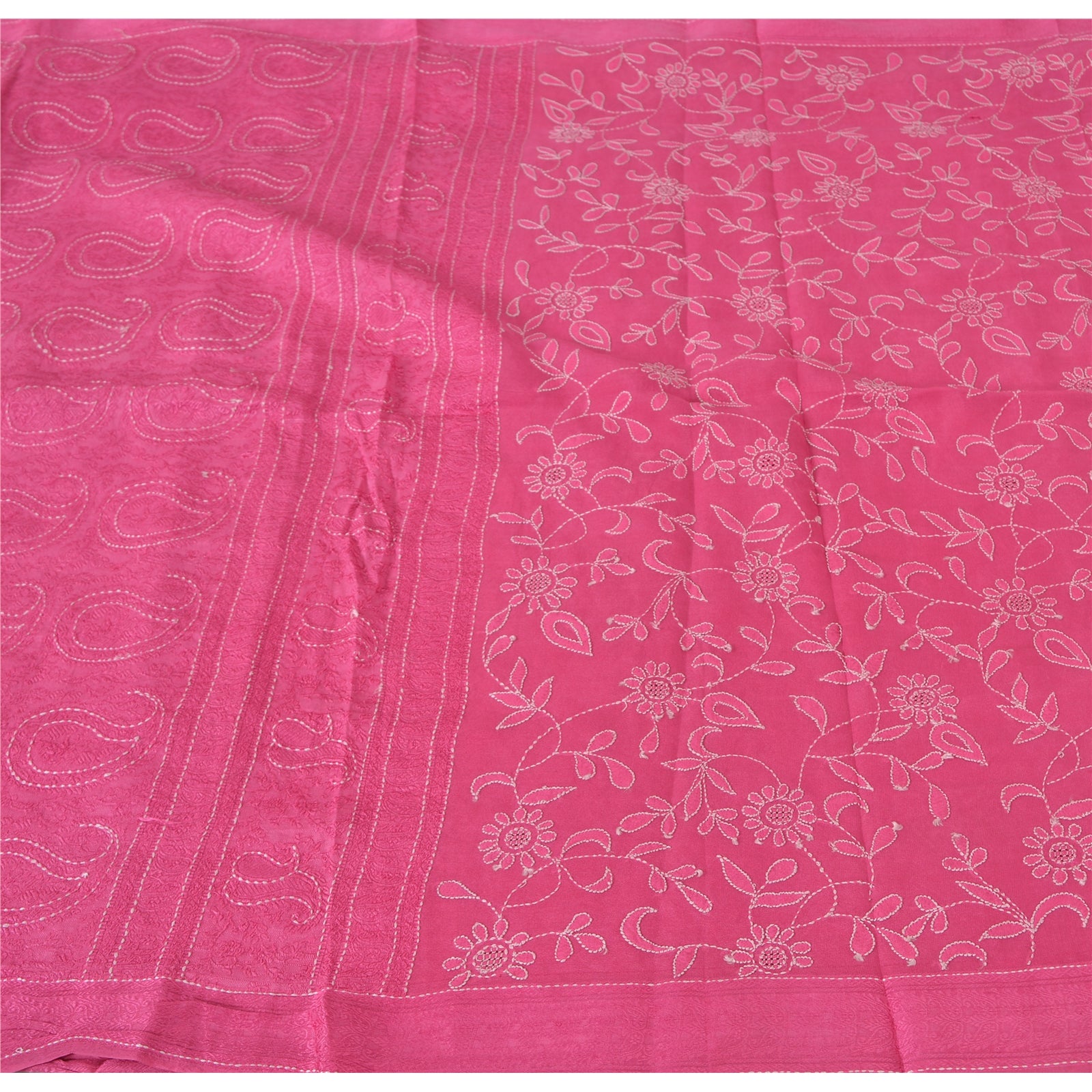 Sanskriti Vintage Pink Sarees Pure Georgette Silk Hand Embroidered Sari/Fabric