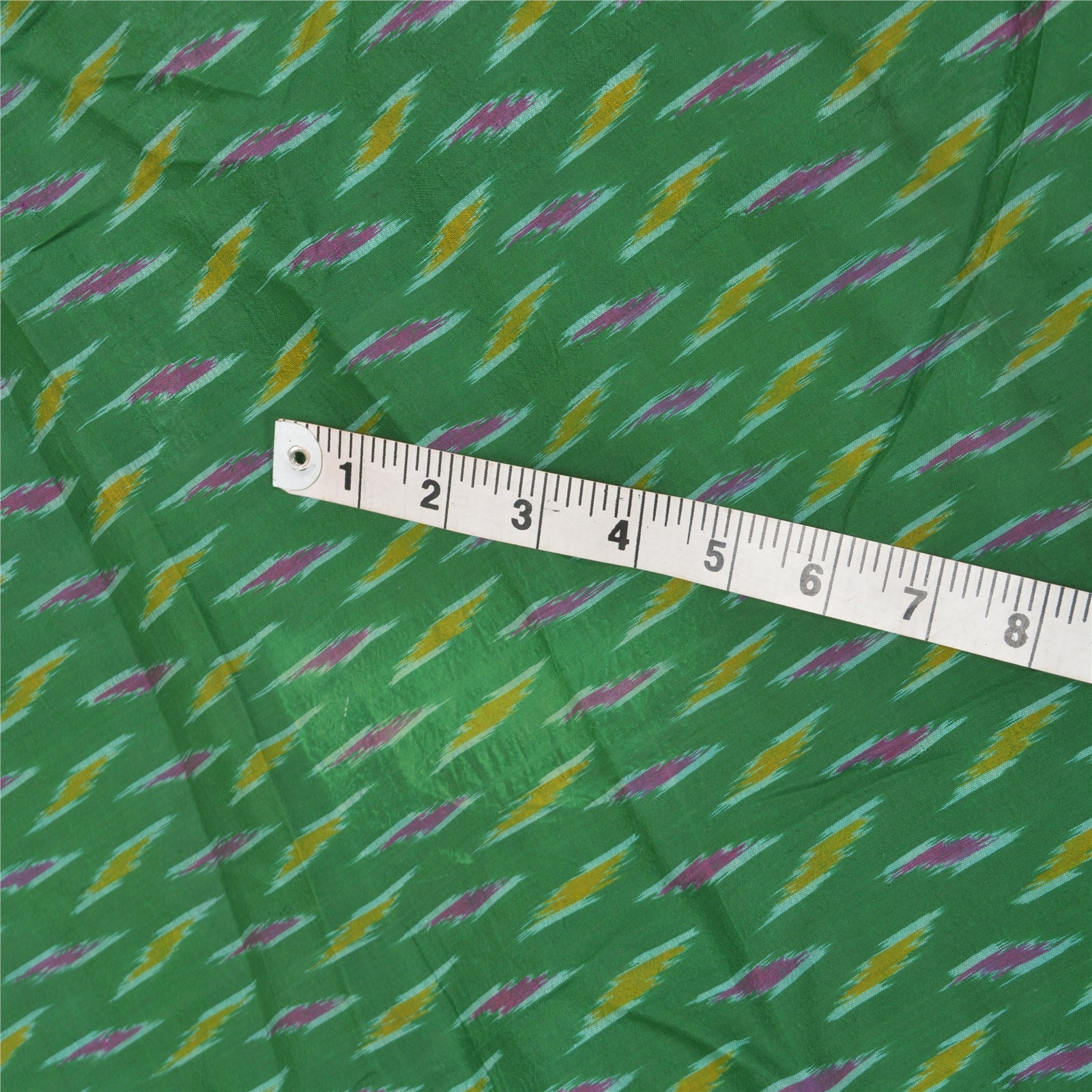Sanskriti Vintage Pochampally Sarees Green Hand Woven Ikat Pure Silk Sari Sustainable Fabric