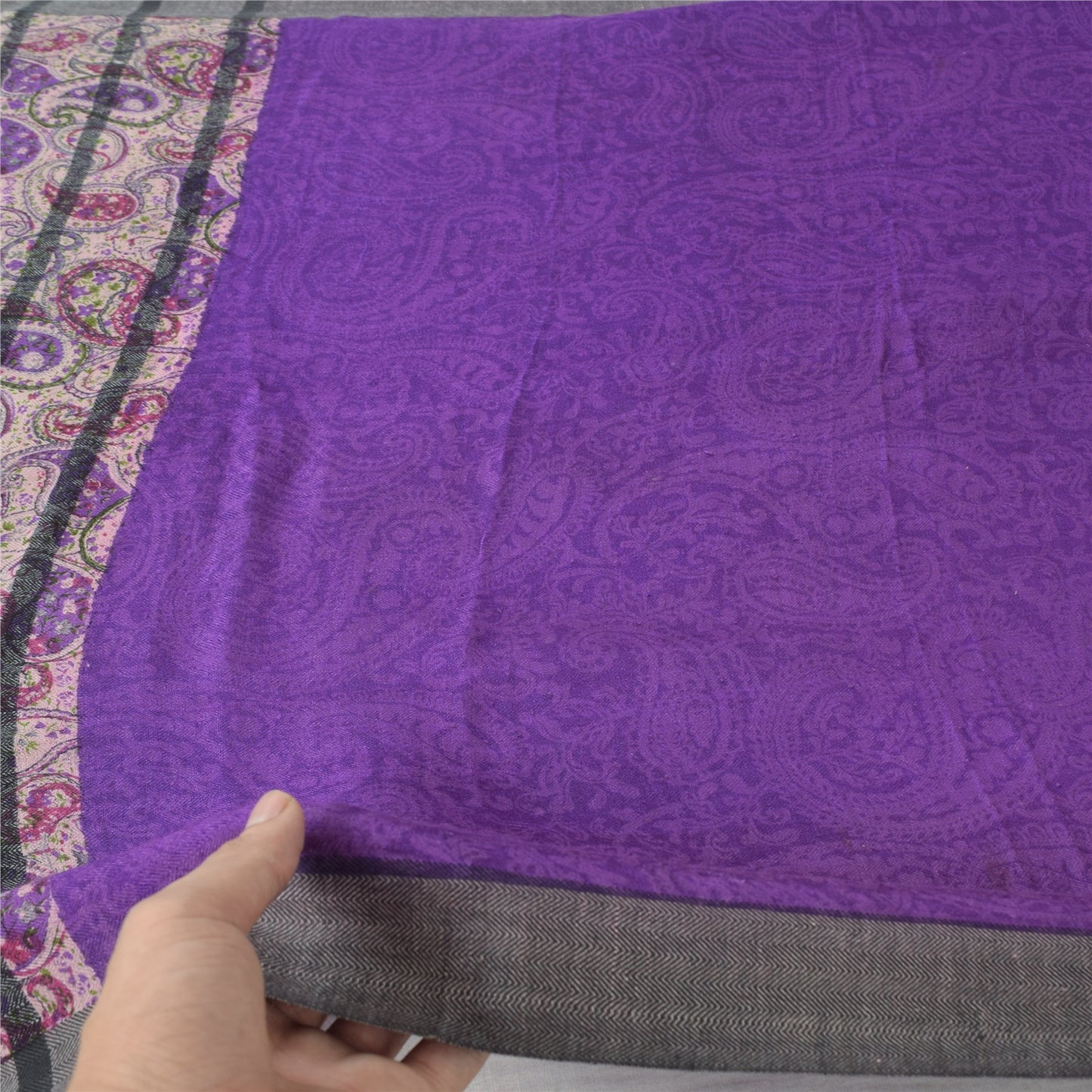 Sanskriti Vintage Purple Dupatta Long Stole Pure Woolen Printed Premium Scarves