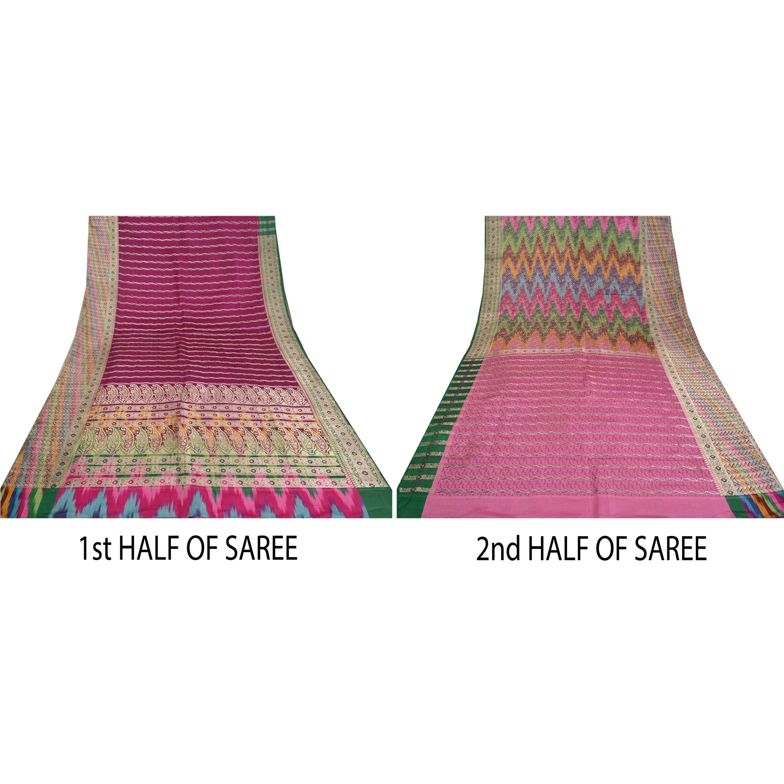 Sanskriti Vintage Purple Indian Sarees Pure Satin Silk Woven Brocade Sari Fabric