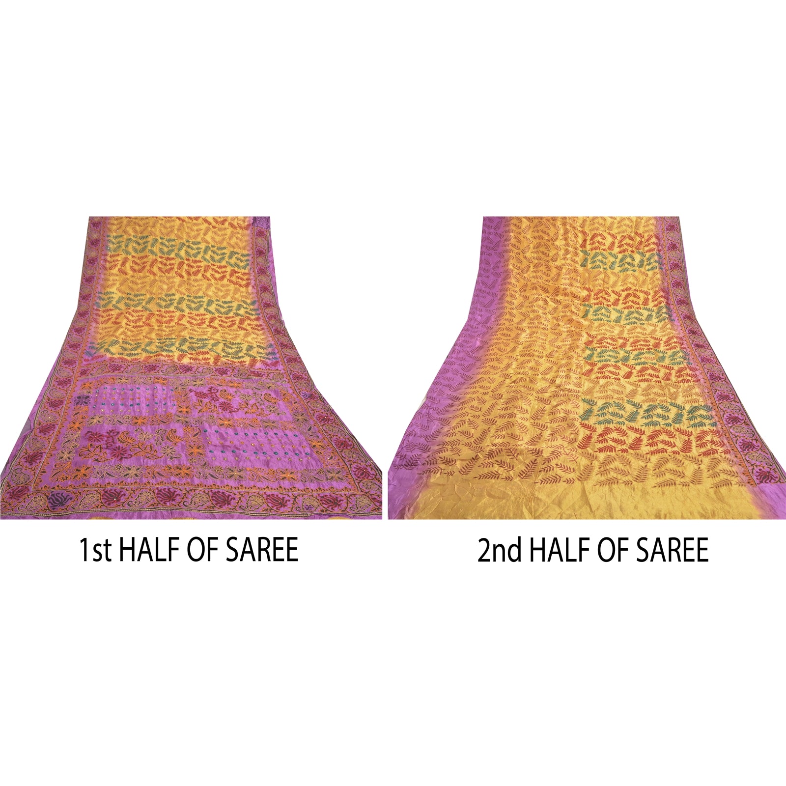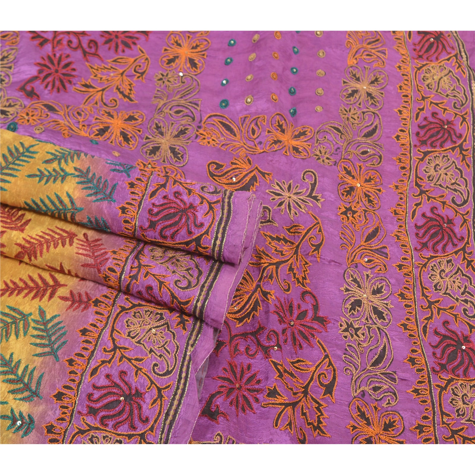 An Awesome Heavy Sari In 100% Pure Silk Purple & Golden Colored Hand Embridered Printed & Kantha Work Sustainable Fabric. Pallu & Border Features Printed & Embroidered Floral & Paisley Design Along With Cream Thread Work, Golden Sequins Work. Similar Thread Work With Printed Floral Design In Center Portion Of Sari. This heavy saree can be used for various crafting ideas too. Use it for dress designing, as a throw, as window dressing, upholstery, table linen and much more. Let your creative juices flow. A One Of A Kind Unique Saree Must In Your Collection. KANTHA:Kantha is a hand embroidery style traditionally practiced by rural womenfolk in state of West Bengal. Kantha embroidery is recognized by running stitches. The usual Kantha stitch is done in straight or horizontal lines but artistic Kantha styles emerged over time where floral or religious symbols were also depicted in Kantha embroidery. Kantha is mostly practiced on pure silk, Crepe or Cotton Saris. A single Kantha sari can take as many as 4-5 days of work for 5-6 women of a house working together. International buyers please note: Import duties, taxes, and charges are not included in the item price or postage cost. These charges are the buyer's responsibility. Please check with your country's customs office to determine what these additional costs will be prior to bidding or buying. Buyer will pay custom duty/tax. It is calculated and charged differently by every country. As a seller I do not have any control over it.VAT or sales tax is calculated by the platform at the time of checkout. Customs charge is payable at the time of delivery.