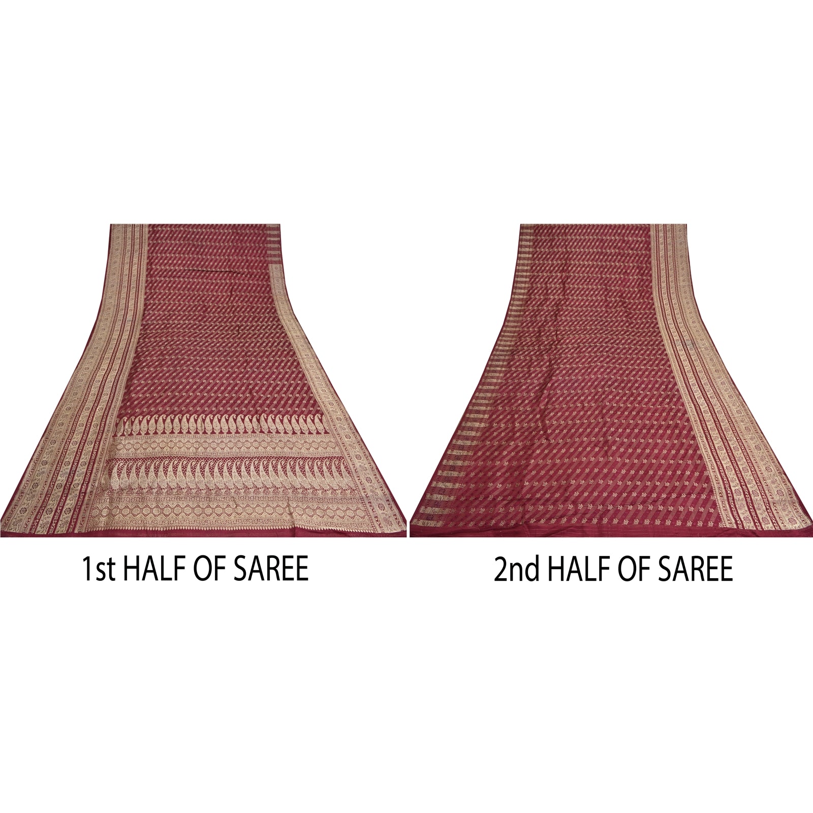 Sanskriti Vintage Purple Sarees Pure Satin Woven Brocade/Banarasi Sari Sustainable Fabric