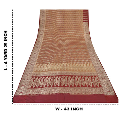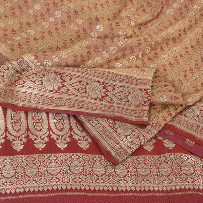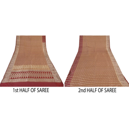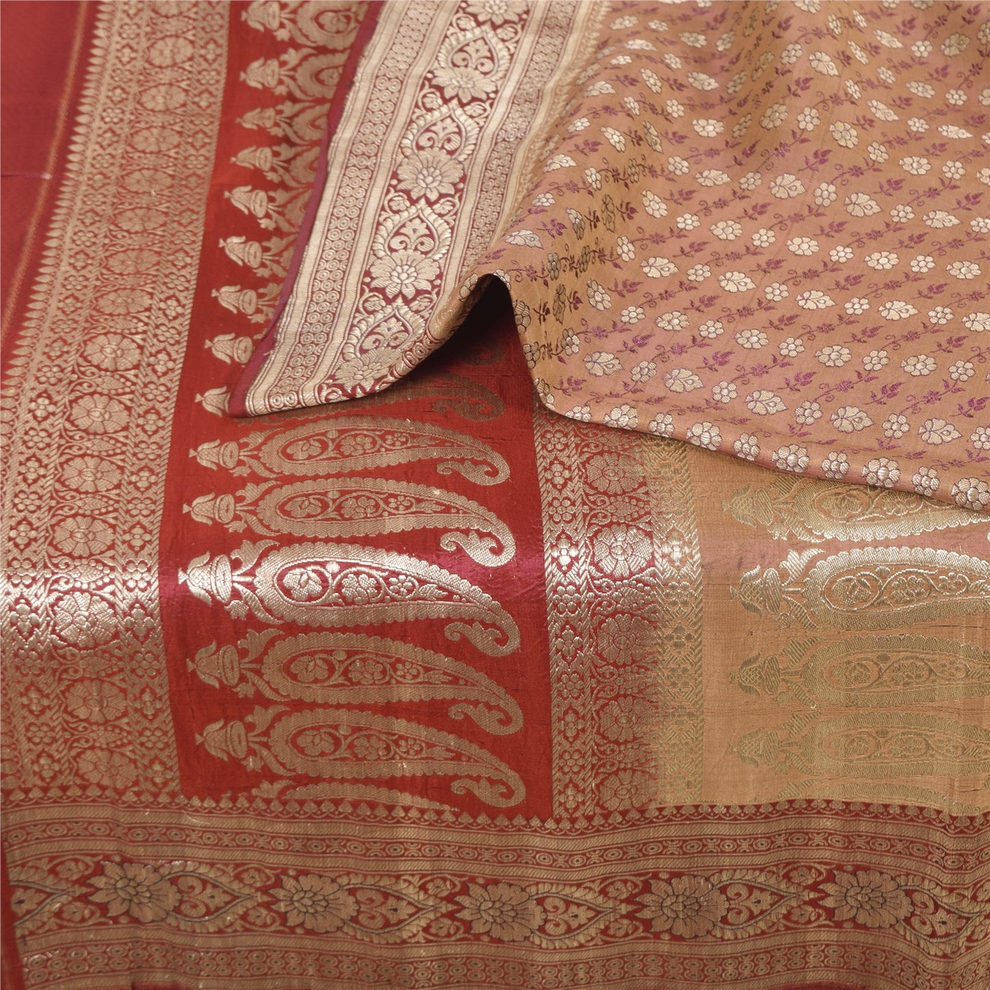 Sanskriti Vintage Red/Cream Sarees Pure Silk Brocade/Banarasi Woven Sari Sustainable Fabric
