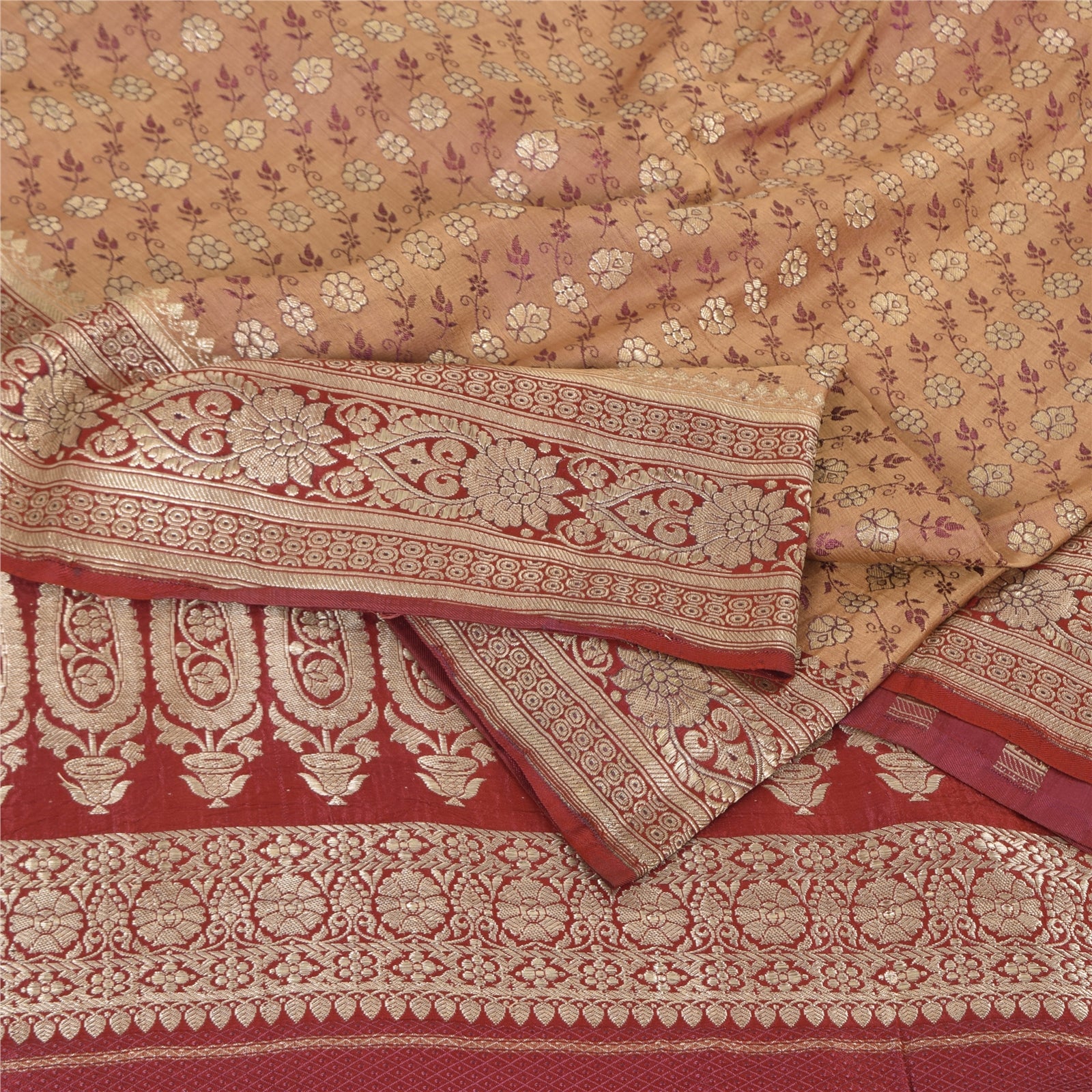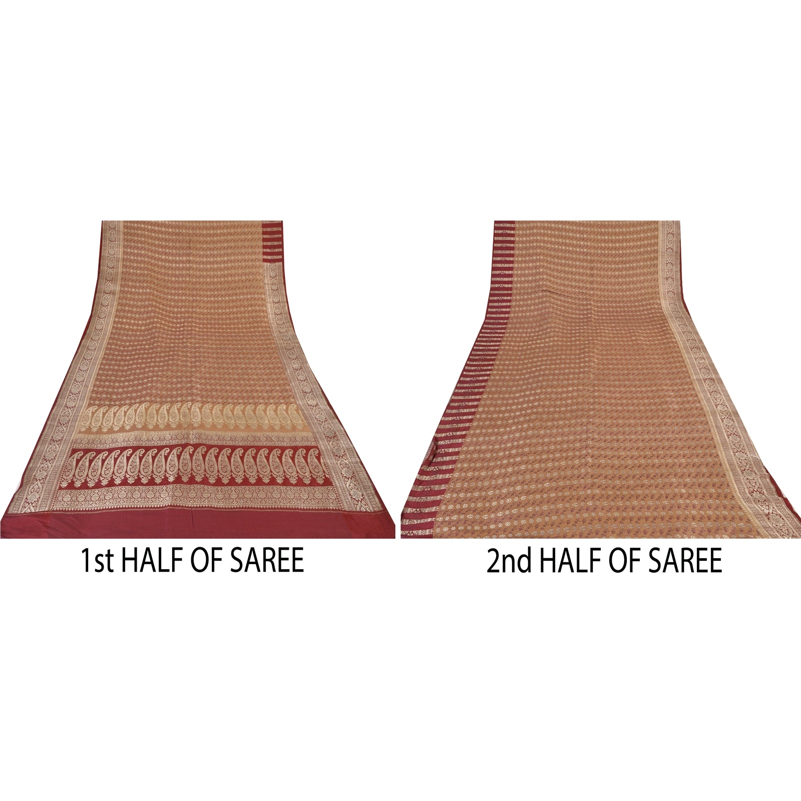 THE ITEM COLOR OR SHADE MAY BE DARKER OR LIGHTER THAN THE PICTURE.' An Awesome Sari In 100% Pure Silk Red/Cream Colored Brocade Banarasi Woven Sari/Sustainable Fabric. Pallu & Border Features floral design embellished with metallic golden zari work & brown & cream color thread work. You Can See Center Portion Of The Sari Has Similar Work With Floral Design This unique vintage saree can be used for various crafting ideas for example design a dress, use it as a throw, as window dressing, upholstery, table linen and much more. Let your creative juices flow and use this decorated Sustainable Fabric in multiple fashion Shipping note: International buyers please note: Import duties, taxes, and charges are not included in the item price or postage cost. These charges are the buyer's responsibility. Please check with your country's customs office to determine what these additional costs will be prior to bidding or buying. Buyer will pay custom duty/tax. It is calculated and charged differently by every country. As a seller I do not have any control over it. VAT or sales tax is calculated by the platform at the time of checkout. Customs charge is payable at the time of delivery. SKU: BHS-2692