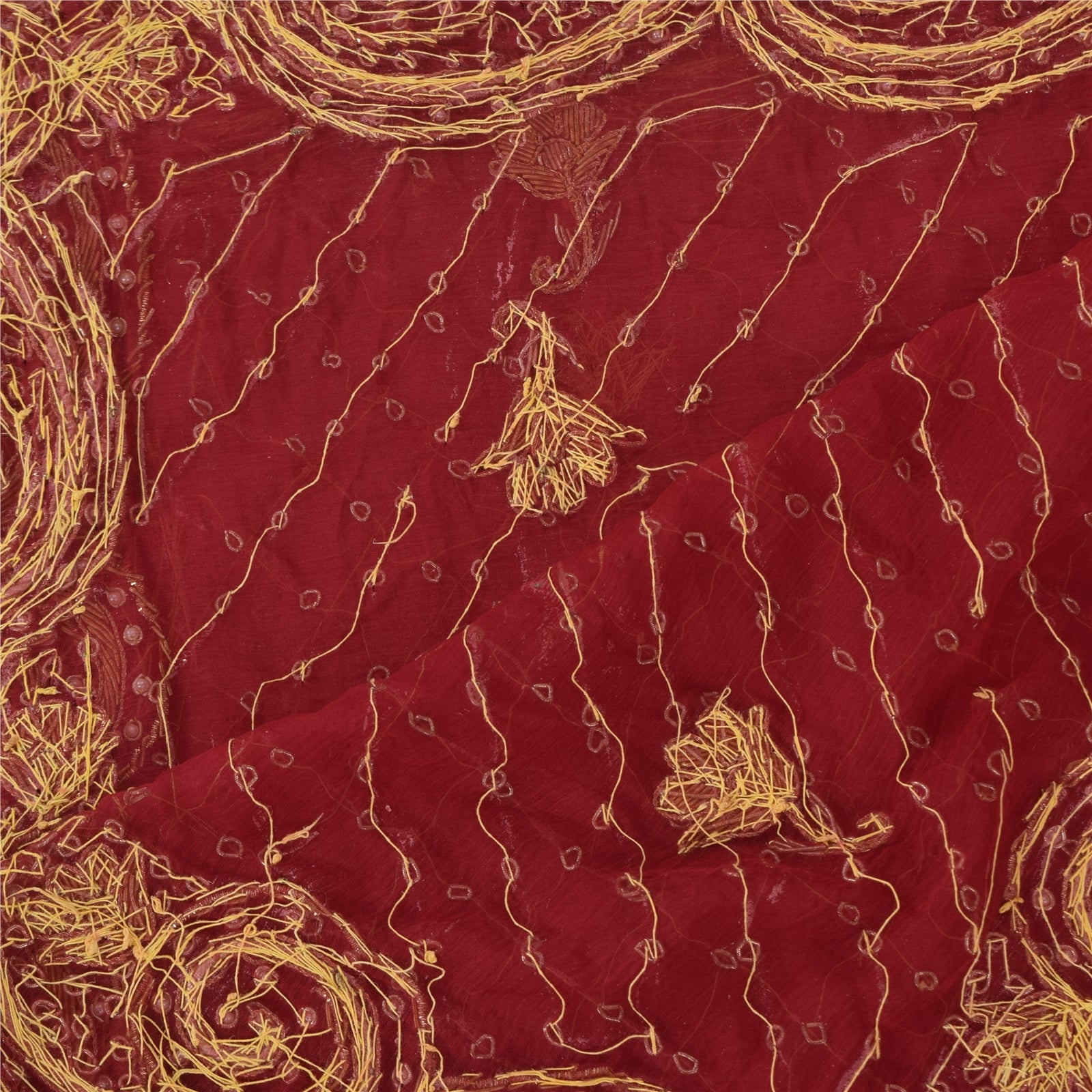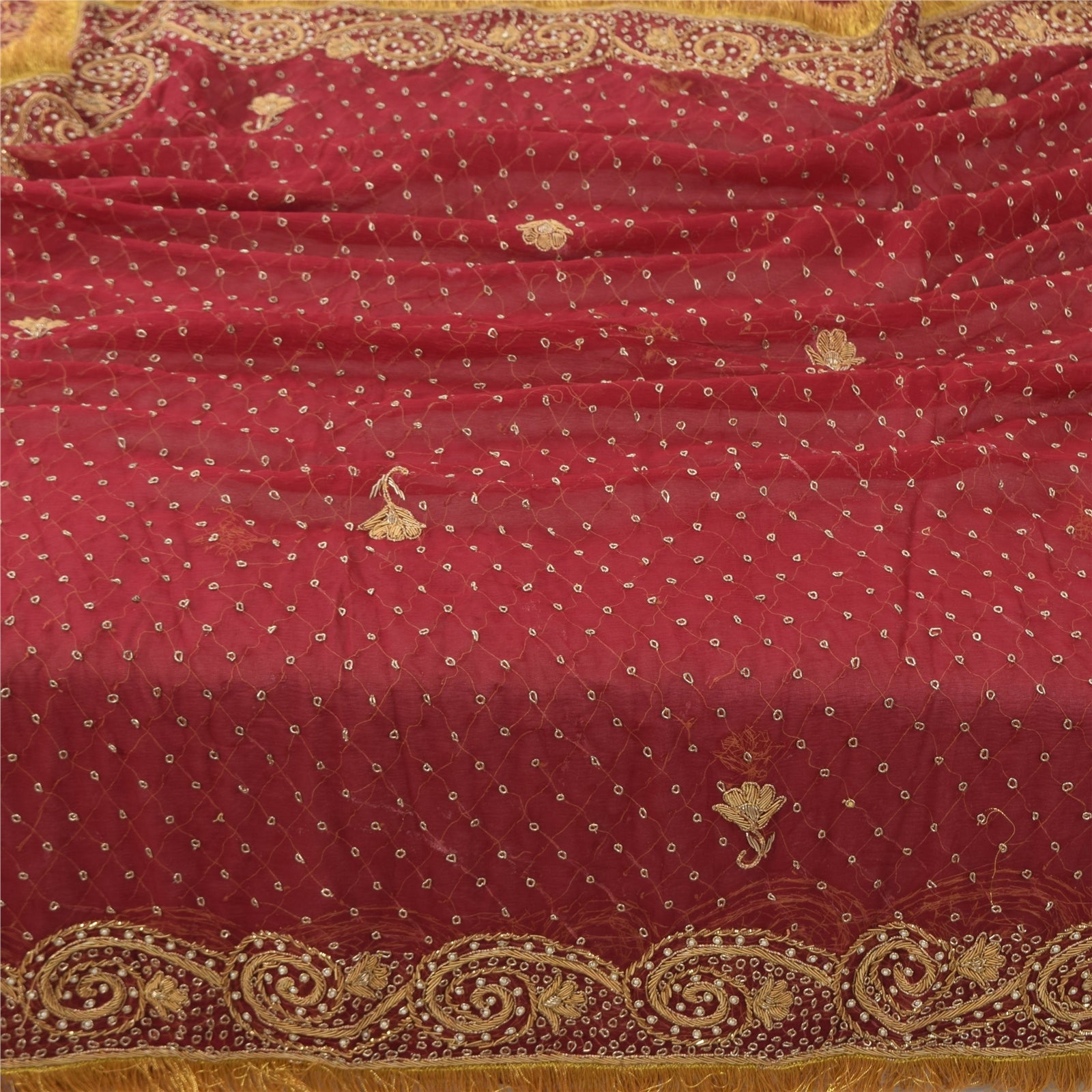 'THE ITEM COLOR OR SHADE MAY BE DARKER OR LIGHTER THAN THE PICTURE.' Beautiful red colored pure chiffon silk hand embroidered long scarf/dupatta. Center portion of the dupatta has floral design with zardozi work. Border features has floral design embellished with golden zardozi/dabka work, pearl beads work & golden dori work is really enhancing beauty of the dupatta/stole. Dupatta has golden gotal lace on both ends of borders. This dupatta/stole can be used for various crafting ideas too. Use it for dress designing, as a throw, as window dressing, upholstery, table linen and much more. Let your creative juices flow. Shipping note: International buyers please note: Import duties, taxes, and charges are not included in the item price or postage cost. These charges are the buyer's responsibility. Please check with your country's customs office to determine what these additional costs will be prior to bidding or buying. Buyer will pay custom duty/tax. It is calculated and charged differently by every country. As a seller I do not have any control over it. VAT or sales tax is calculated by the platform at the time of checkout. Customs charge is payable at the time of delivery.' SKU: HD-7724