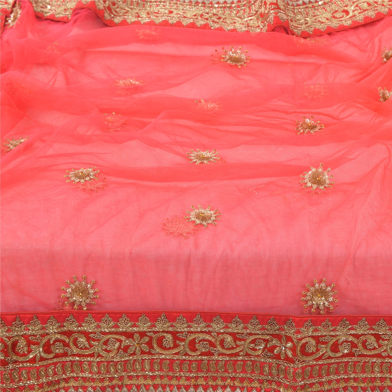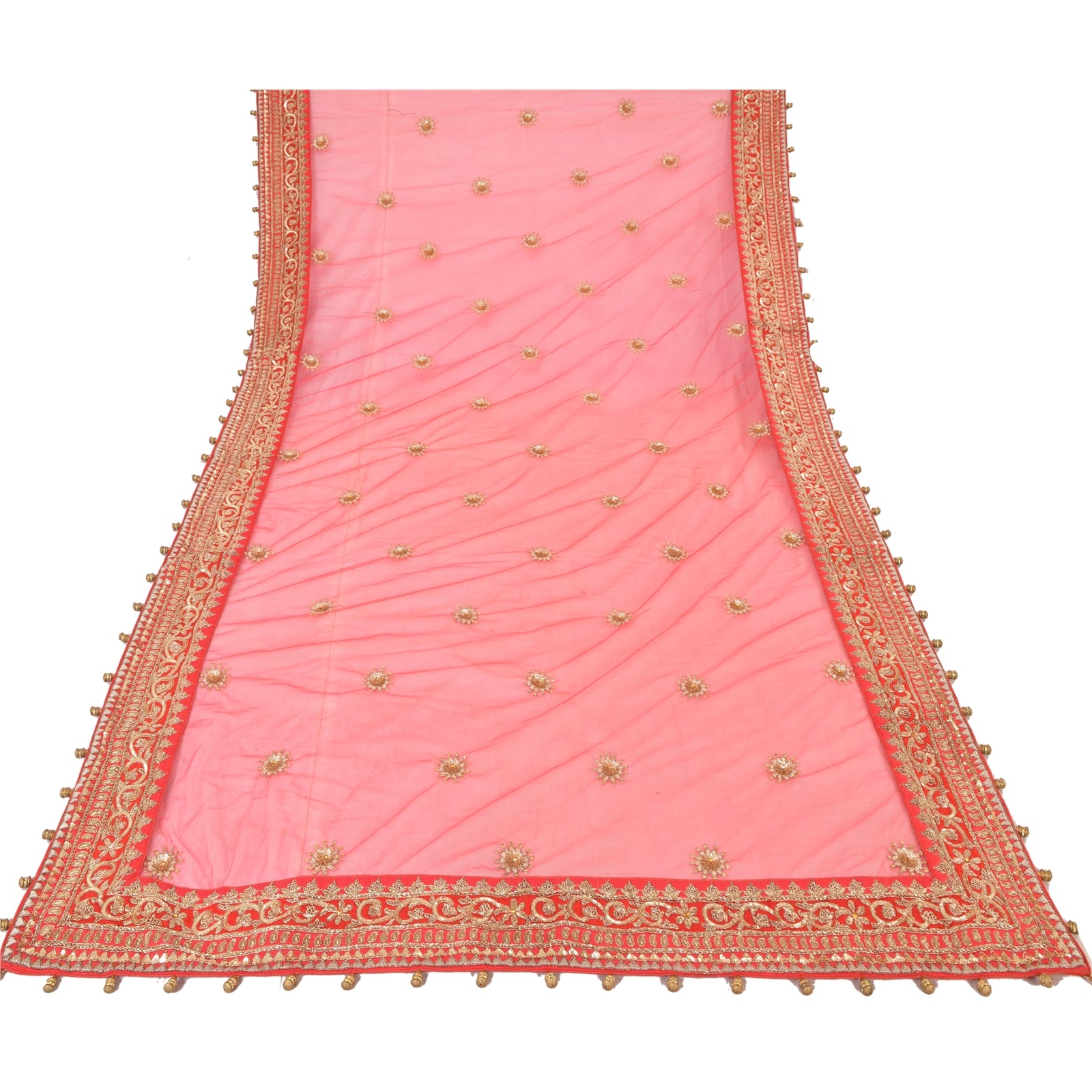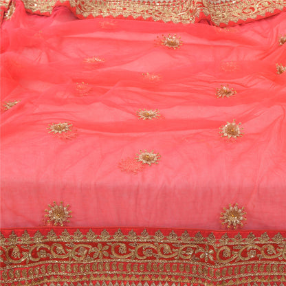 Sanskriti Vintage Red Dupatta Long Stole Pure Silk Hand Beaded Premium Wrap Veil