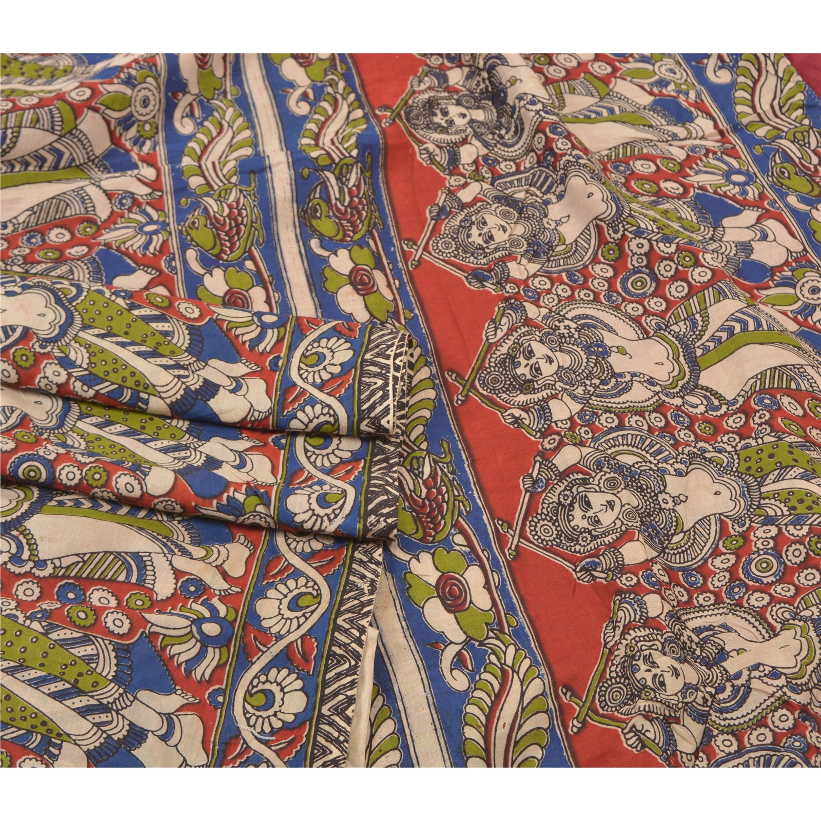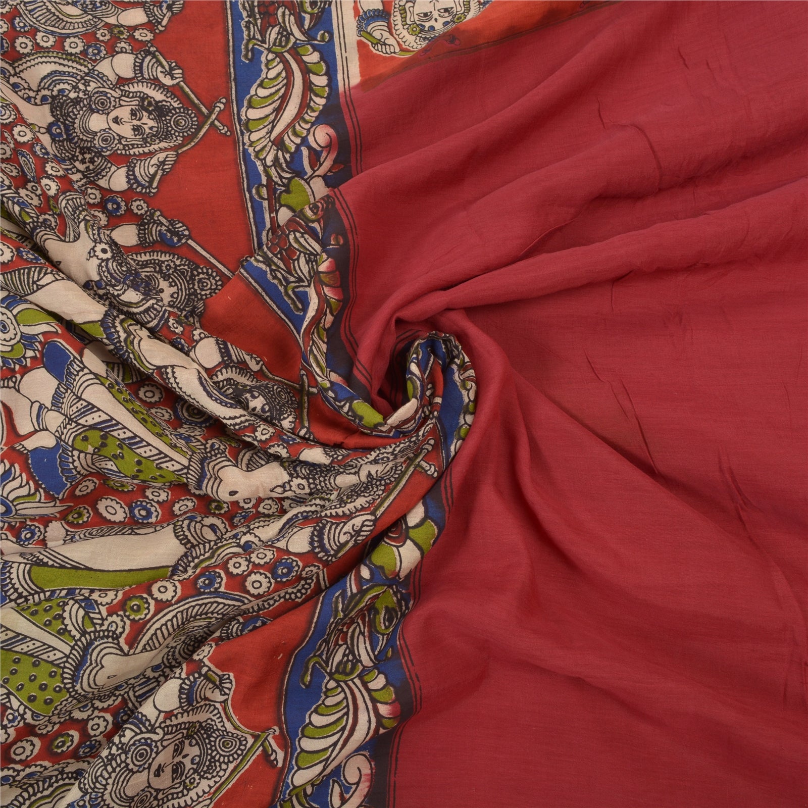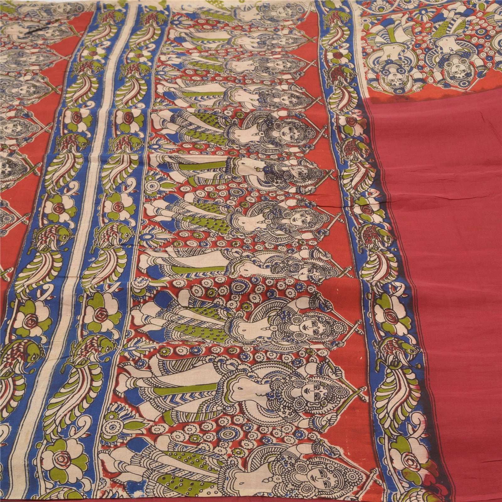 Sanskriti Vintage Red Heavy Sarees 100% Pure Cotton Pattachitra Sari Sustainable Fabric