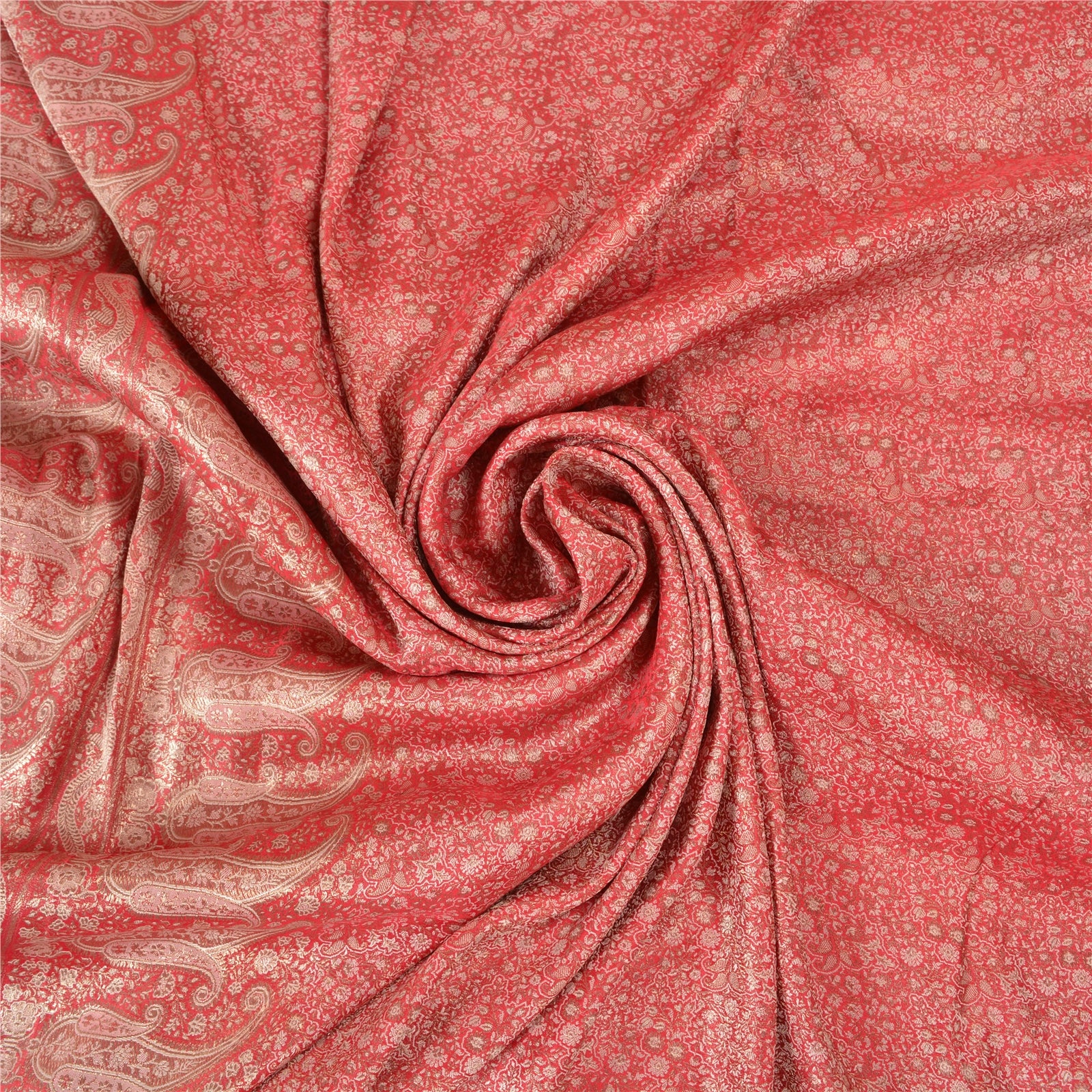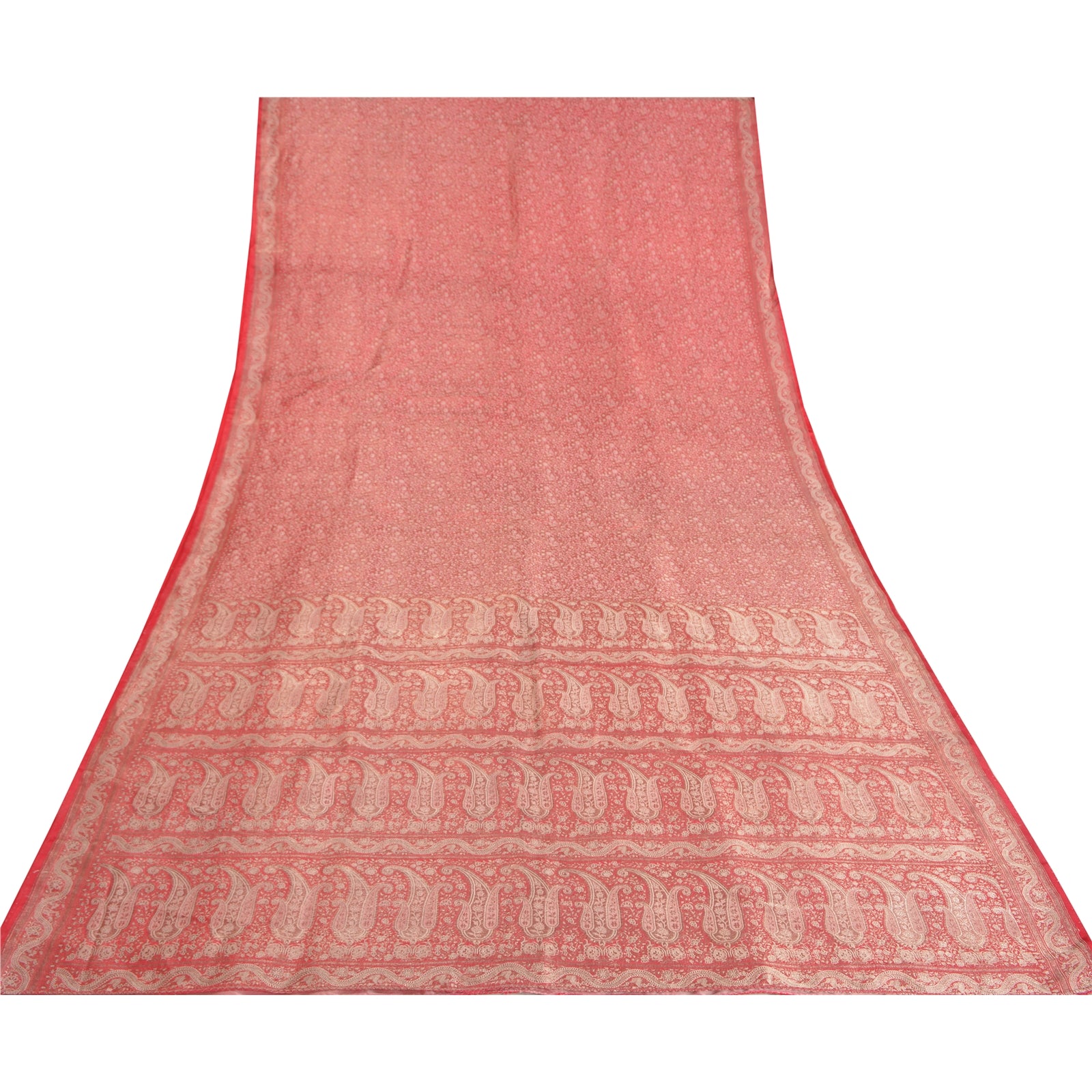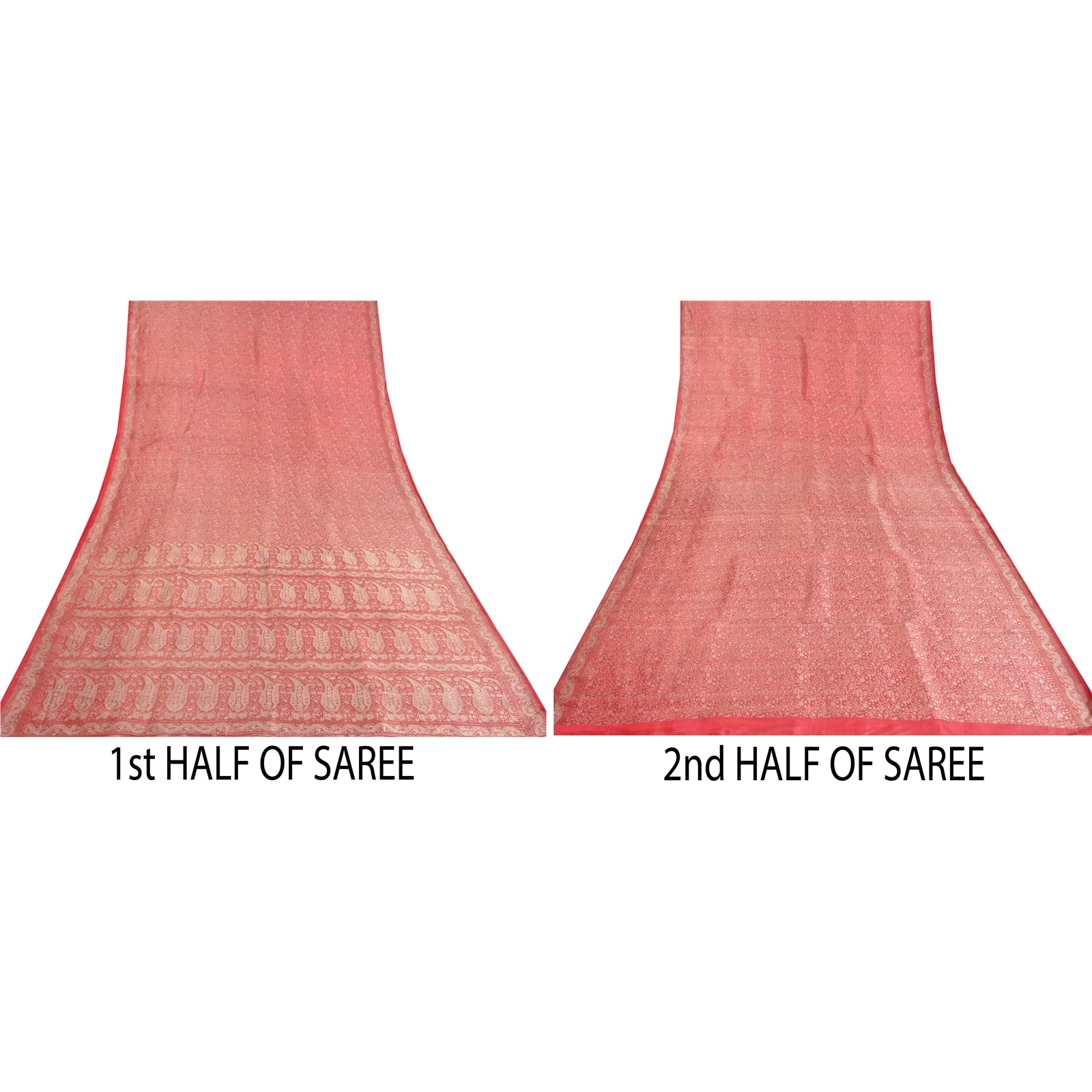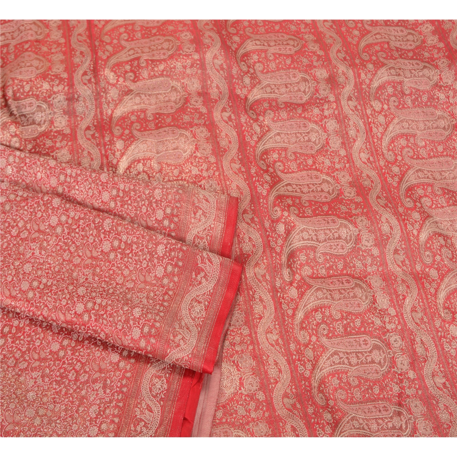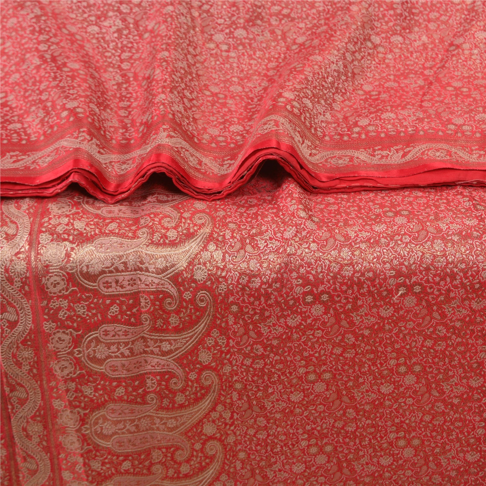 Sanskriti Vintage Red Heavy Sarees Pure Satin Silk Woven Brocade Sari Sustainable Fabric