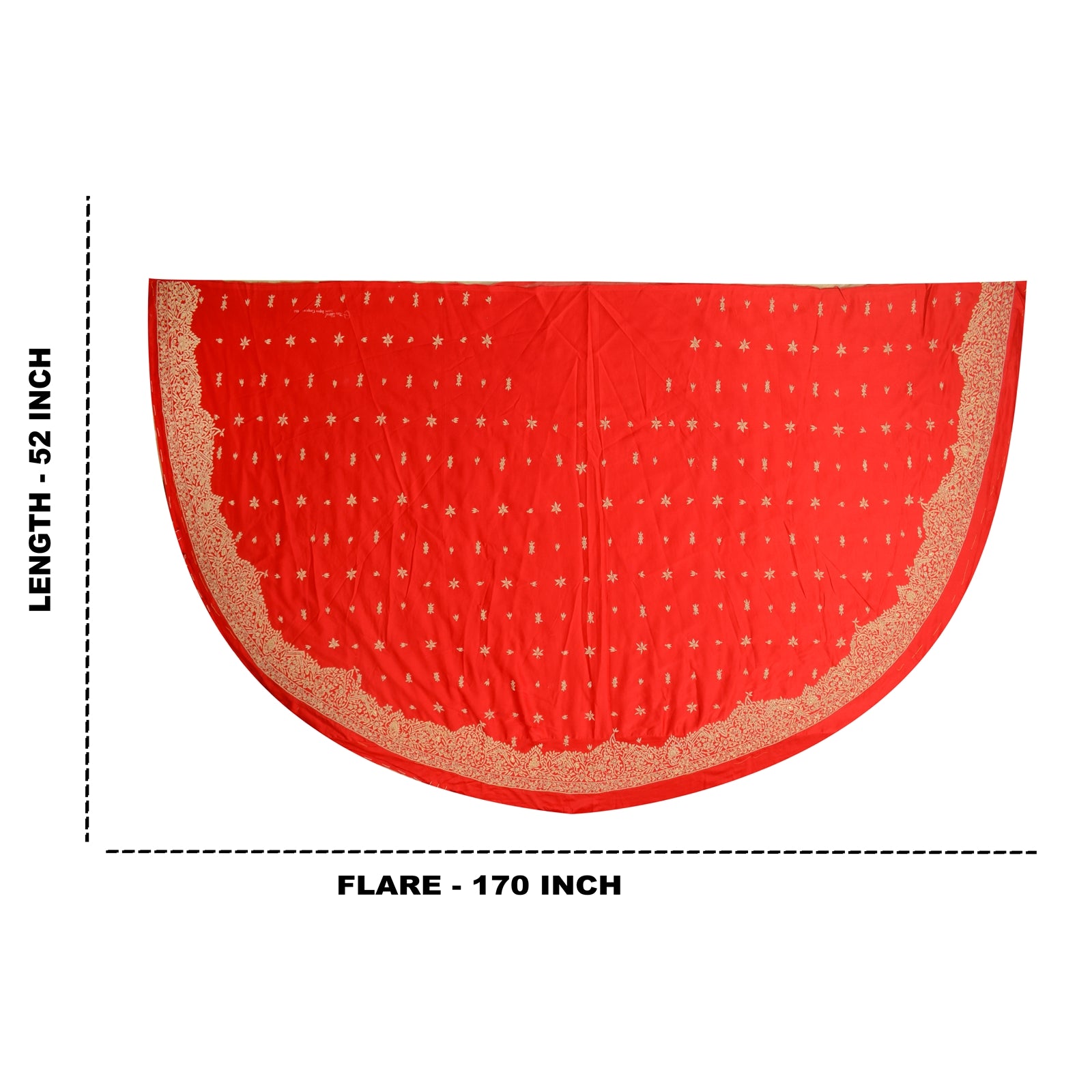Awesome red colored vintage artificial silk (Not Pure) hand embroidered unstitched lehenga. Bottom of lehenga features floral design embellished with pure metallic golden zardozi & glass beaded work. Similar work on allover lehenga. Length-52, Flare-170 inches Flaunt this heavy lehenga with ethnic tops, blouses or kurtis at parties, weddings and other occasions. A one of a kind item hard to find. Awesome craftsmanship. THE ITEM COLOR OR SHADE MAY BE DARKER OR LIGHTER THAN THE PICTURE.' International buyers please note: Import duties, taxes, and charges are not included in the item price or postage cost. Buyer will pay custom duty/tax,VAT, and any applicable charges at the time of delivery. L-823