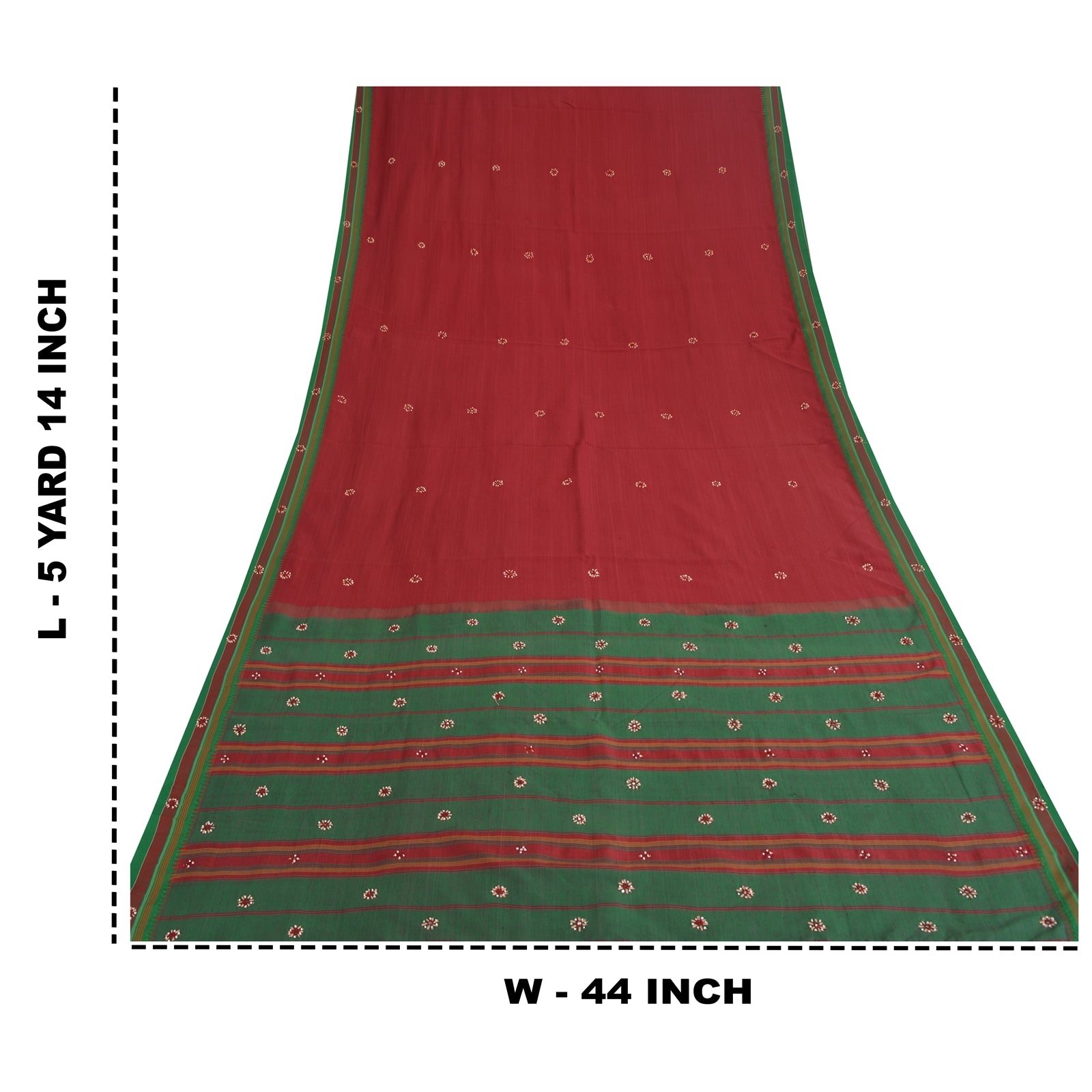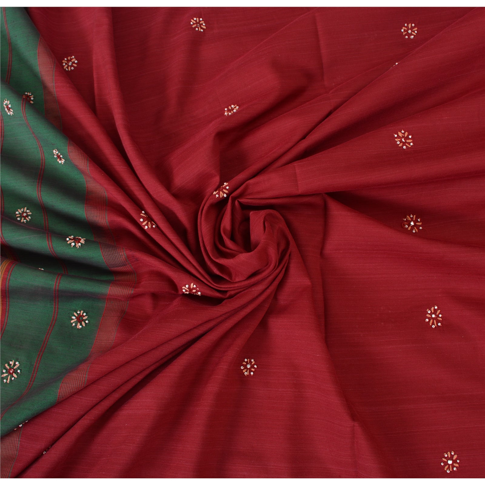 'THE ITEM COLOR OR SHADE MAY BE DARKER OR LIGHTER THAN THE PICTURE.' Beautiful dark red colored hand embroidered woven pure cotton fabric. Pallu & Border features floral design embellished with red, maroon thread work, white beads work. There are floral motifs with similar work in center part of sari. This unique vintage saree can be used for various crafting ideas even if you don't want to use it as a sari. Design a dress, use it as a throw, as window dressing, upholstery, sarongs, table linen and much more. Let your creative juices flow and use this decorated fabric in multiple fashion. Shipping note: International buyers please note: Import duties, taxes, and charges are not included in the item price or postage cost. These charges are the buyer's responsibility. Please check with your country's customs office to determine what these additional costs will be prior to bidding or buying. Buyer will pay custom duty/tax. It is calculated and charged differently by every country. As a seller I do not have any control over it. VAT or sales tax is calculated by the platform at the time of checkout. Customs charge is payable at the time of delivery. PS-32305