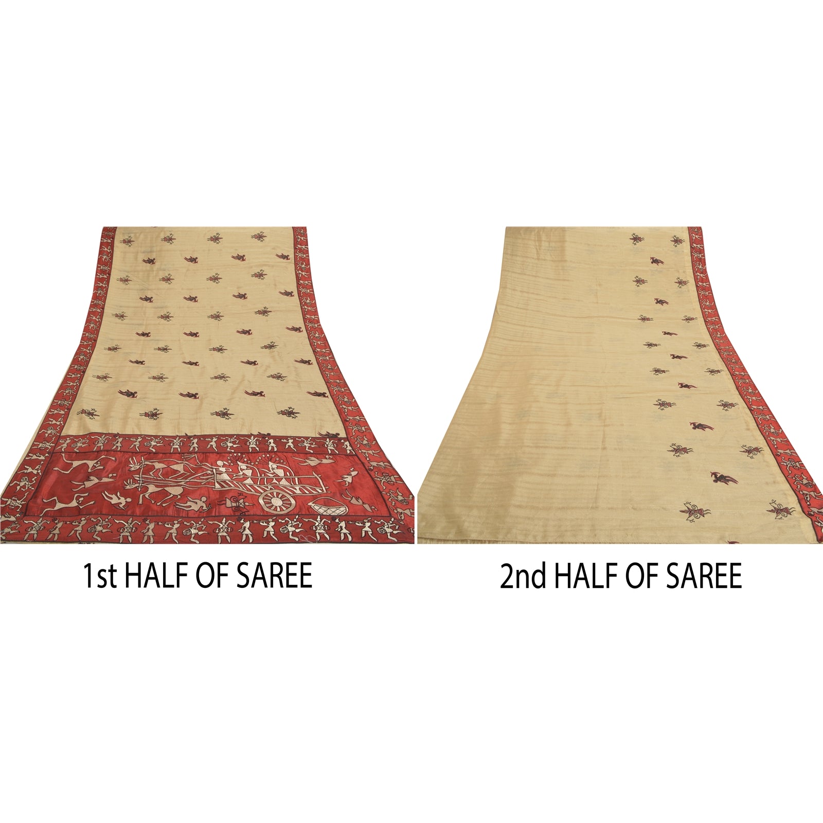 Sanskriti Vintage Red Sarees Art Silk Embroidered Warli Premium Sari Sustainable Fabric
