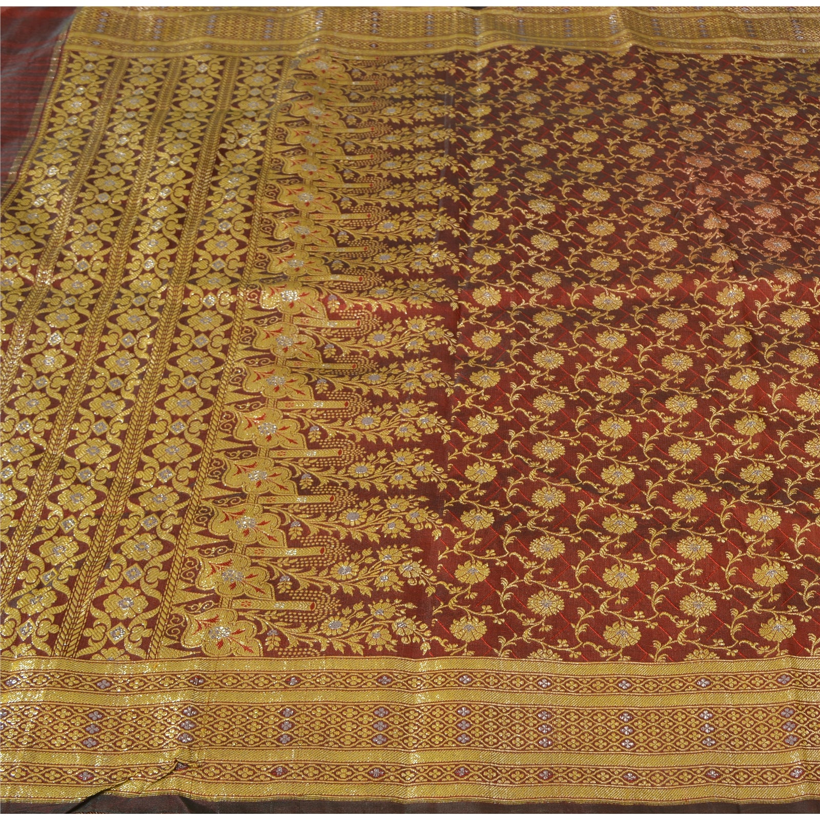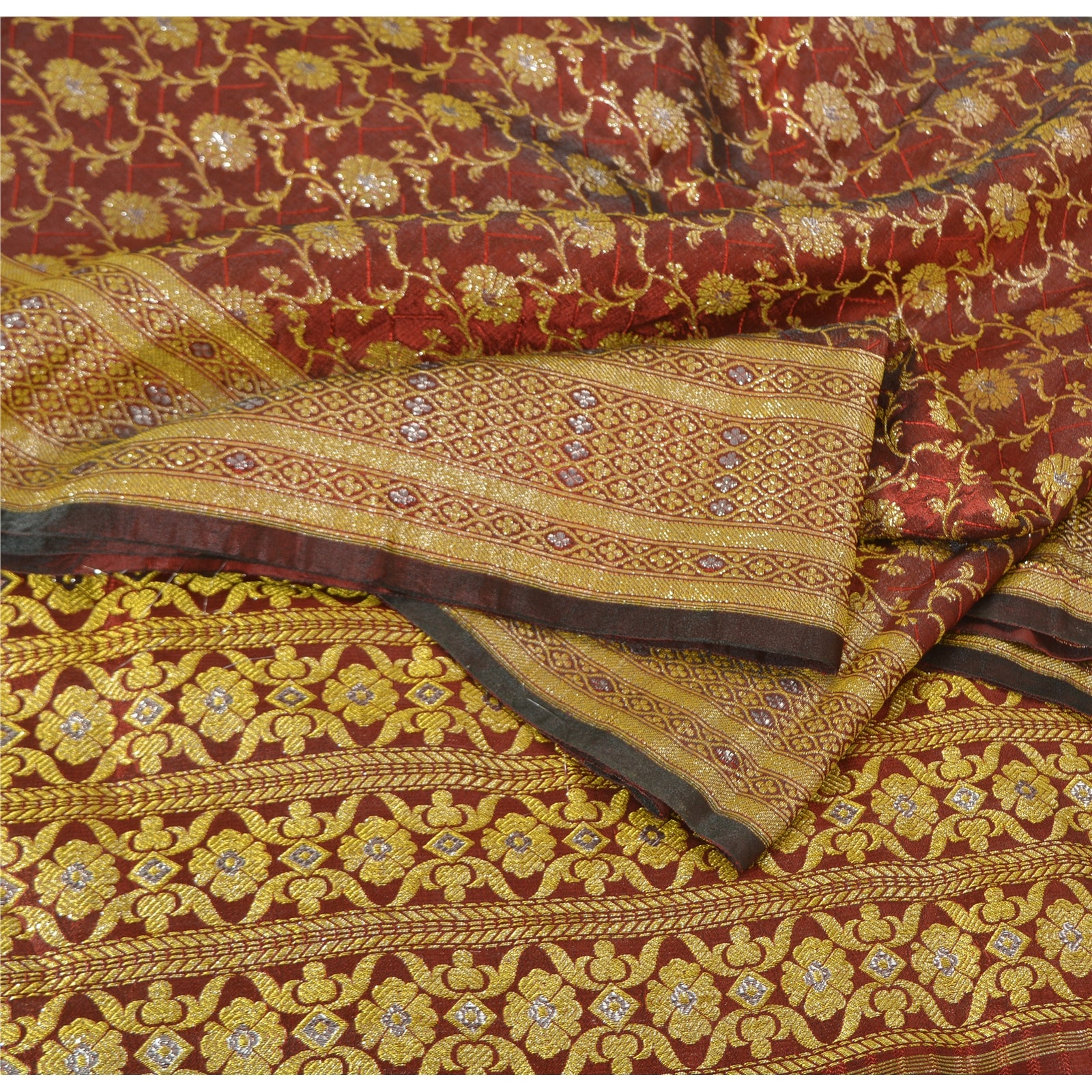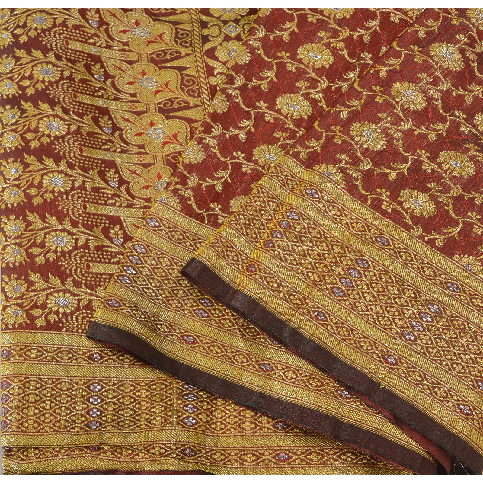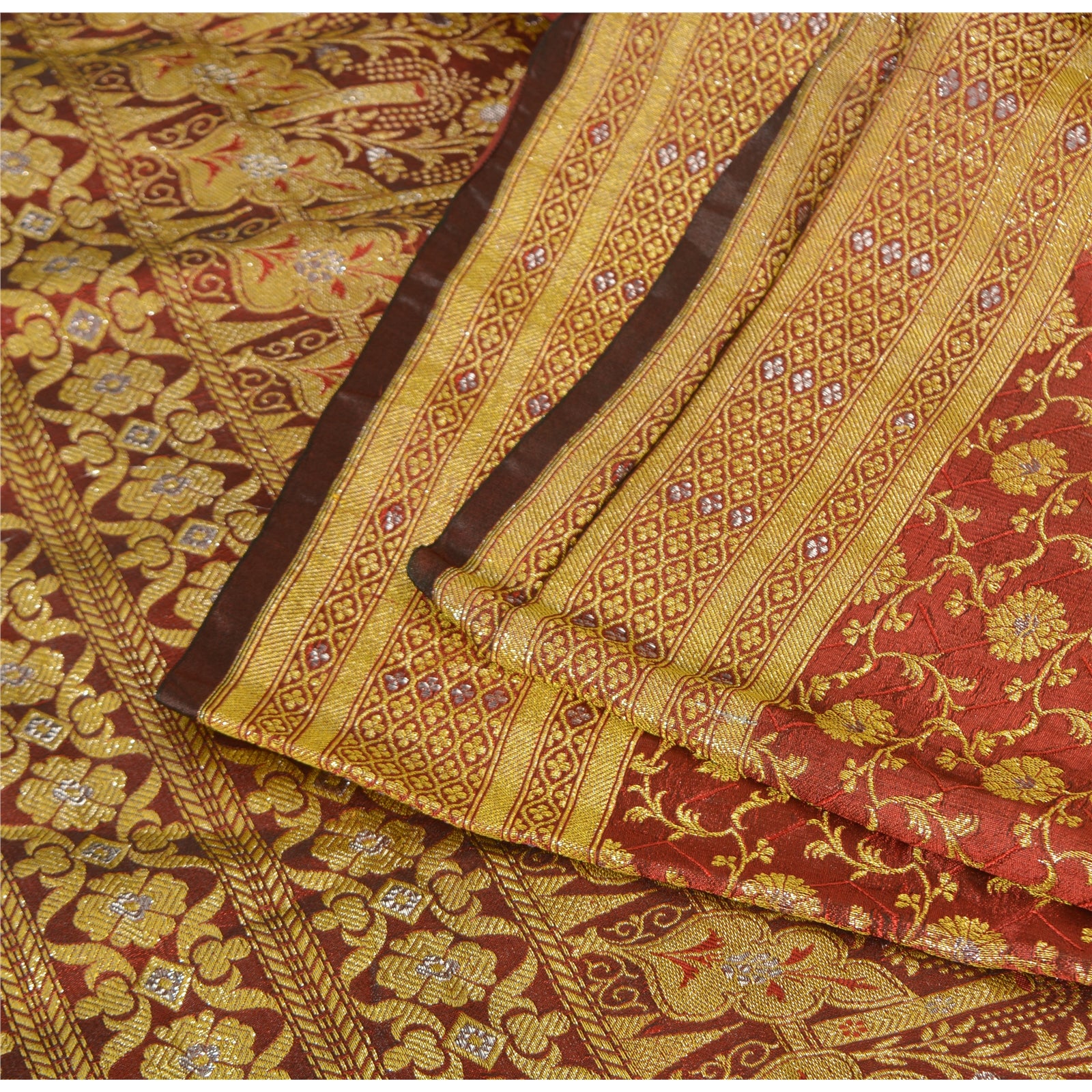 Sanskriti Vintage Red Sarees Blend Silk Unique Hand Woven Brocade Sari Fabric