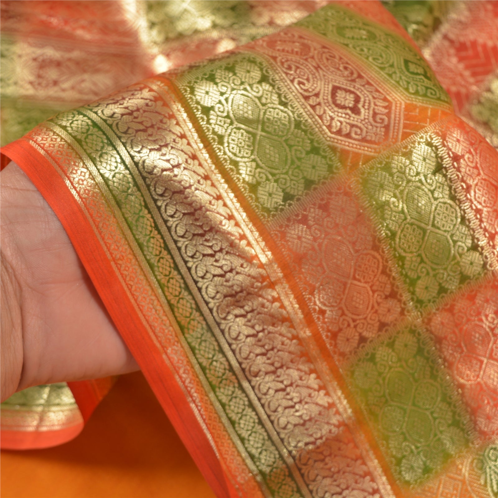 Sanskriti Vintage Saffron Indian Sarees 100% Pure Silk Woven Brocade Sari Sustainable Fabric