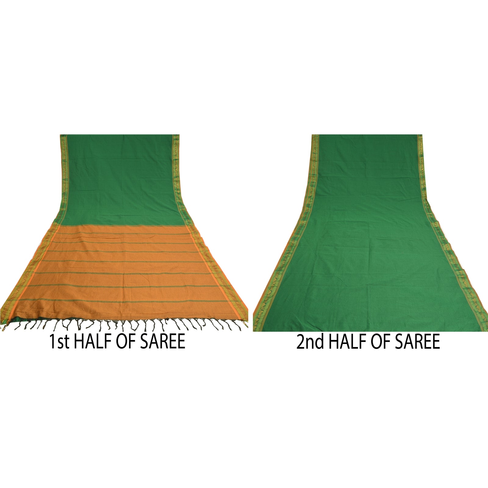 'THE ITEM COLOR OR SHADE MAY BE DARKER OR LIGHTER THAN THE PICTURE.' Beautiful saffron & green colored cotton silk woven Ilkal sari. Pallu has woven floral lines design. You can see golden zari floral & zig- zag design on borders. The center of the saree has woven lines design. Ilkal is famous for hand-loomed sarees, popularly known as Ilkal sarees. Ilkal sari is a traditional form of sari which is a common feminine wear in India. Ilkal sari takes its name from the town of Ilkal in the Bagalkot district of Karnataka state, India. Ilkal saris are woven using cotton warp on the body and art silk wrap for border and art silk wrap for pallu portion of the sari. This saree can be used for various crafting ideas too. Use it for dress designing, as a throw, as window dressing, upholstery, table linen and much more. Let your creative juices flow. 'International buyers please note: Import duties, taxes, and charges are not included in the item price or postage cost. These charges are the buyer's responsibility. Please check with your country's customs office to determine what these additional costs will be prior to bidding or buying. Buyer will pay custom duty/tax. It is calculated and charged differently by every country. As a seller I do not have any control over it. VAT or sales tax is calculated by the platform at the time of checkout. Customs charge is payable at the time of delivery.'